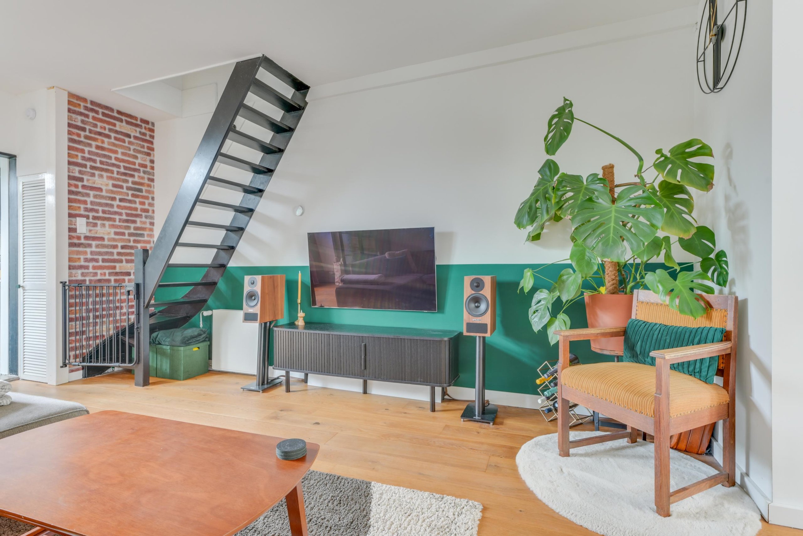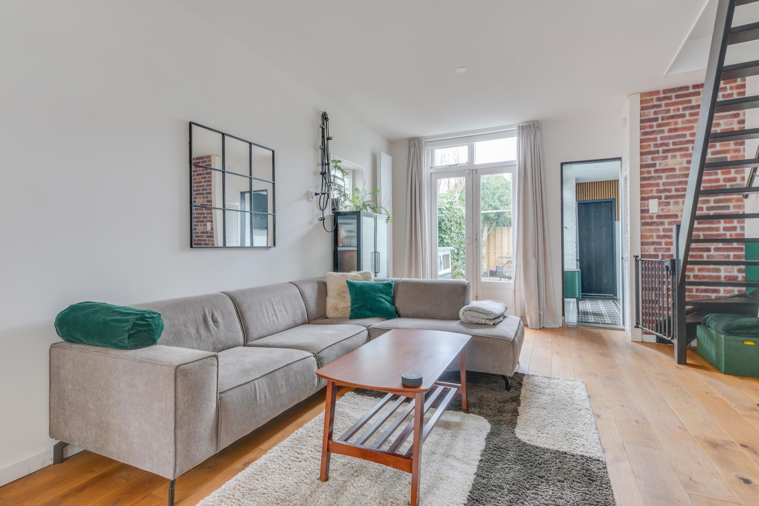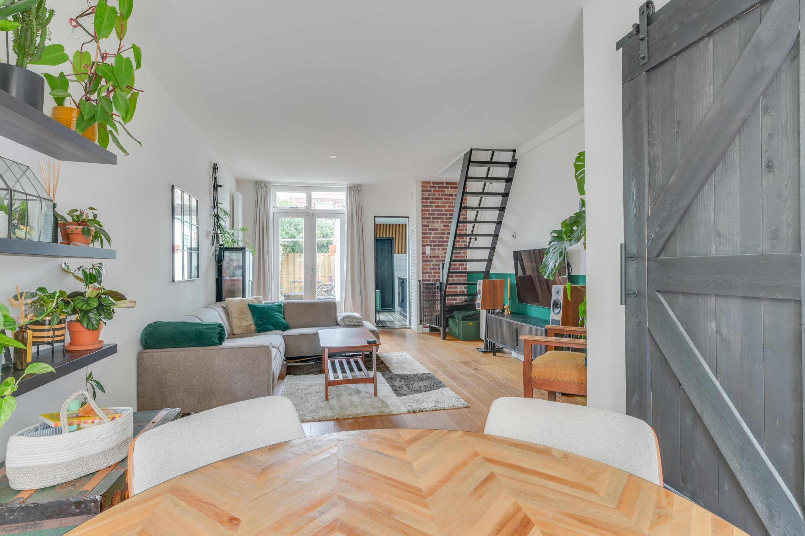 De woonkamer biedt voldoende ruimte voor een comfortabele zit- en eethoek en staat in directe verbinding met de keuken.
