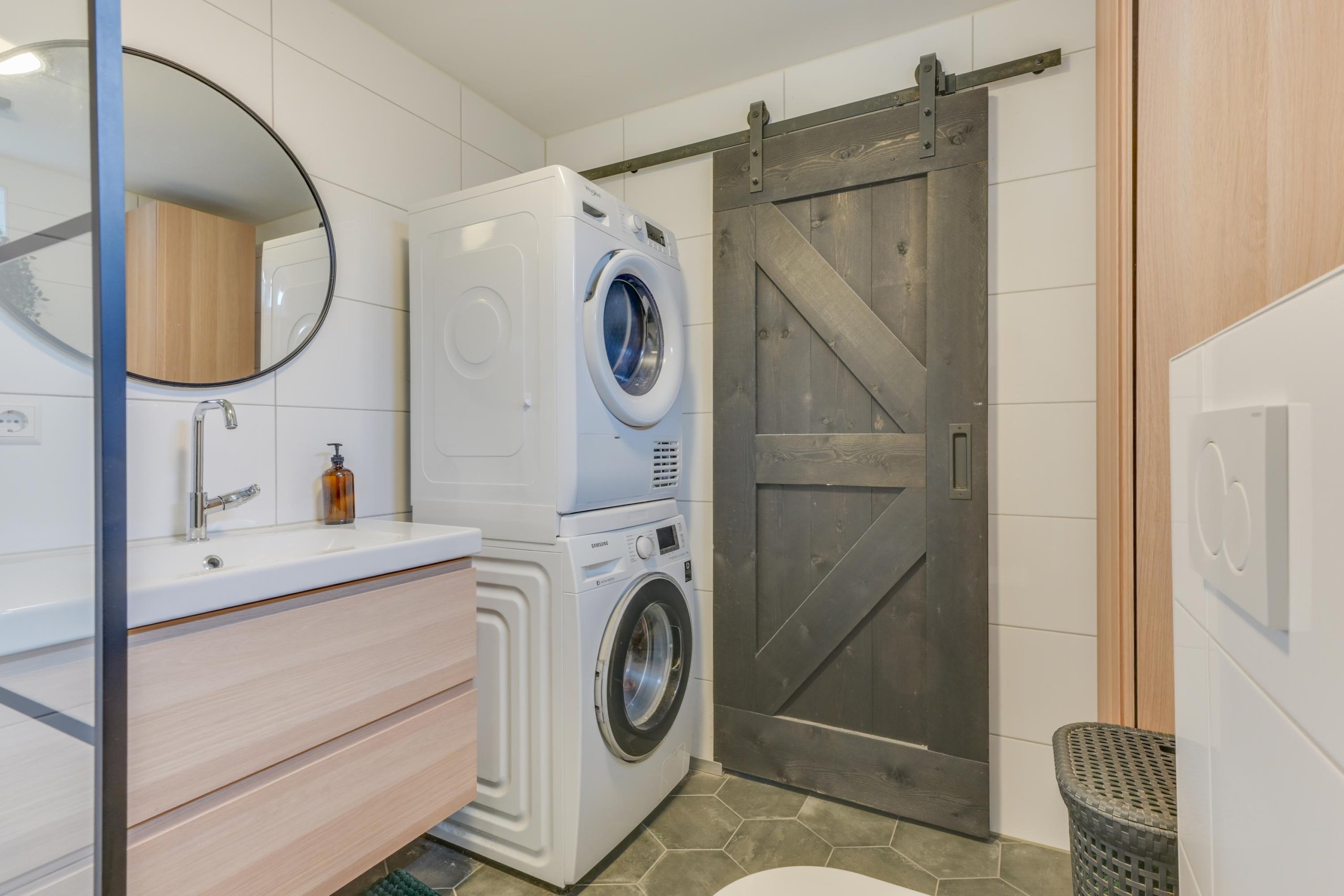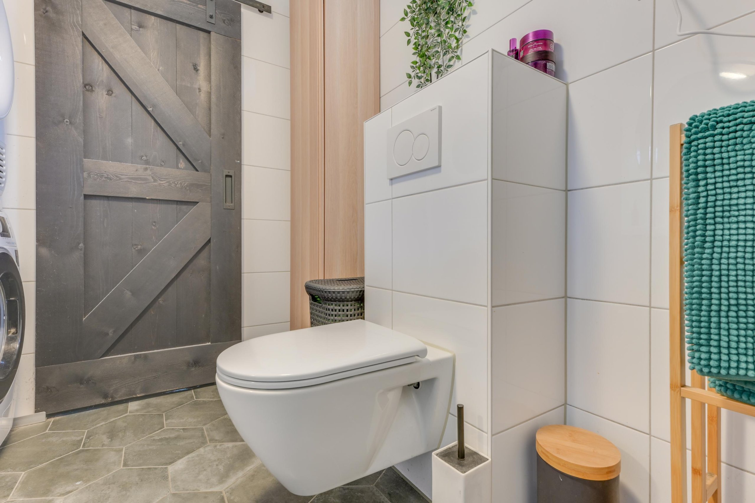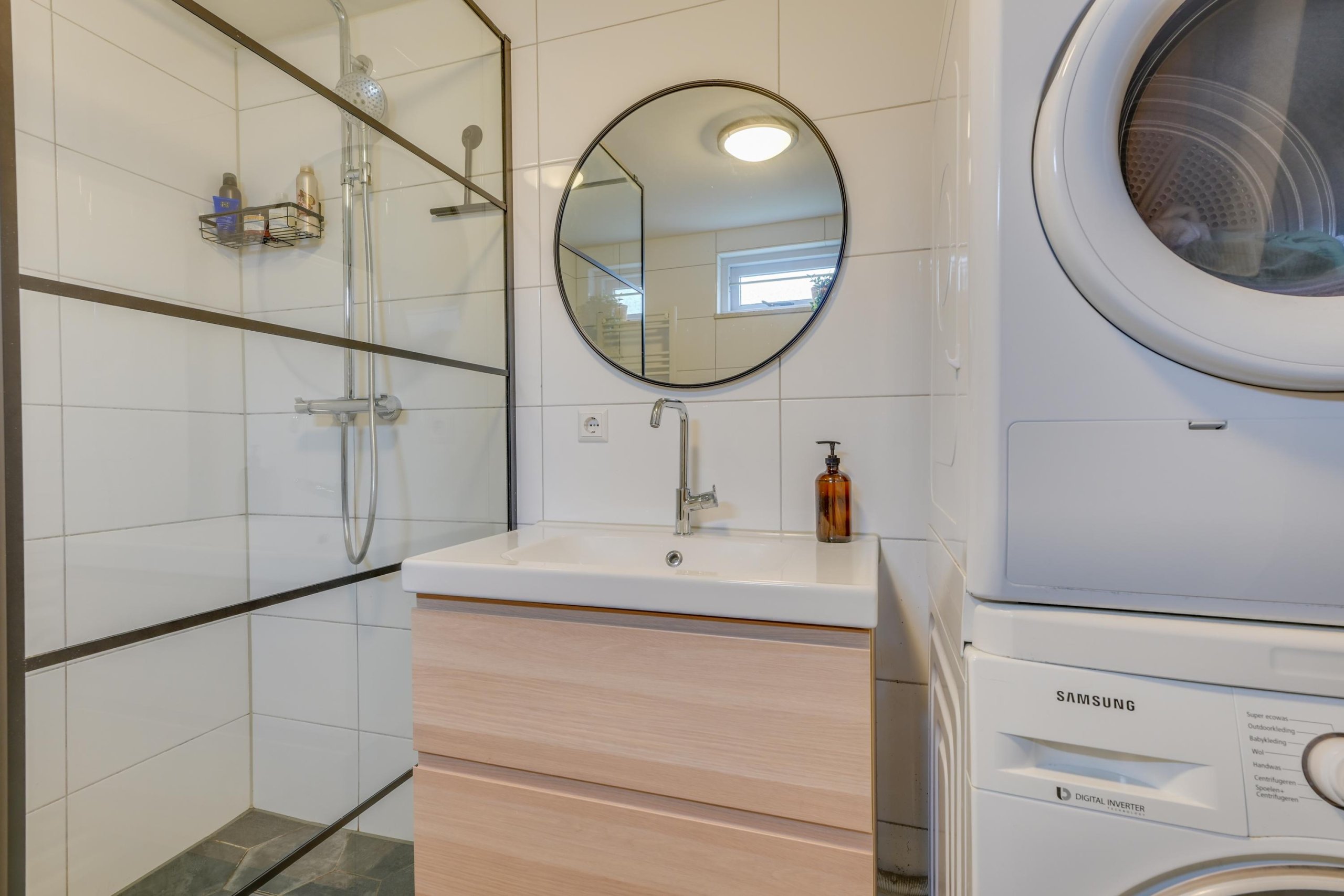 Vanuit de keuken welk in 2022 is vernieuwd en voorzien is van diverse inbouwapparatuur is er toegang tot de in 2019 vernieuwde badkamer, voorzien van een douche, toilet, wastafel en witgoedopstelling.