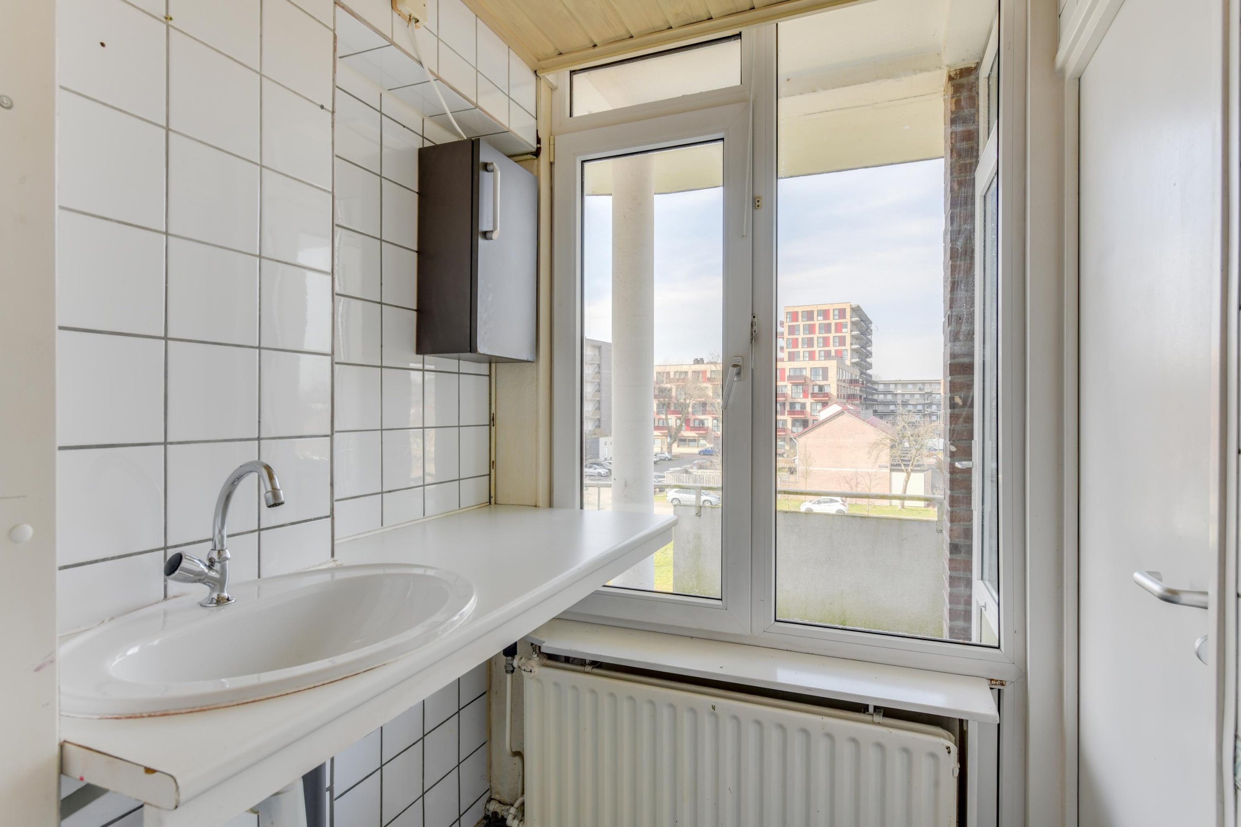 De keuken, voorzien van diverse inbouwapparatuur, biedt eveneens toegang tot het royale zonneterras. Vanuit de keuken bereikt u bovendien de badkamer, welke is uitgerust met een douche en een wastafel.