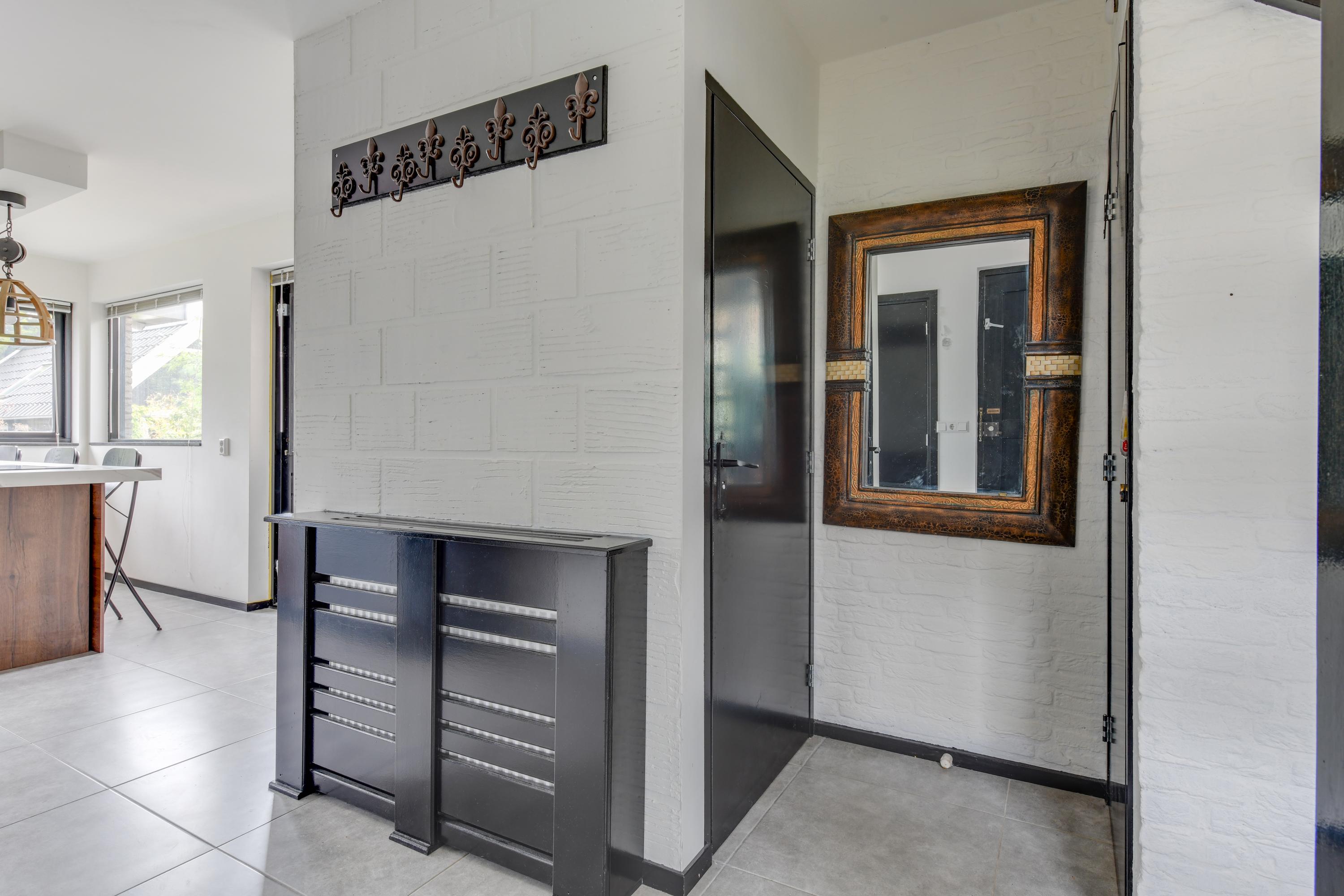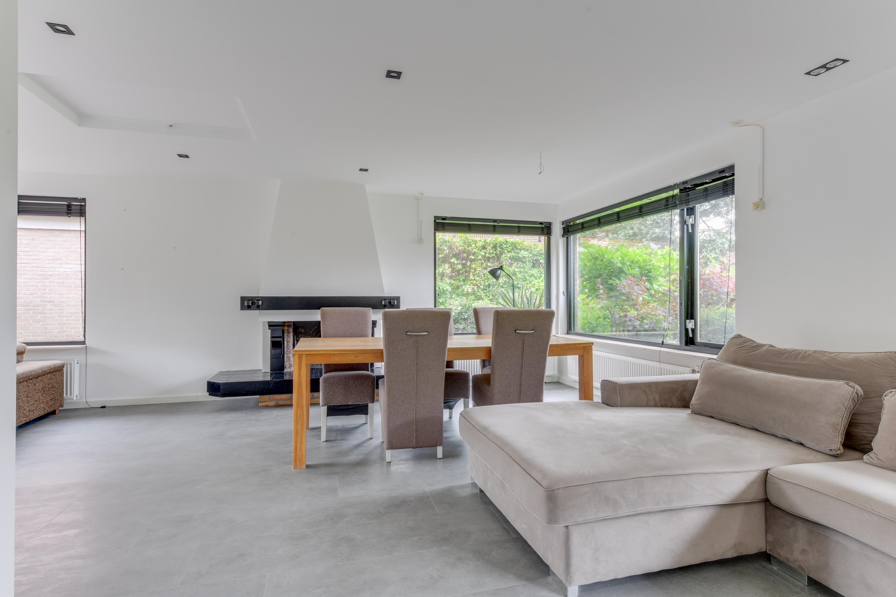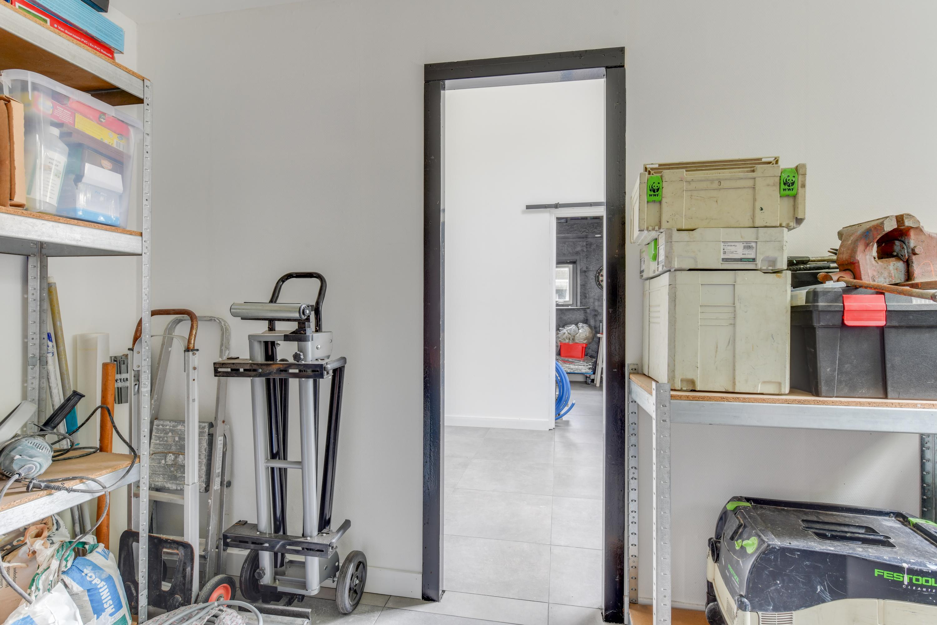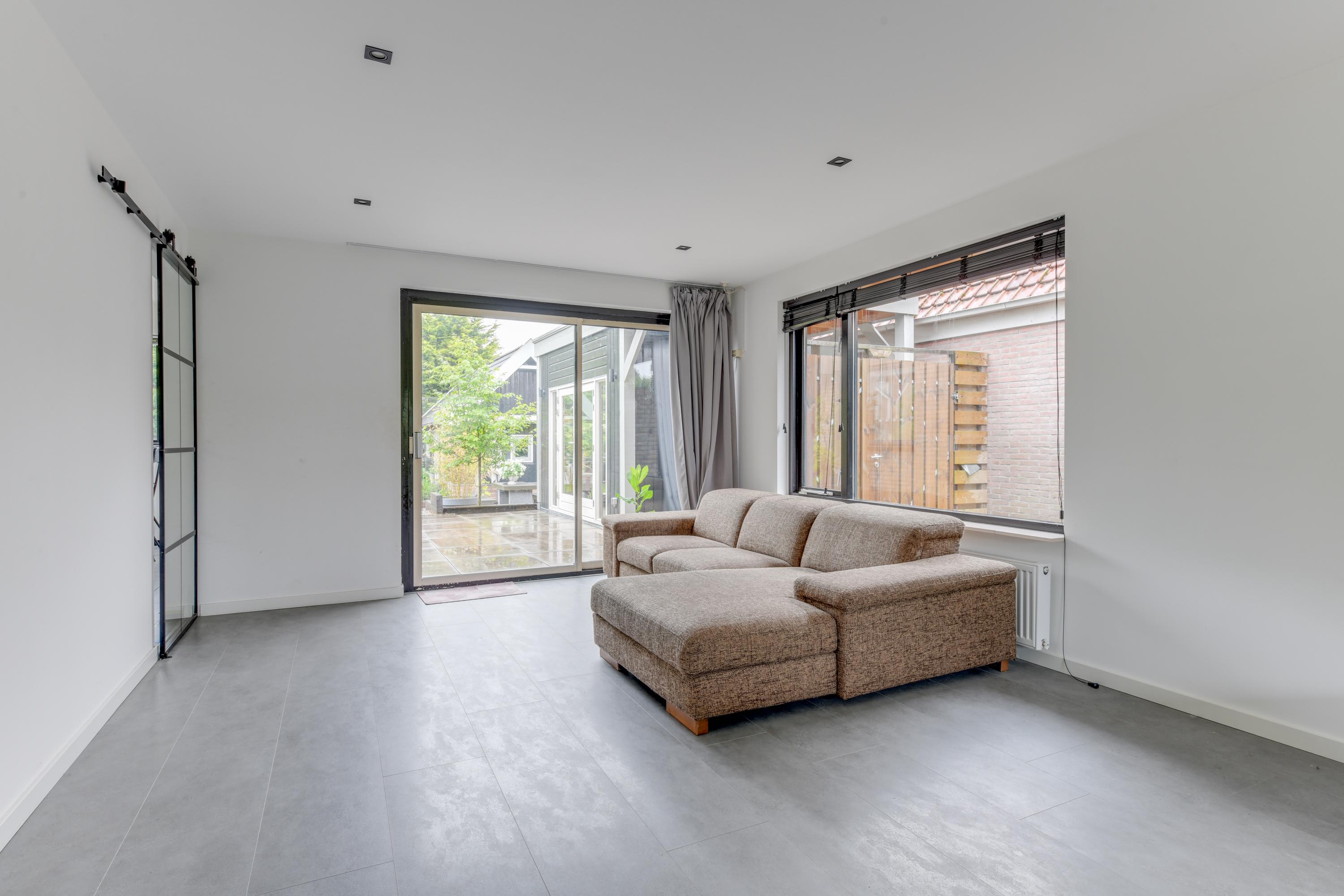 Begane grond: Via de verzorgde voortuin, waarbij je de mogelijkheid hebt om meerdere auto's op eigen terrein te parkeren, kom je binnen in een ruime entreehal met toilet, meterkast en de trap naar de eerste verdieping. Vanuit de hal heb je toegang tot de garage, waar zich ook de bergruimte met de opstelling van de CV-ketel bevindt. Verder is er toegang tot de keuken. De keuken is modern en ruim opgezet met een spoel-/kookeiland en van alle gemakken voorzien. Vanuit de keuken loop je door naar de ruime en lichte zit-, eet- en woonkamer, mede dankzij de vele raampartijen. Aan de achterzijde grenst de begane grond aan een royale tuin met een zonneterras. De diepe tuin is deels betegeld en beschikt over meerdere zitplekken, waaronder een gezellig terras aan het water. In de tuin bevinden zich een ruime berging en een tuinhuis met woon-/slaapkamergedeelte en keukenblok, multifunctioneel in te zetten als aanleunwoning, werkplaats, atelier of praktijkruimte.