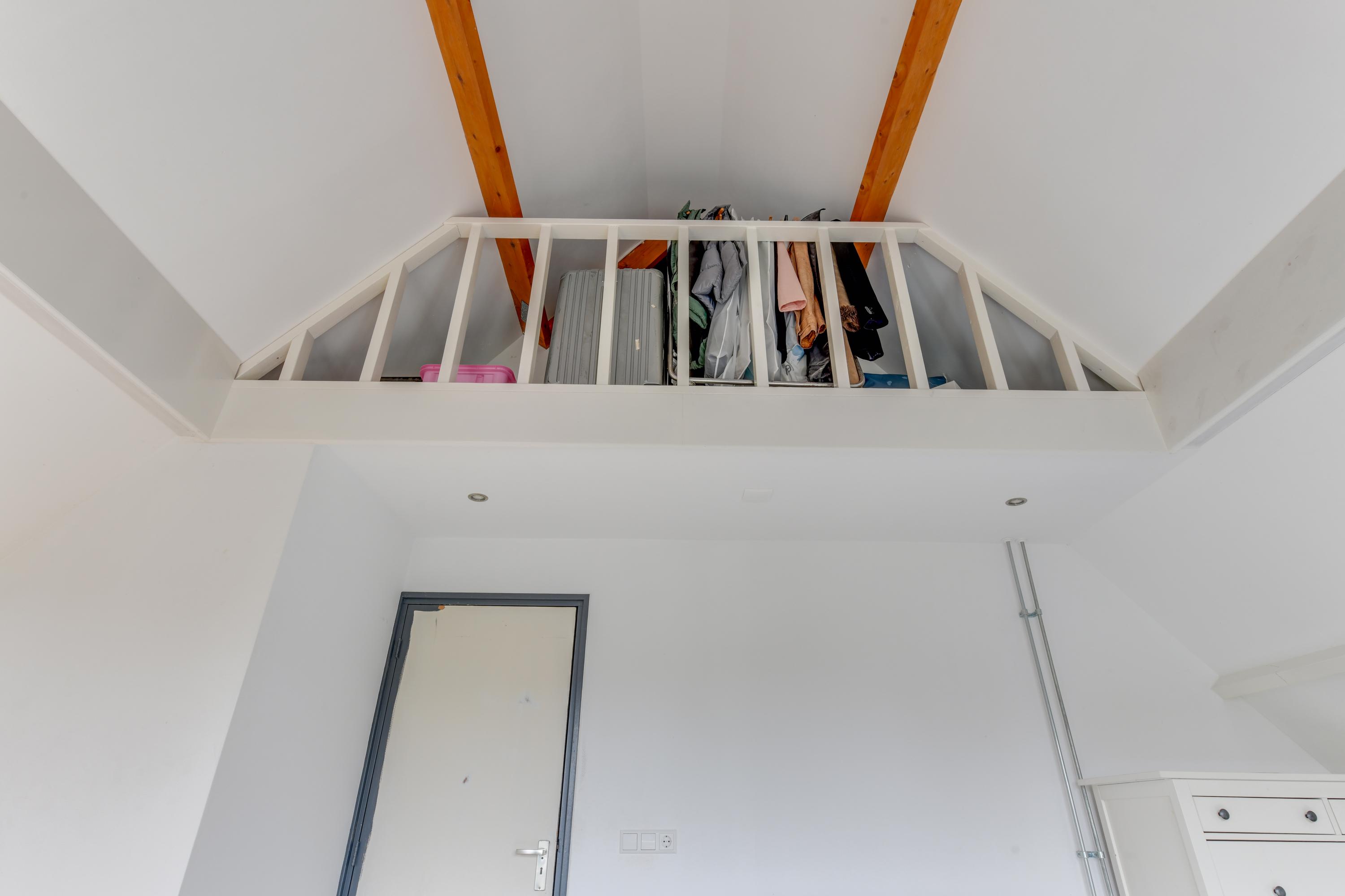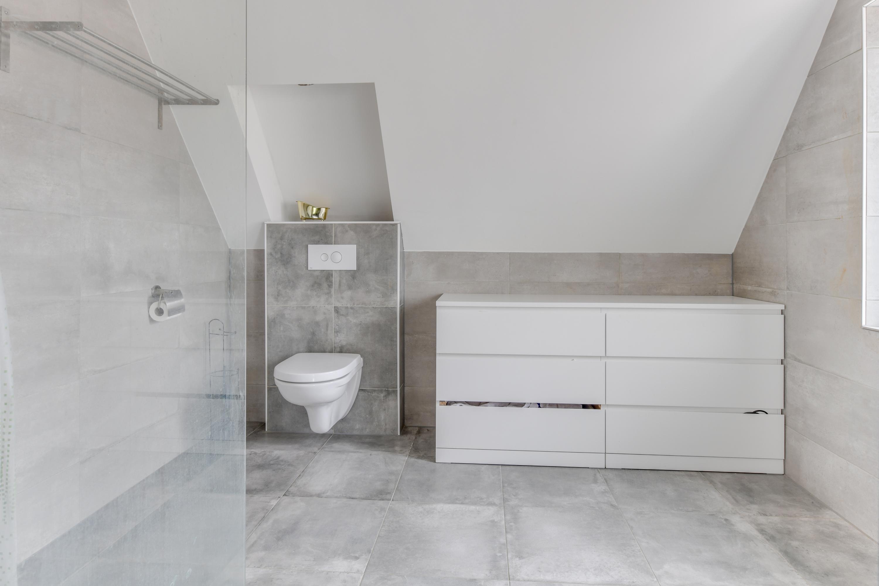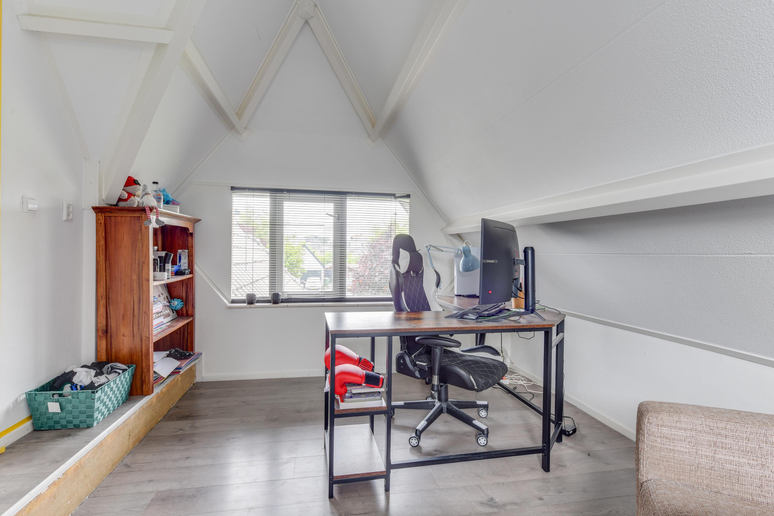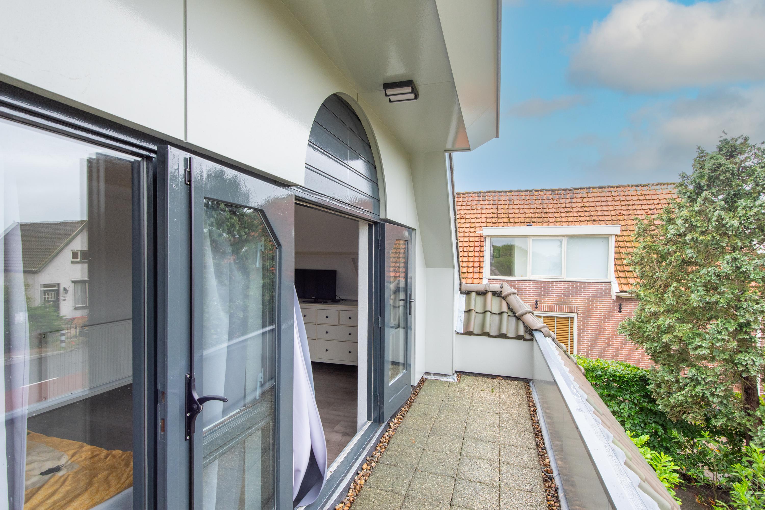 Eerste verdieping: Op de eerste verdieping vind je een brede overloop met toegang tot drie (slaap)kamers, waarvan één toegang biedt tot een eigen balkon en speel ingedeeld vanwege de vide welk is gecreëerd. Verder is er een badkamer met inloopdouche, toilet en wastafel. Vanuit de hal is er via een vlizotrap toegang tot een ruime vliering.