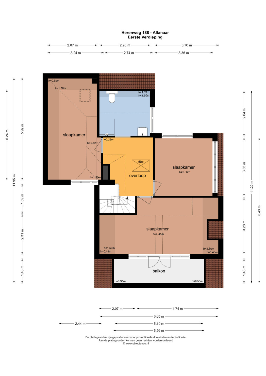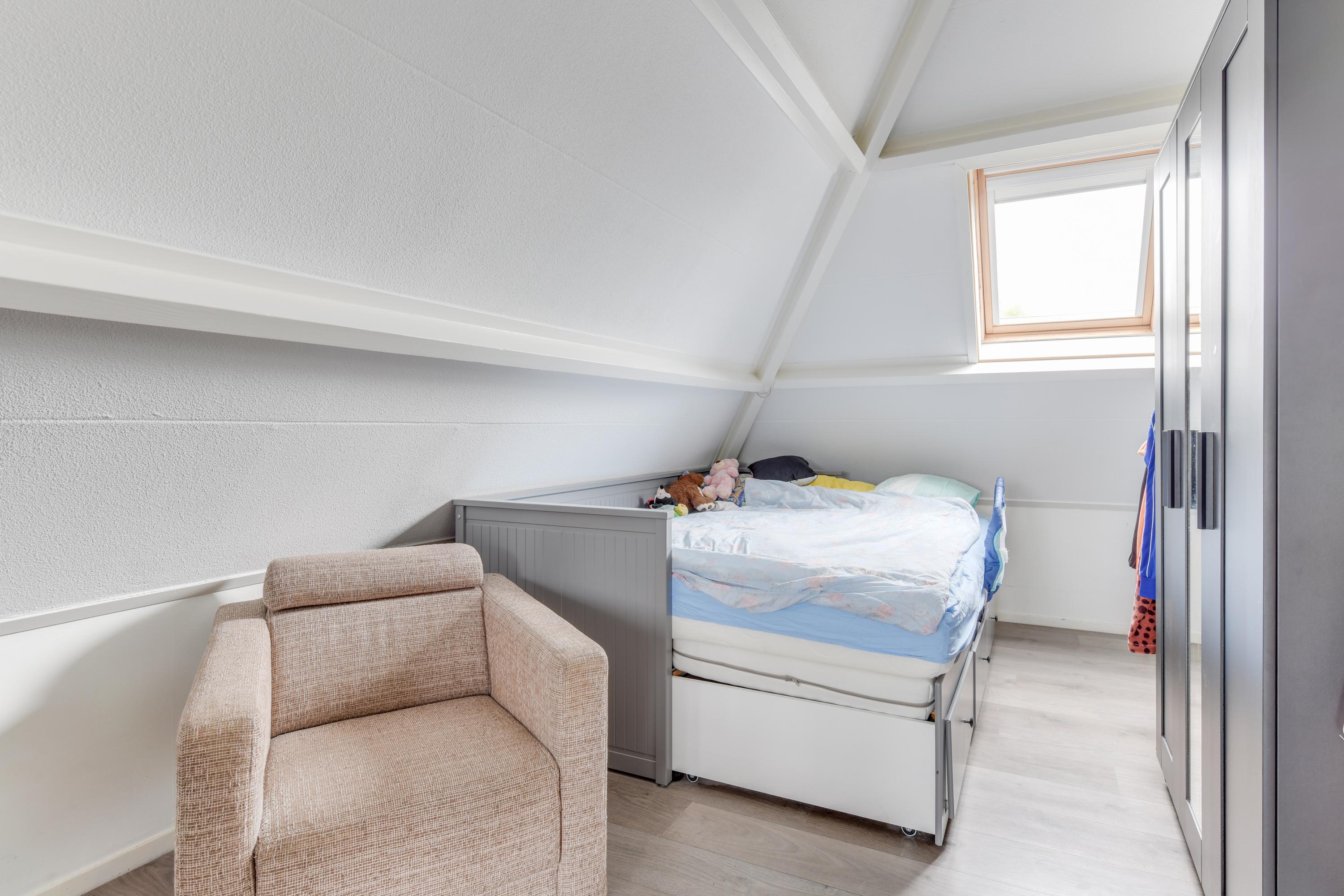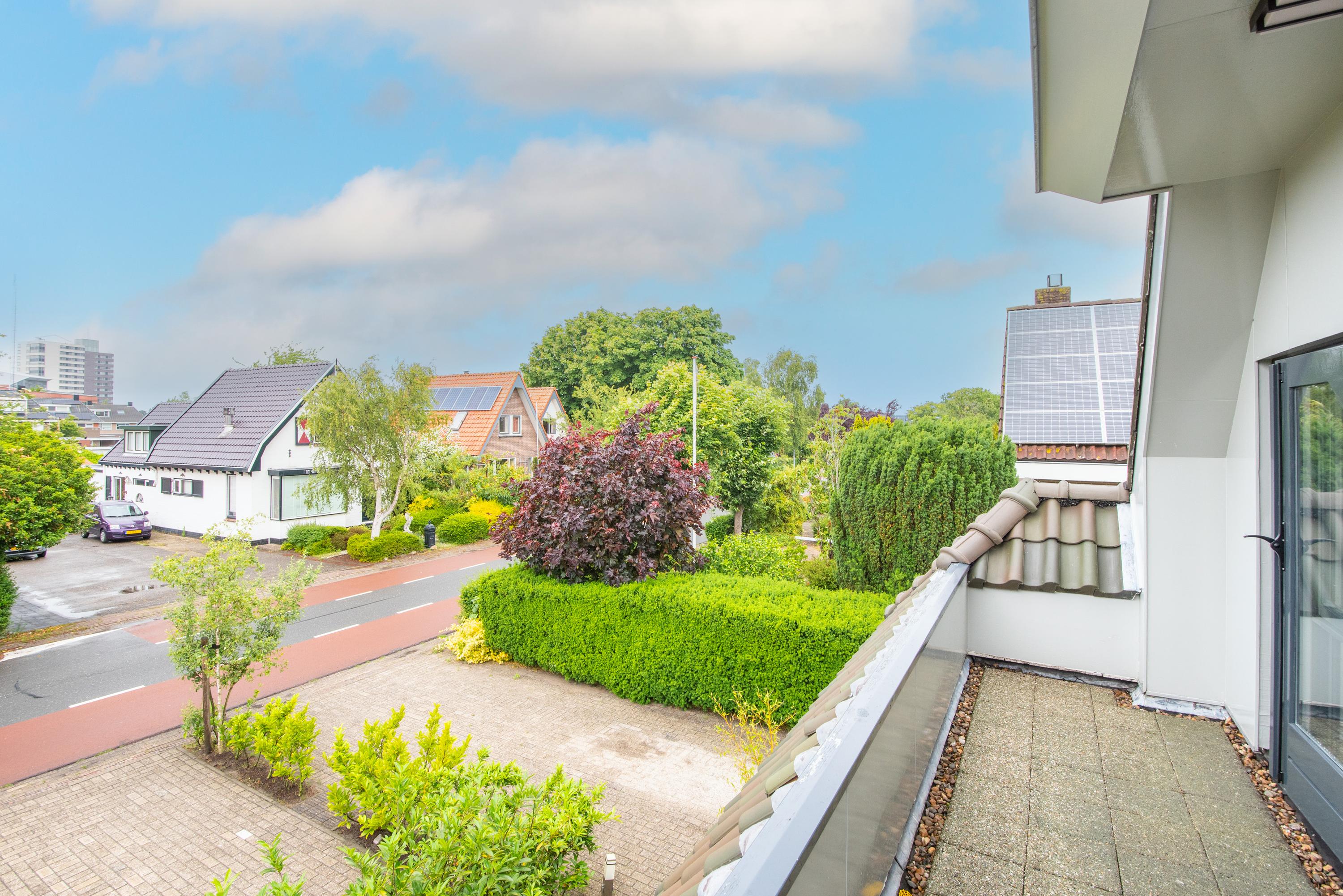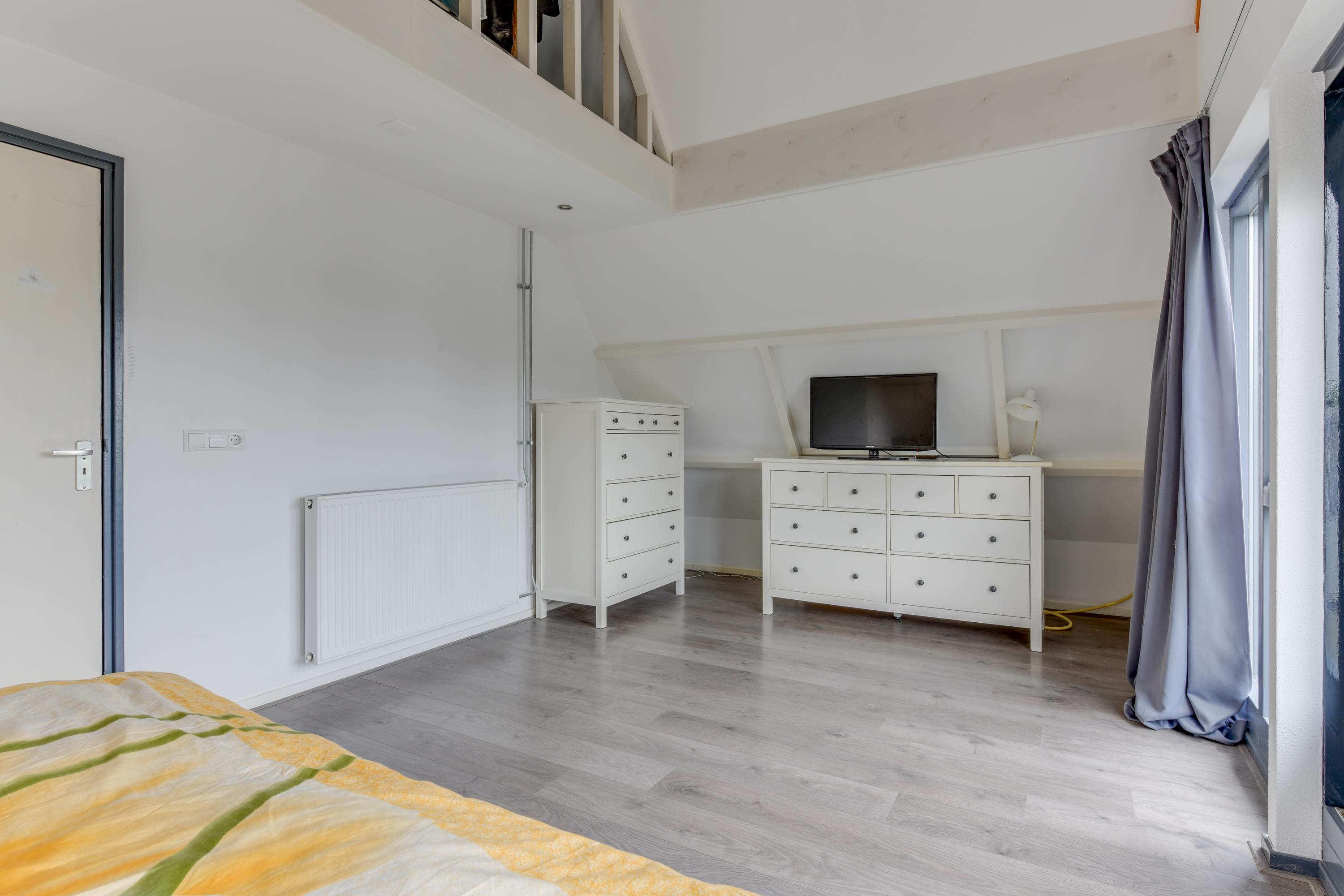 Eerste verdieping: Op de eerste verdieping vind je een brede overloop met toegang tot drie (slaap)kamers, waarvan één toegang biedt tot een eigen balkon en speel ingedeeld vanwege de vide welk is gecreëerd. Verder is er een badkamer met inloopdouche, toilet en wastafel. Vanuit de hal is er via een vlizotrap toegang tot een ruime vliering.
