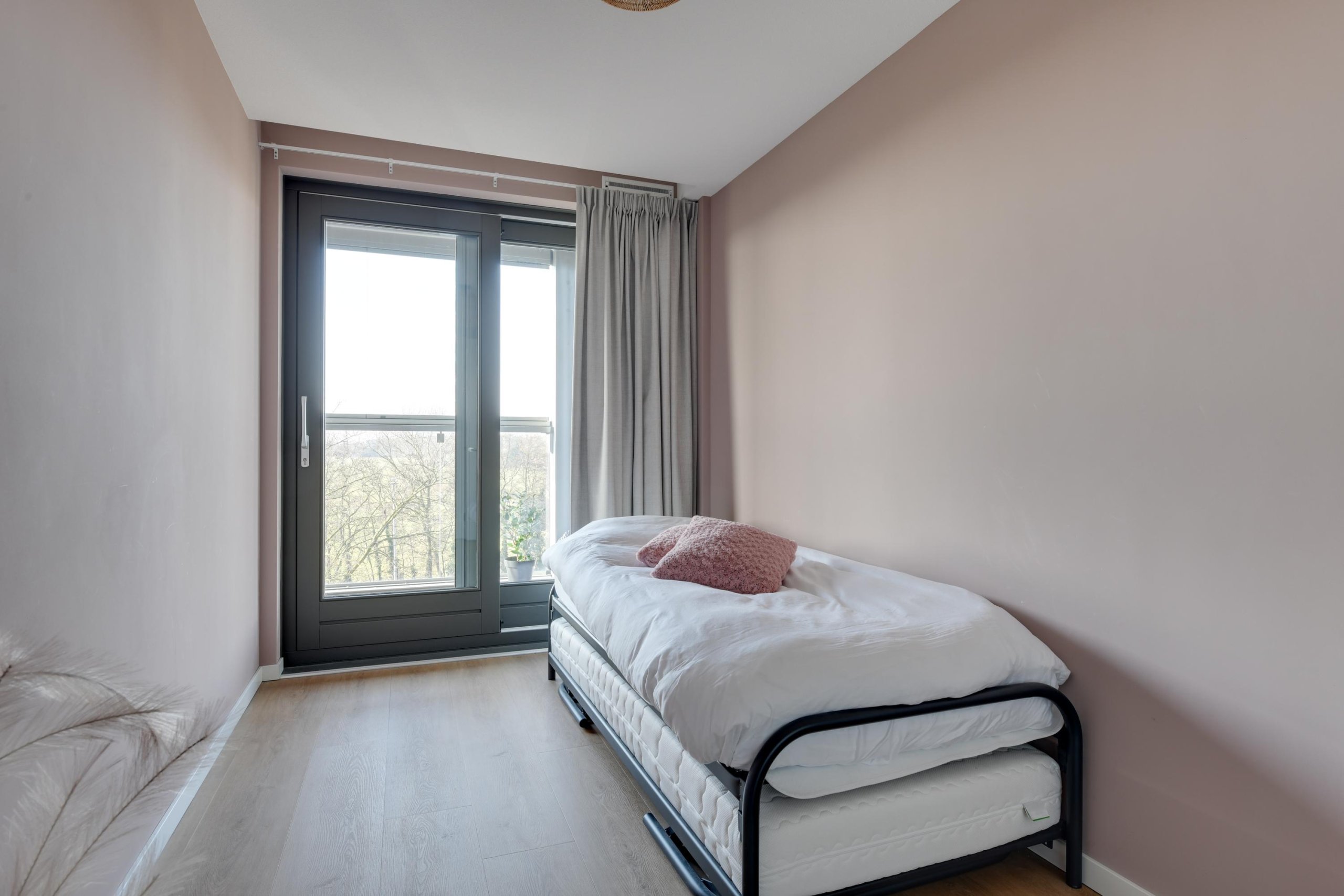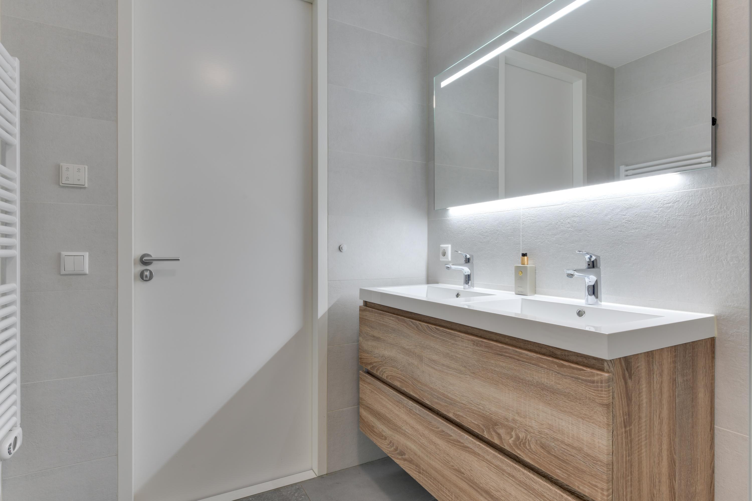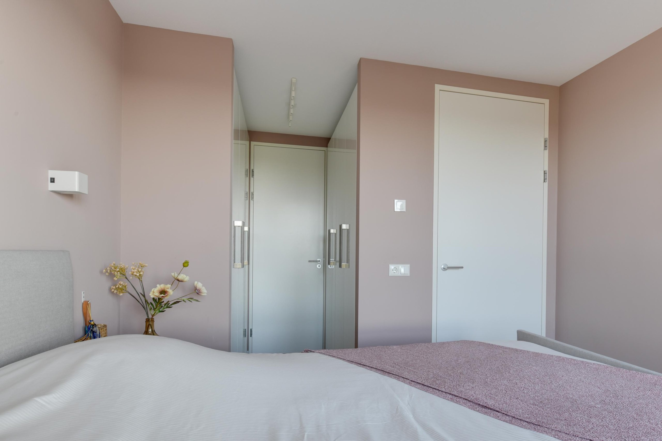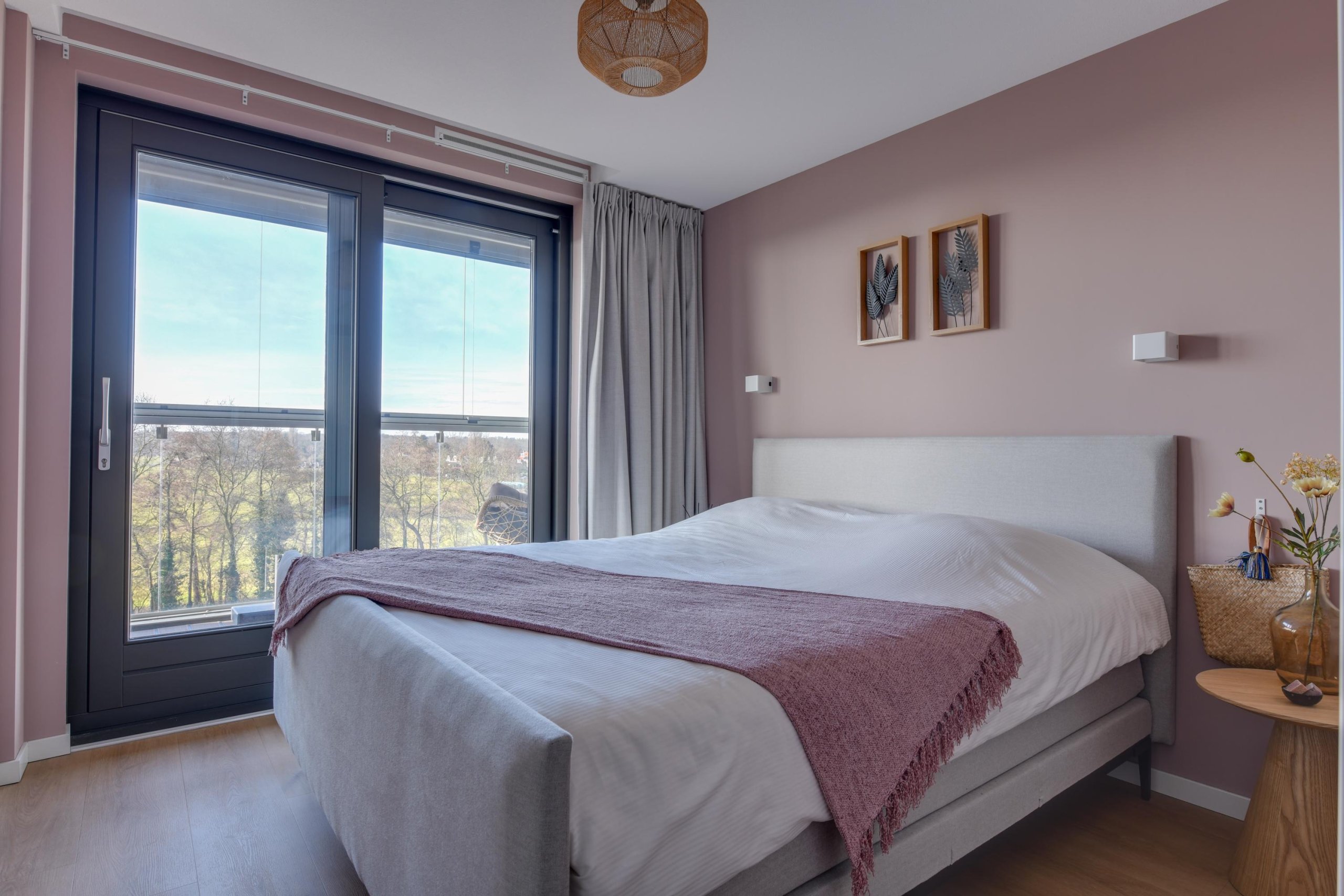 Via de woonkamer stap je het riante zonneterras op, dat over de volledige breedte van het appartement loopt. Dankzij de overkapping kun je hier bijna het hele jaar door genieten van een ontspannen buitenleven. Het appartement beschikt over twee ruime slaapkamers, beide voorzien van een eigen moderne badkamer met een inloopdouche en wastafel. Hierdoor geniet je van optimale privacy en comfort. Daarnaast is er een separate toiletruimte en een aparte ruimte voor de wasmachine, droger en waterontharder.