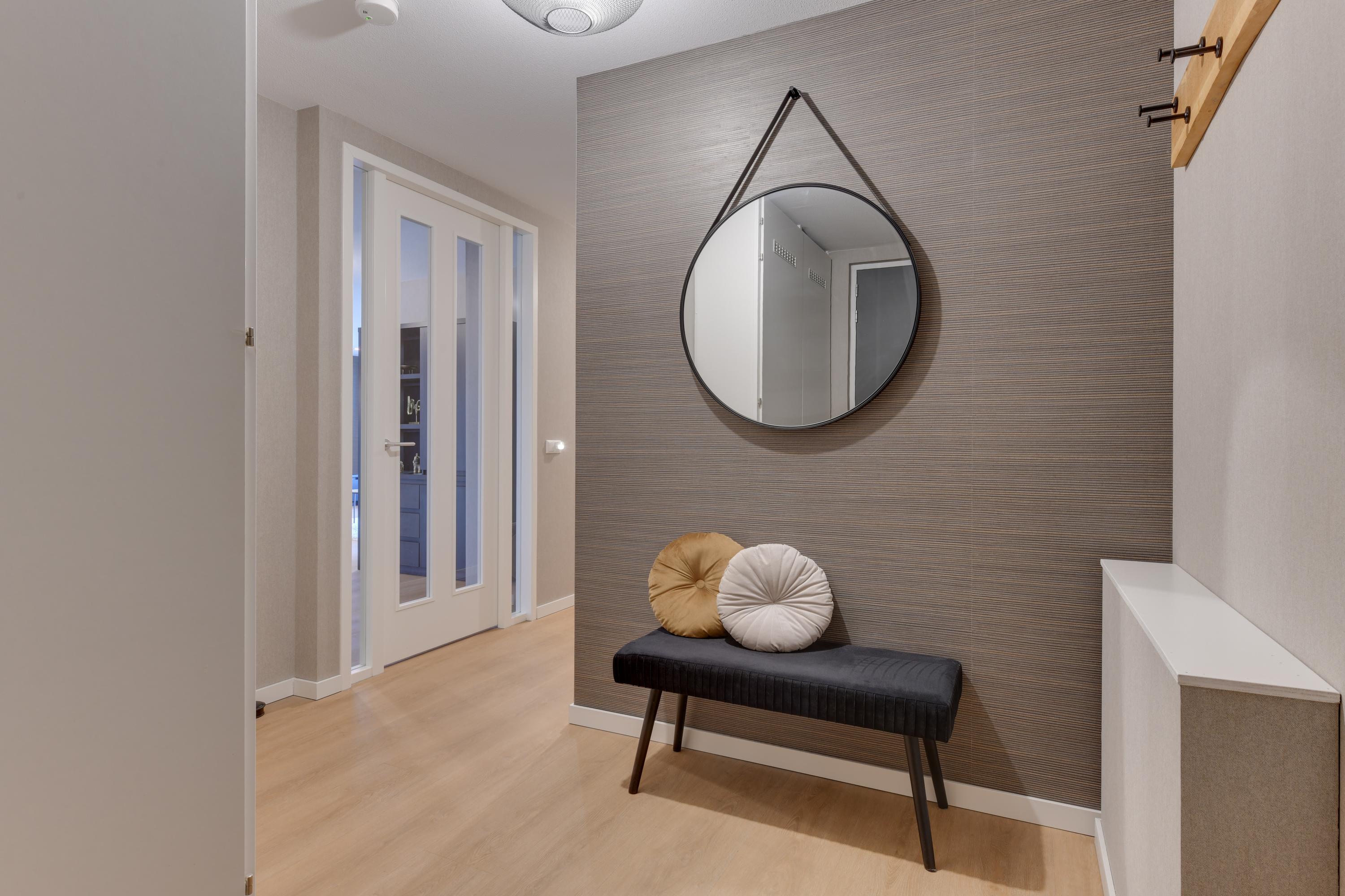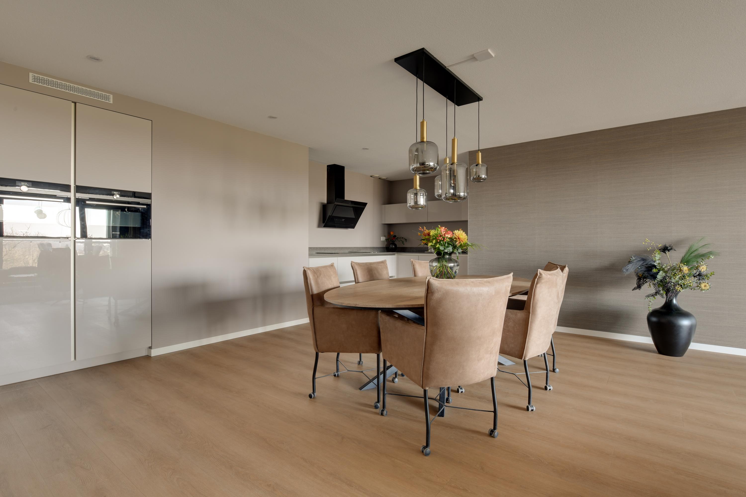 Bij binnenkomst in de hal voel je direct de aangename warmte van de vloerverwarming, die wordt geregeld via een energiezuinig aardwarmtesysteem. Dit zorgt niet alleen voor een comfortabele temperatuur in huis, maar ook voor lage energiekosten. De ruime woonkamer biedt een elegante leefruimte met een open indeling. De moderne Keller-woonkeuken is voorzien van hoogwaardige Siemens apparatuur en beschikt over alles wat je nodig hebt om culinaire hoogstandjes te bereiden.