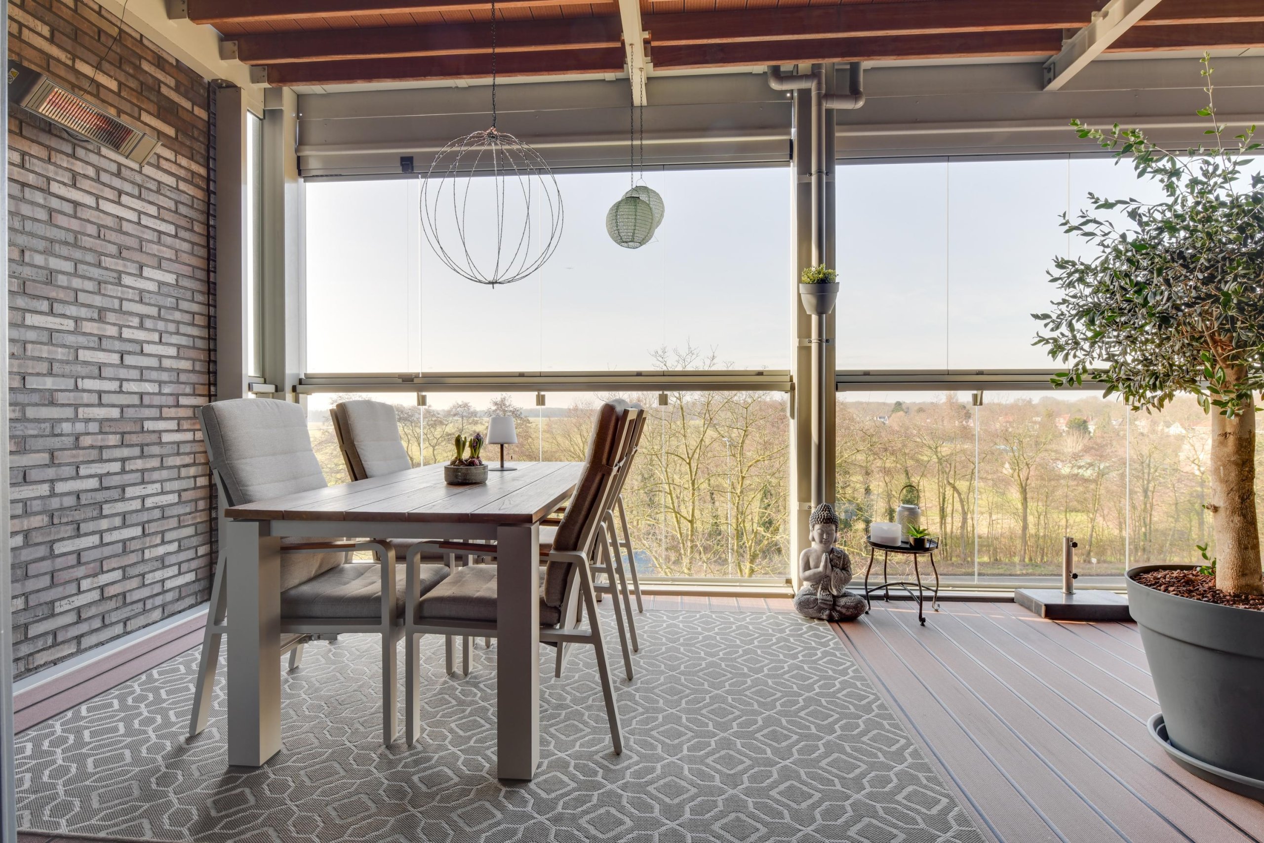 - Riant overkapt zonneterras over de volledige breedte van het appartement;