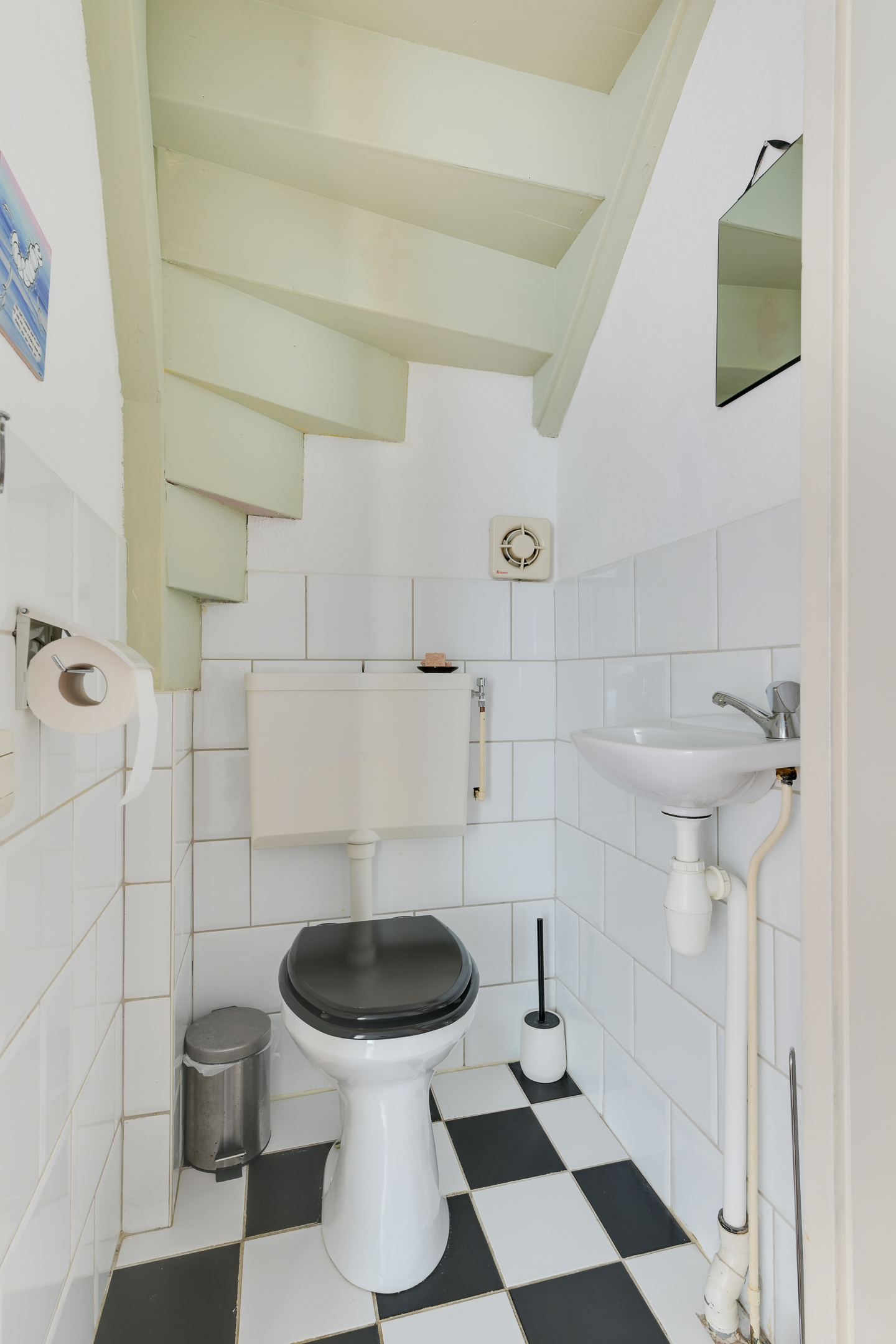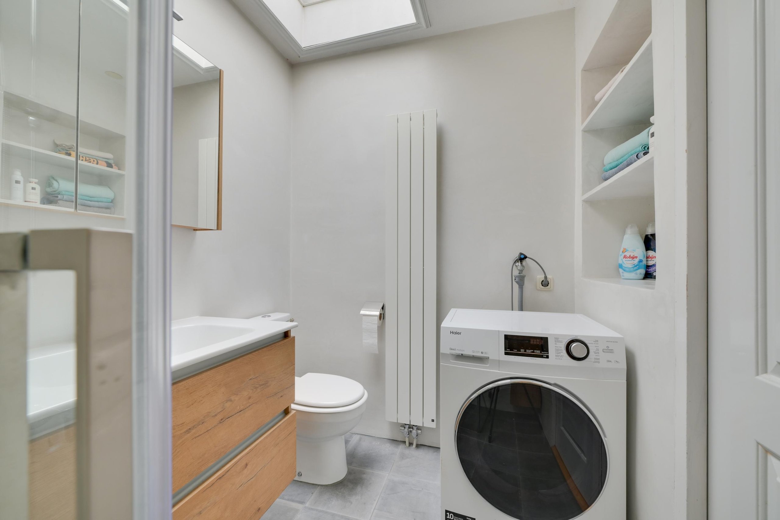 De badkamer is na 2018 vernieuwd en voorzien van een douche, wastafelmeubel, 2e toilet en aansluiting voor de wasmachine. Een dakraam zorgt hier voor extra lichtinval.