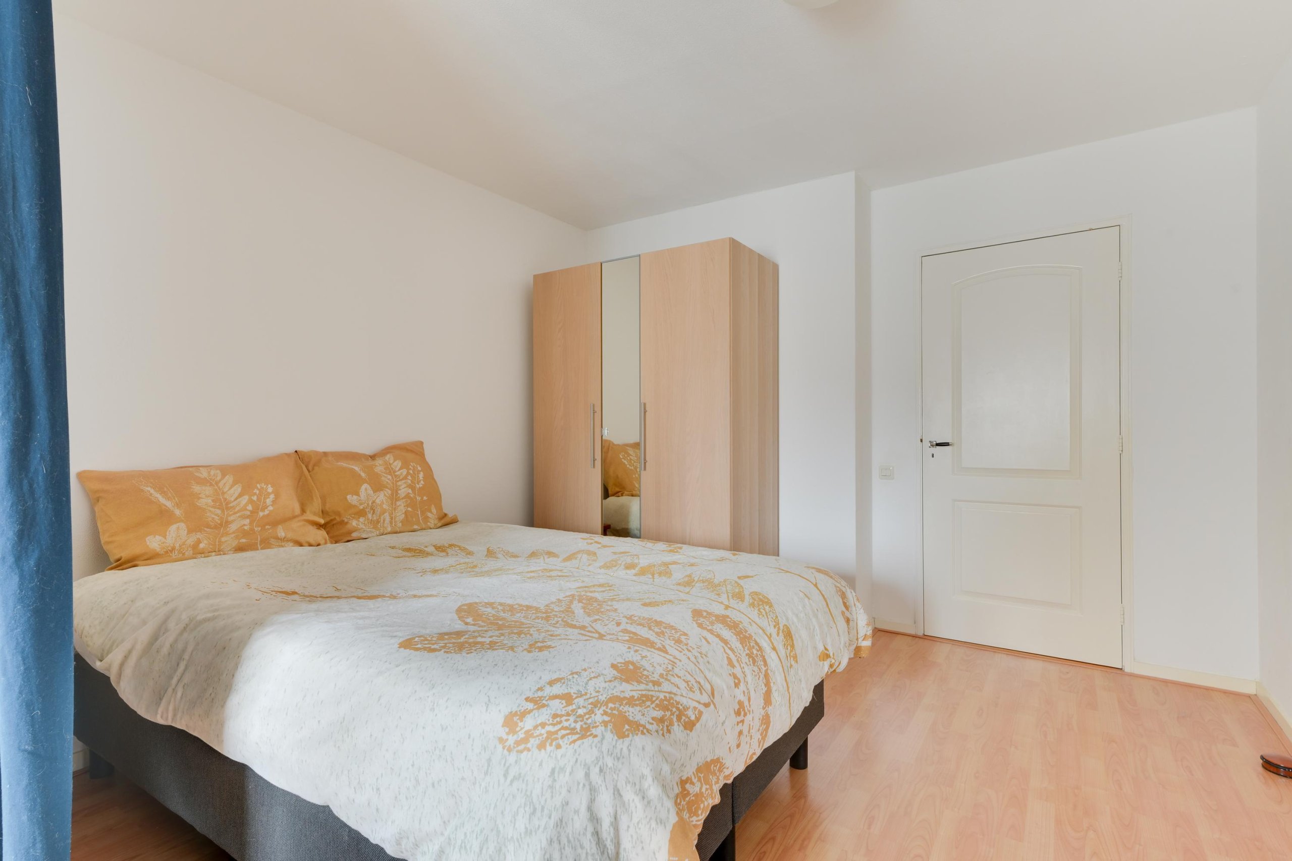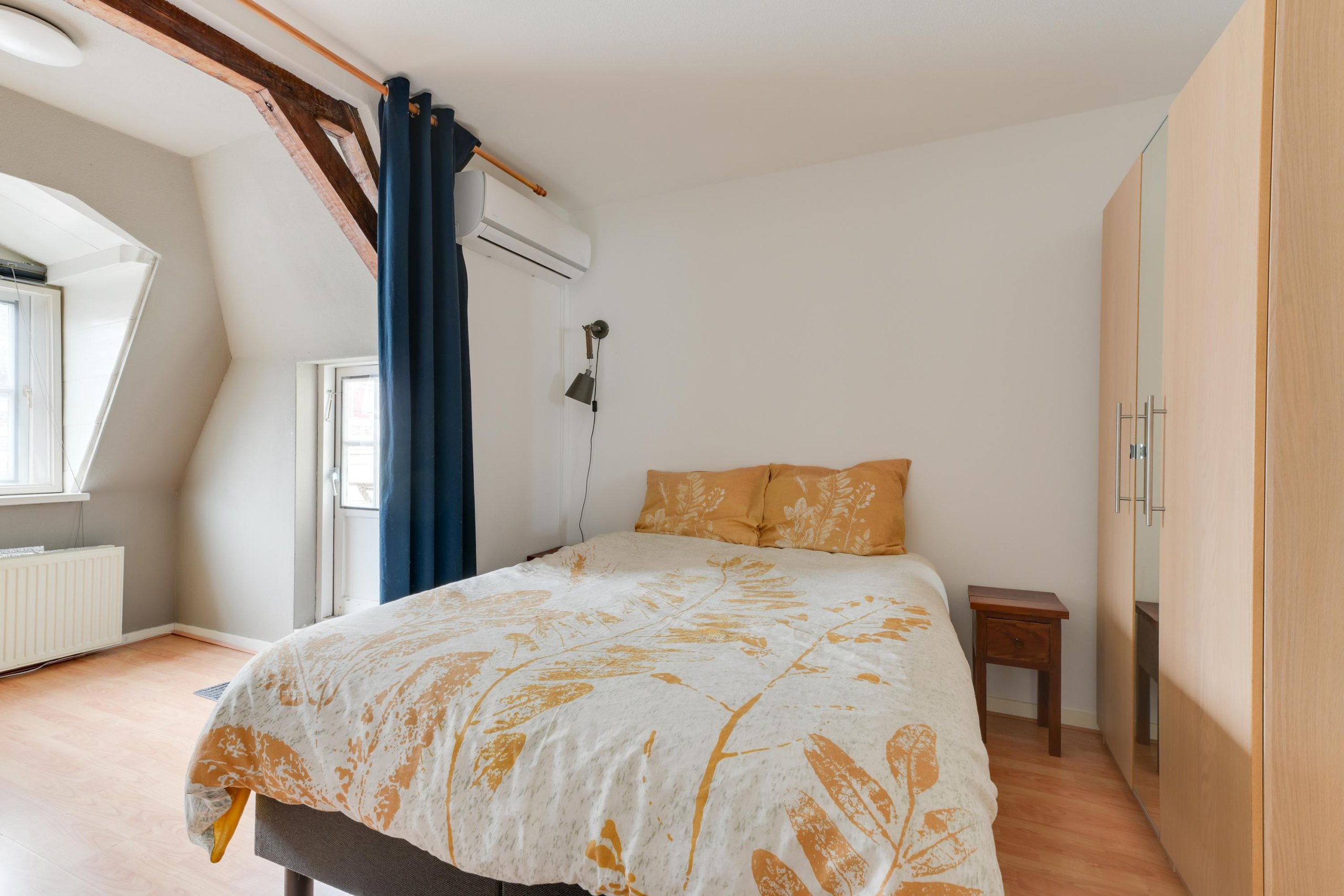 De slaapkamer is ruim en heeft directe toegang tot de patio op het zonnige zuidwesten. Een fijne plek om buiten te zitten midden in de binnenstad.