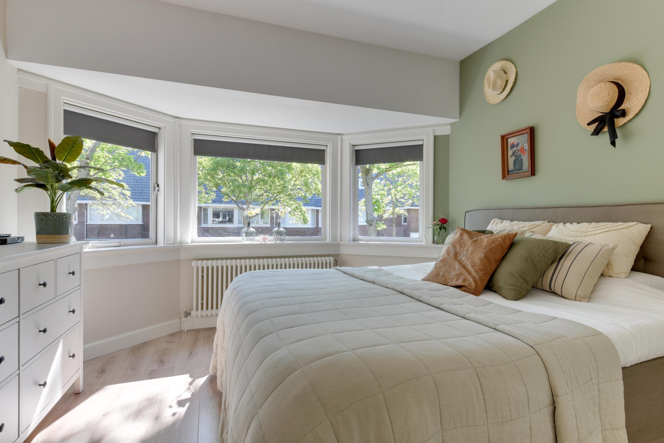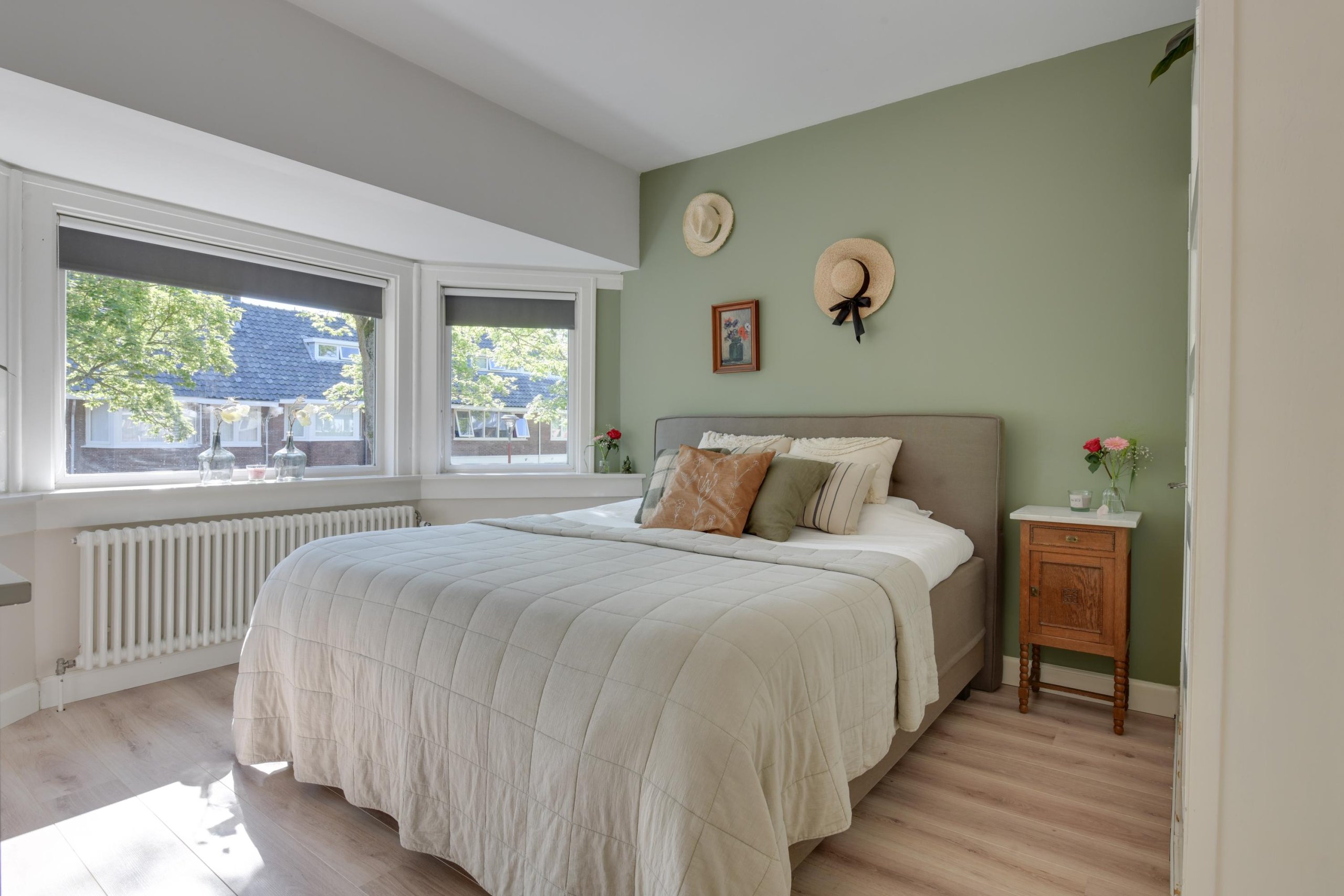 - Drie slaapkamers op de eerste verdieping, waarvan één met erker en twee met toegang tot het zonnige balkon