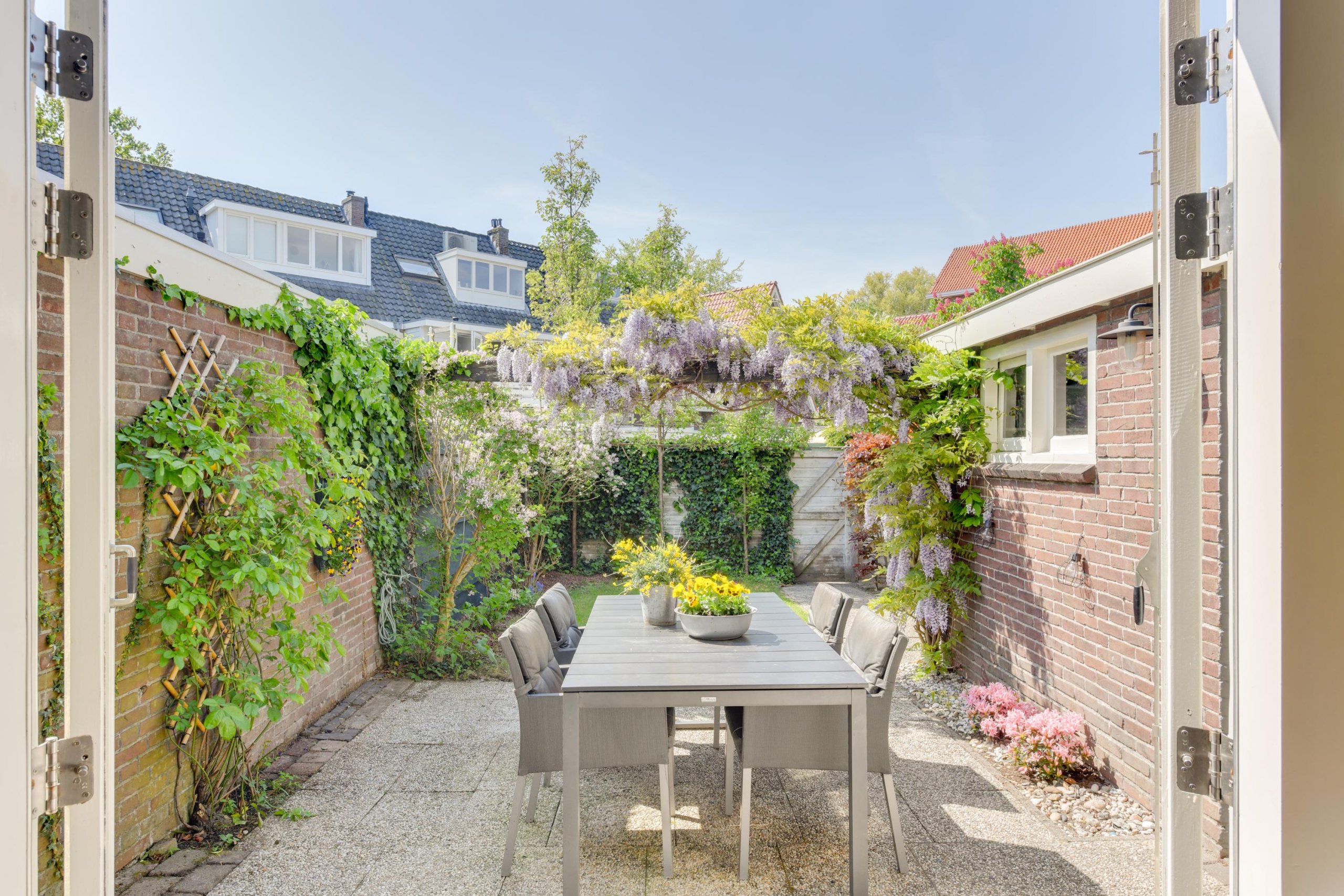 De achtertuin van deze woning is werkelijk een groene oase van rust, midden in het centrum van Alkmaar. Terwijl je geniet van de zon op het westen, hebben kinderen hier alle ruimte om onbezorgd te spelen. De tuin is niet alleen sfeervol, maar ook praktisch ingericht met een berging, schuurkast, wateraansluiting en een handig achterom. Via deze achterom kom je uit op een (autoluw) pleintje – een veilige plek waar je gemakkelijk kunt in- en uitladen. Ideaal na het boodschappen doen of vlak voor vertrek op vakantie. Een rustige, kindvriendelijke plek waar stad en comfort samenkomen.
