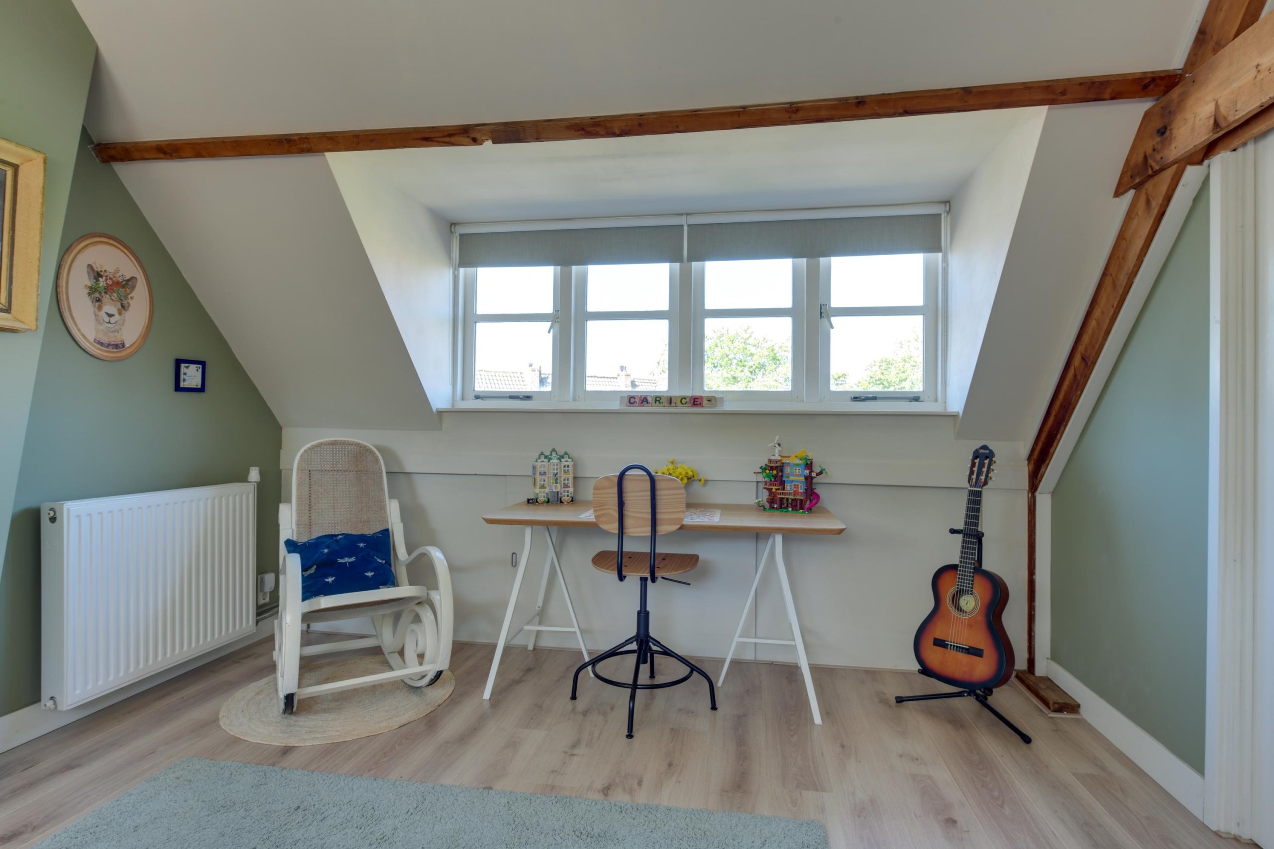 Via een vaste trap bereik je de voorzolder, daar bevindt zich de wasmachineaansluiting en de cv-ketel. De zolderkamer is een prachtige vierde ruime slaapkamer met een dakkapel aan de voor- en achterzijde.