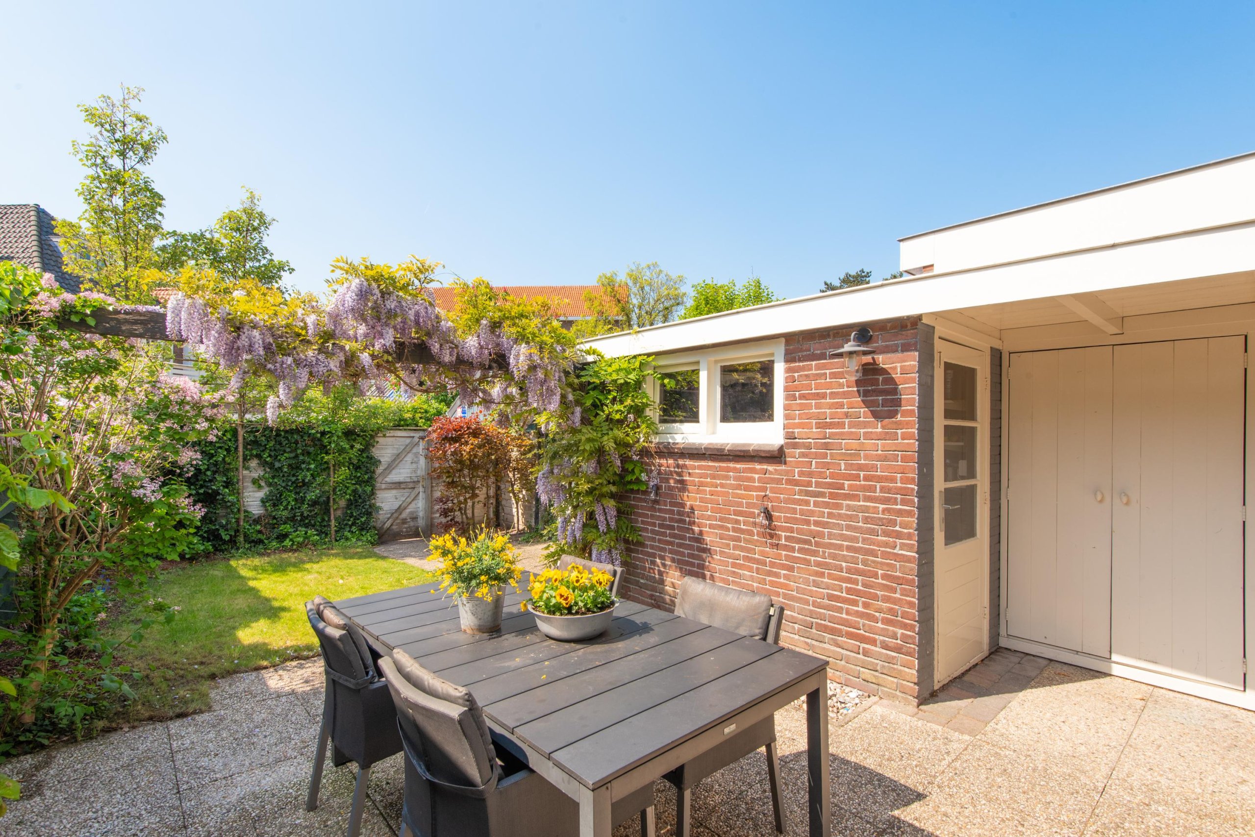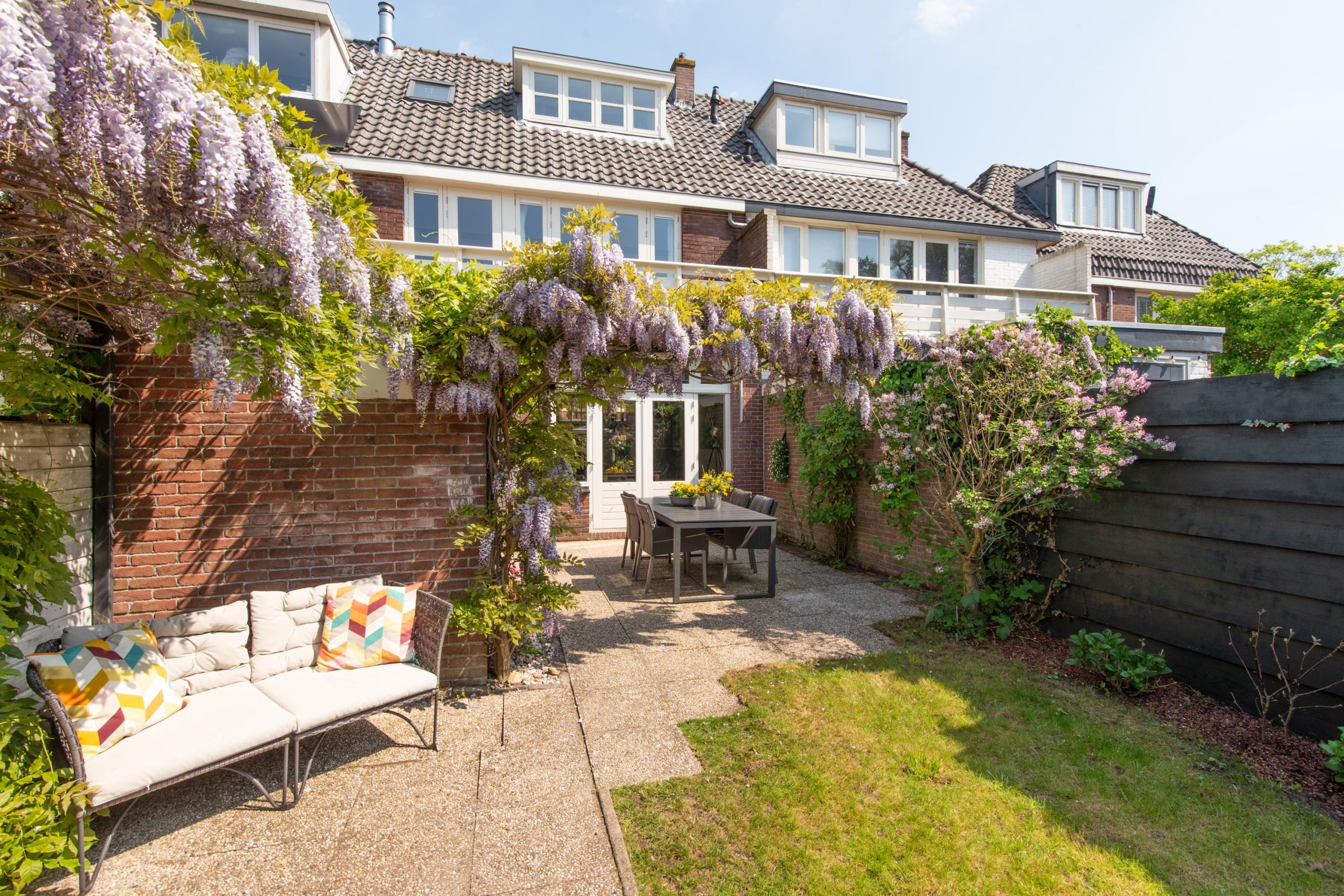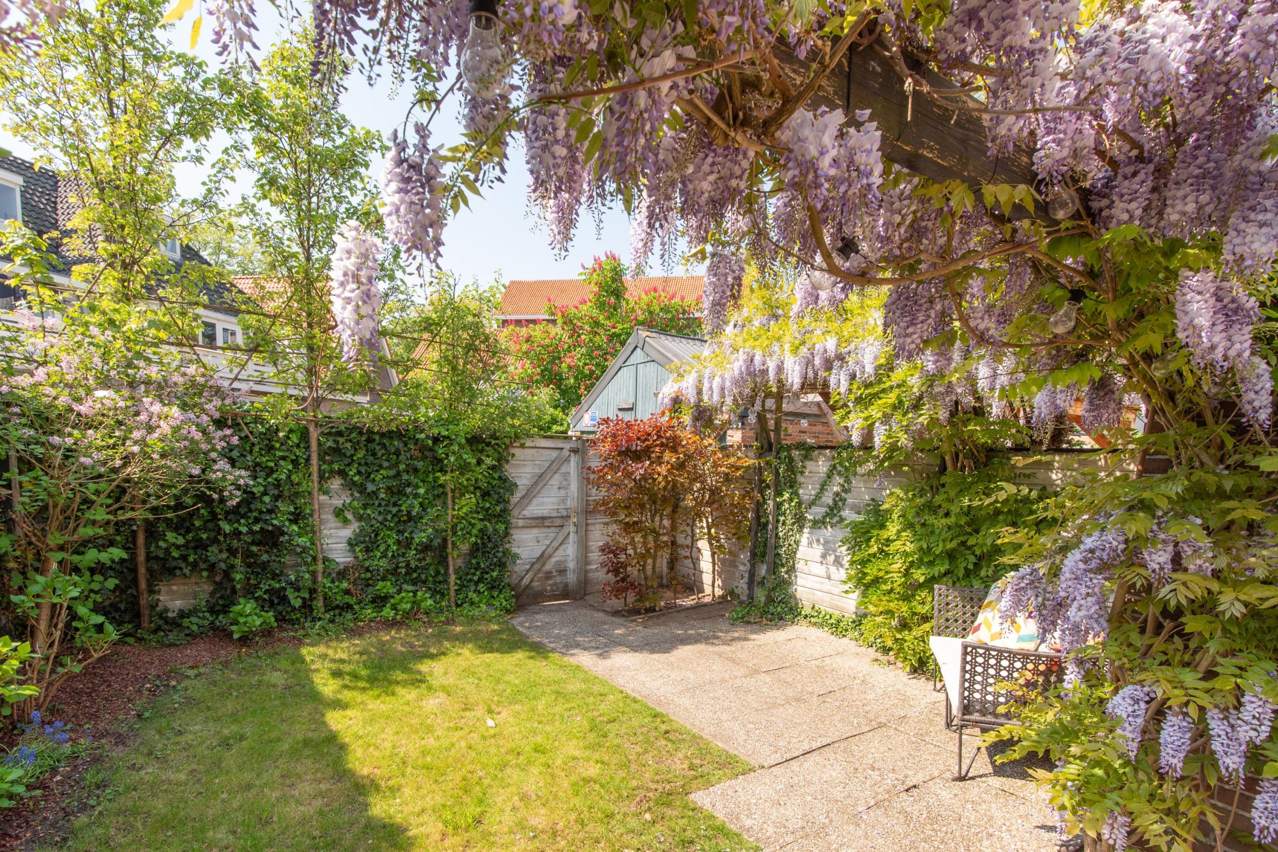 - Prachtige groene tuin met berging en achterom (voor zowel fiets als auto)
