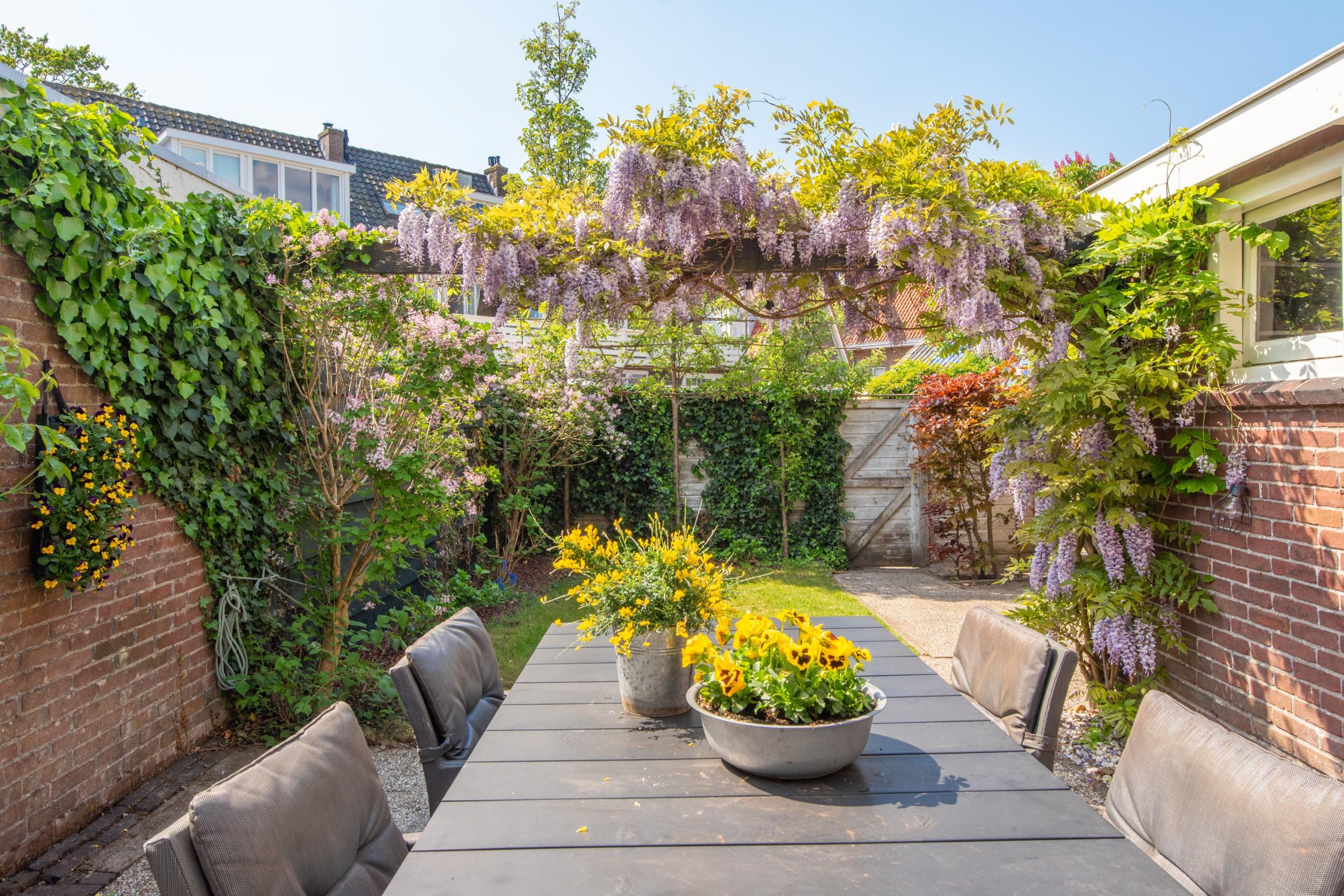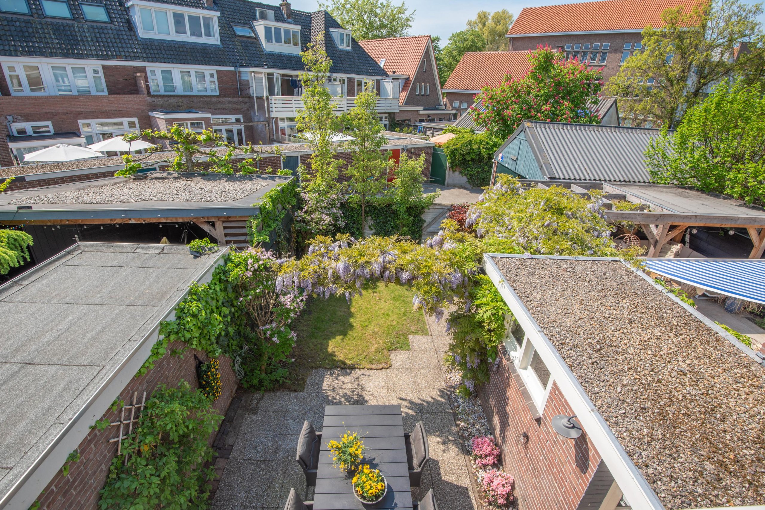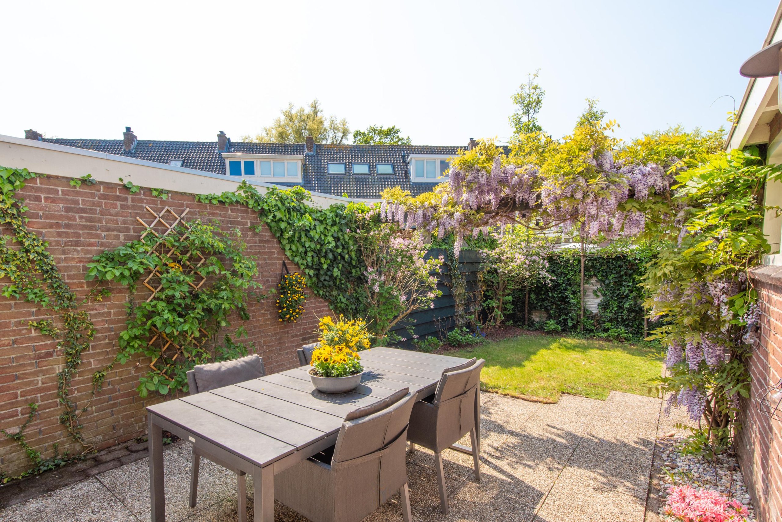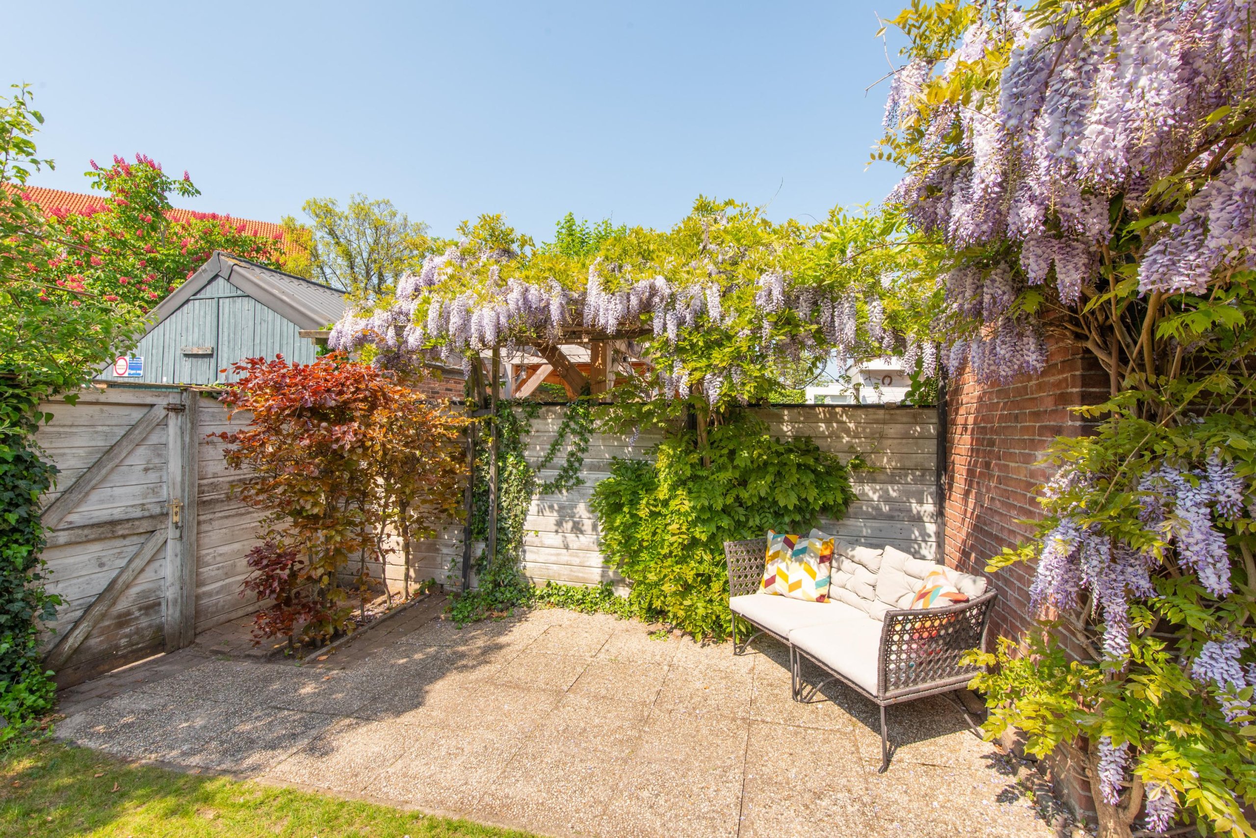- Prachtige groene tuin met berging en achterom (voor zowel fiets als auto)