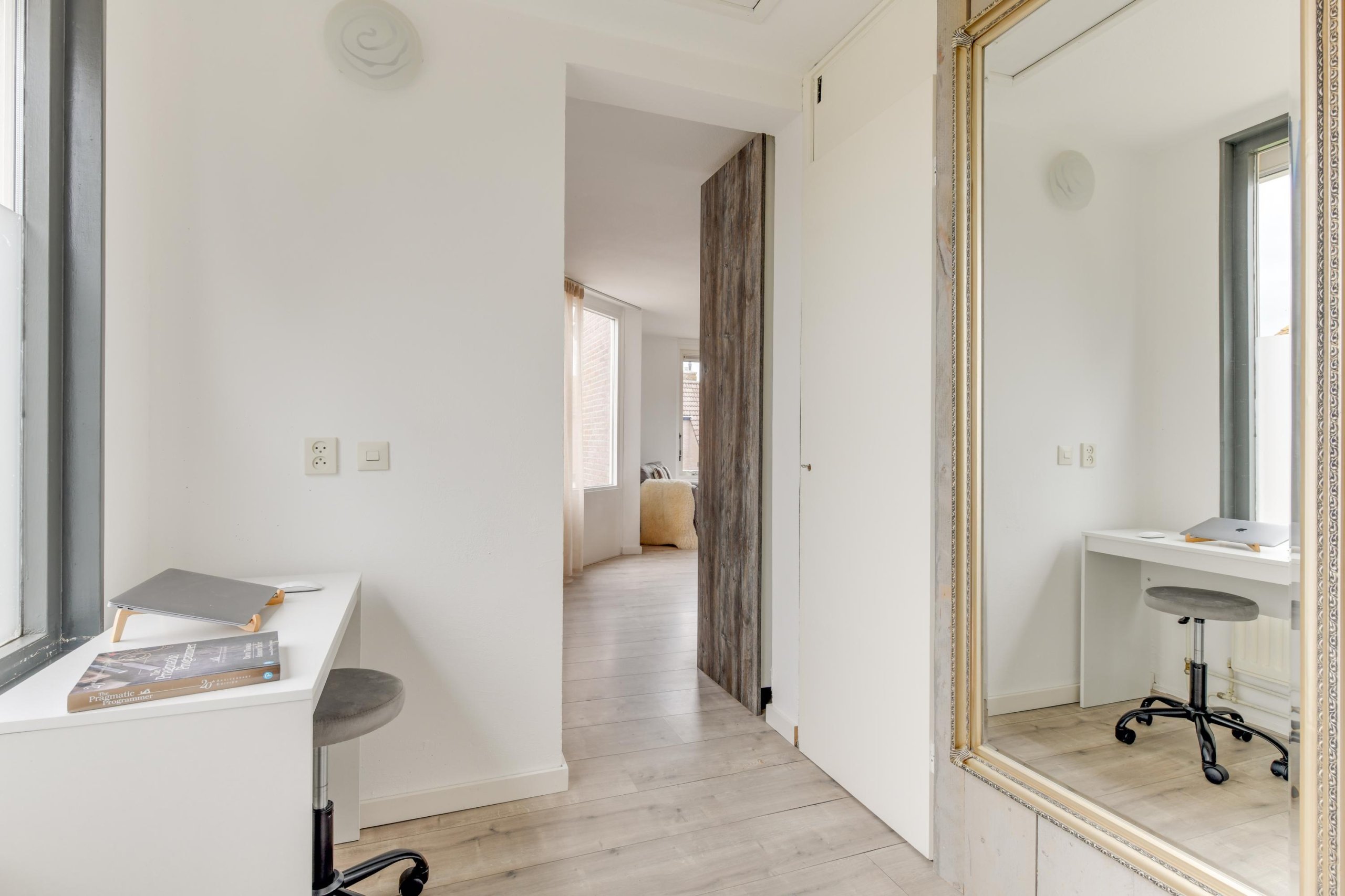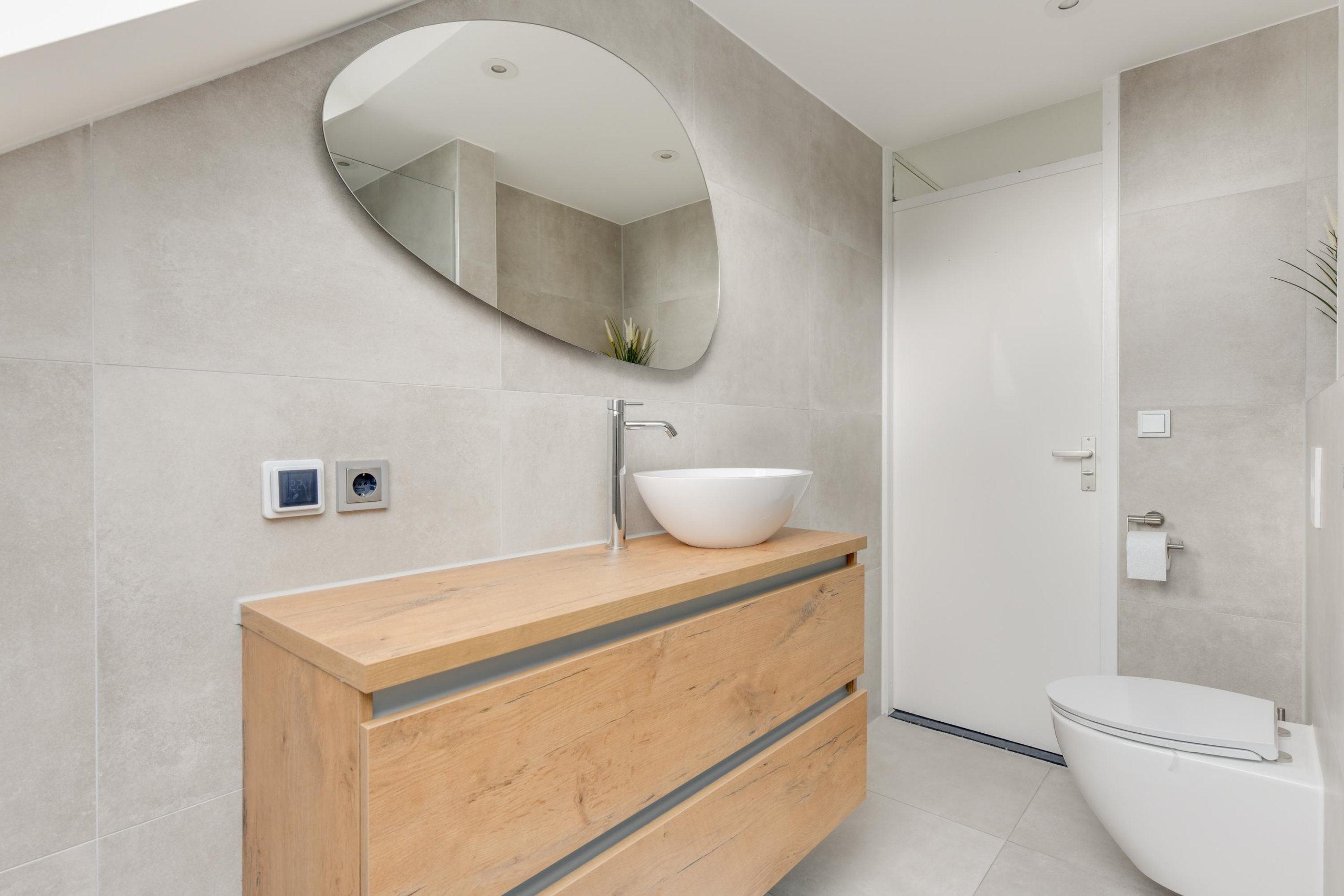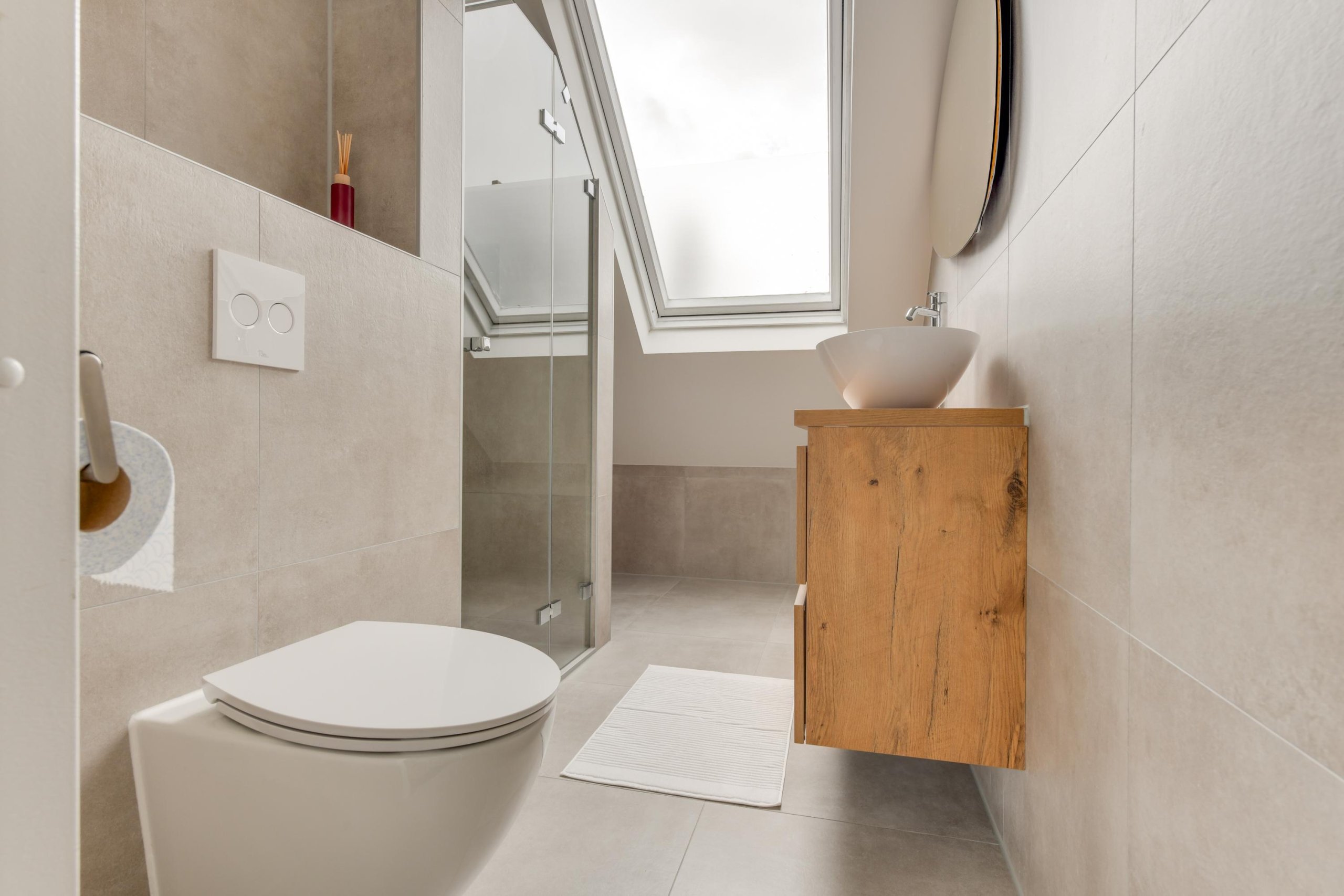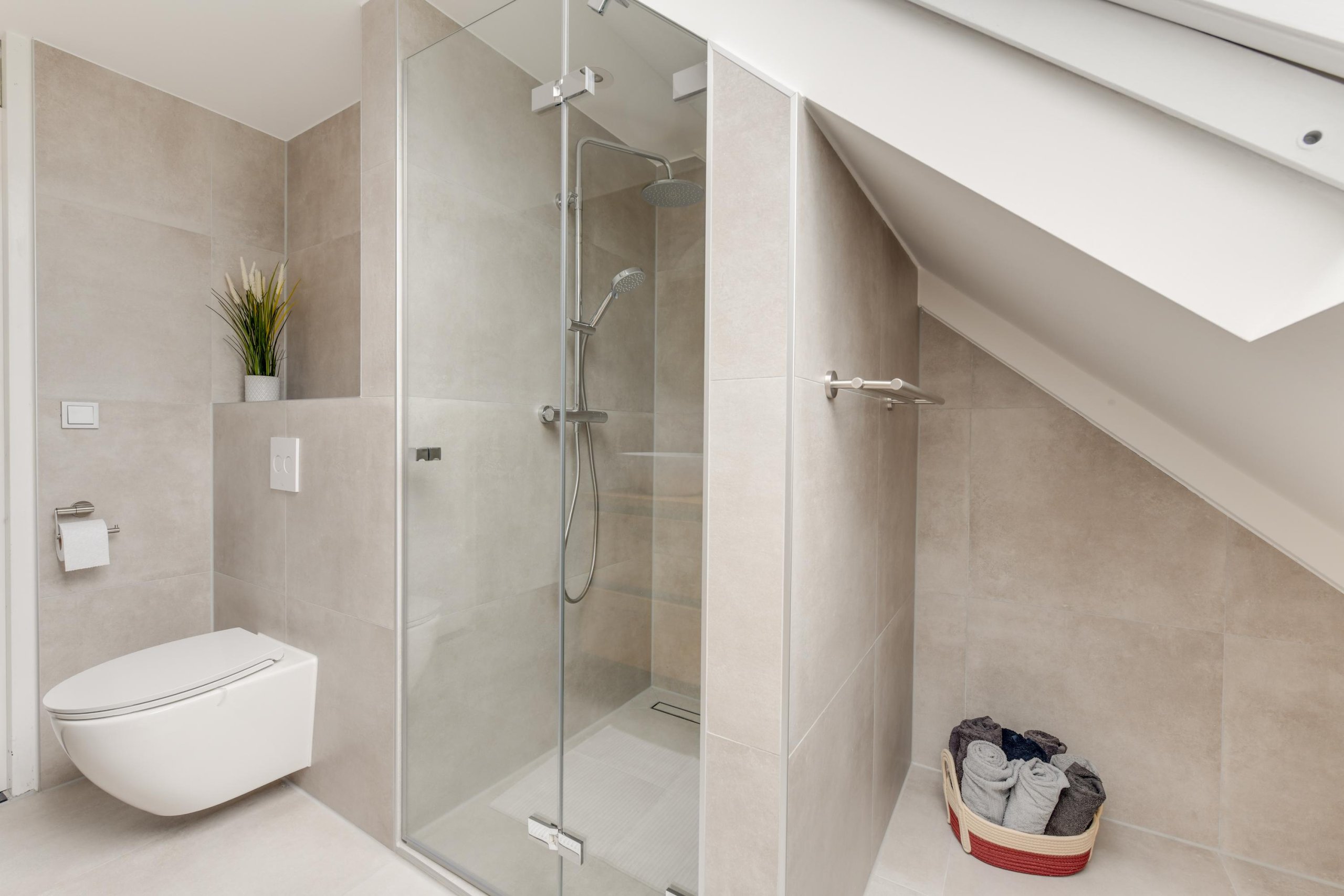 Verder vind je op deze verdieping een ruime slaapkamer en een moderne badkamer met douche, toilet en wastafel.