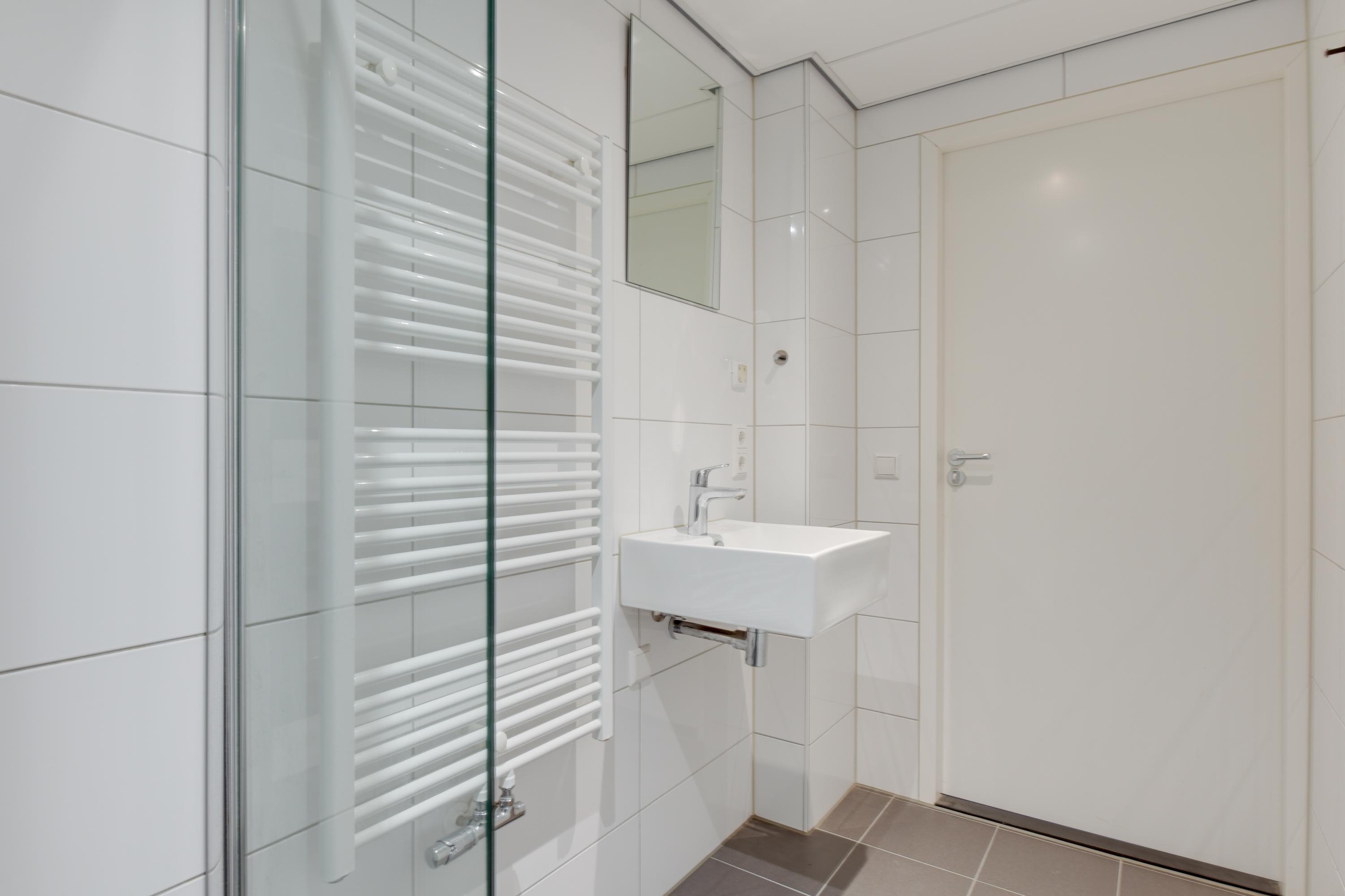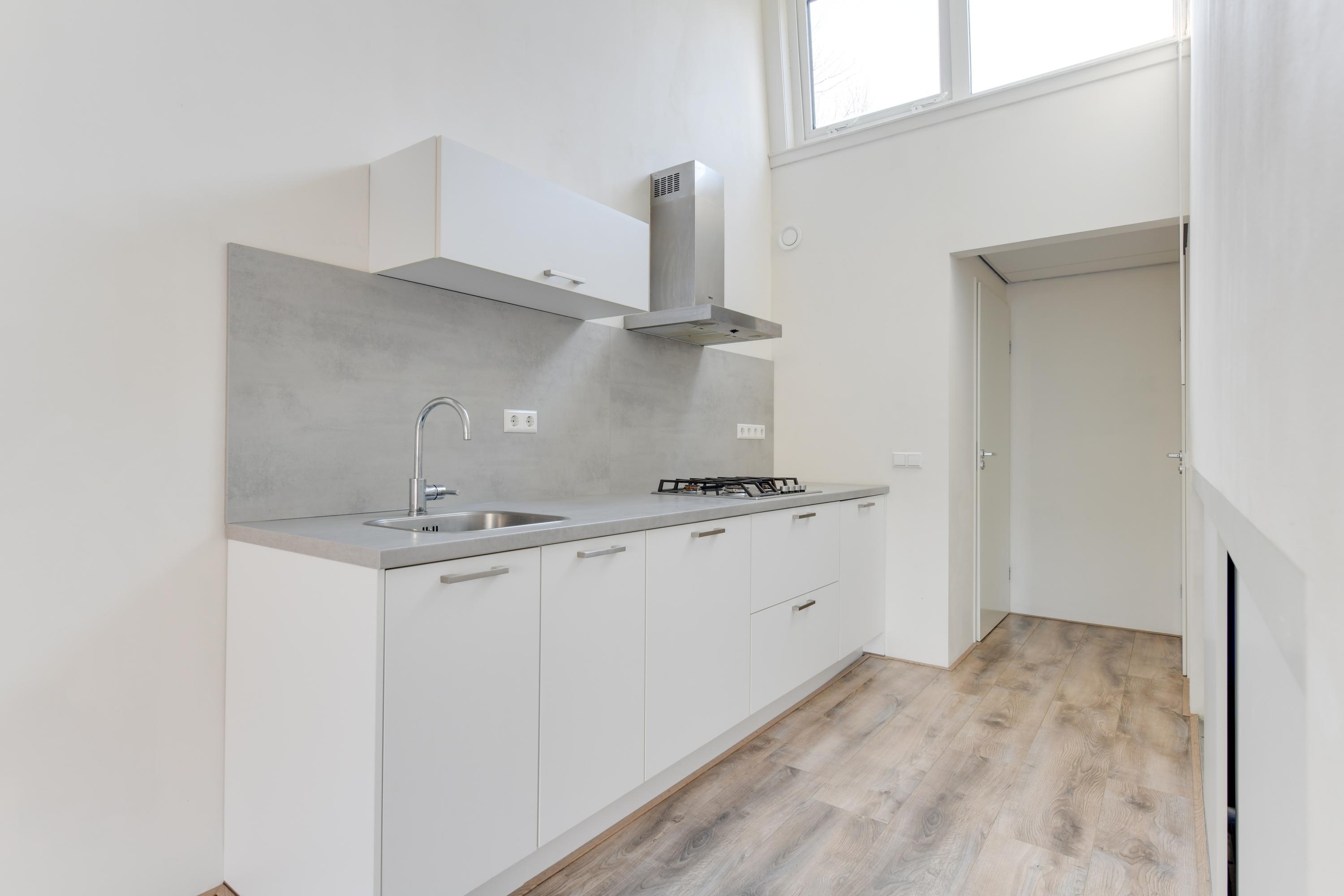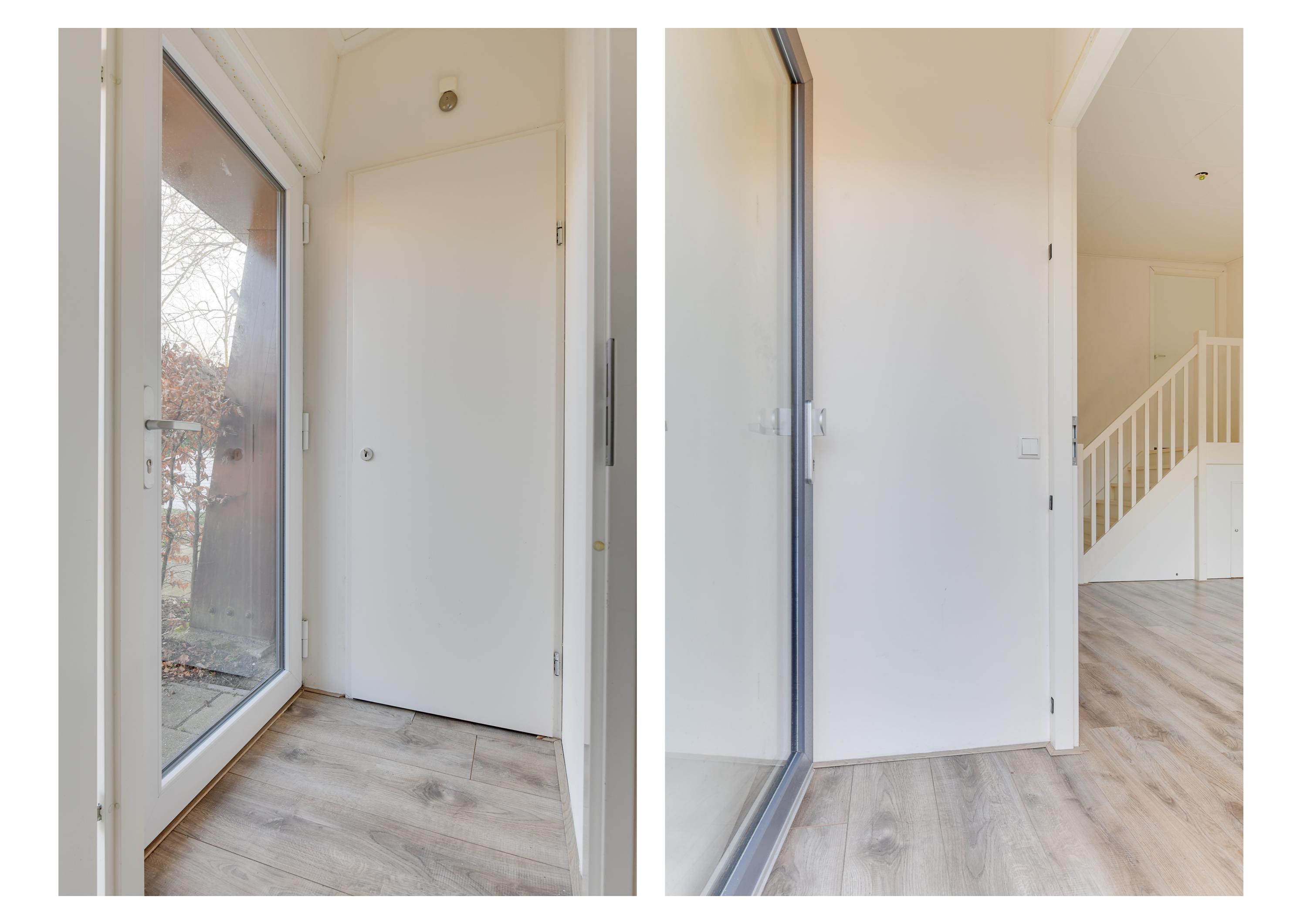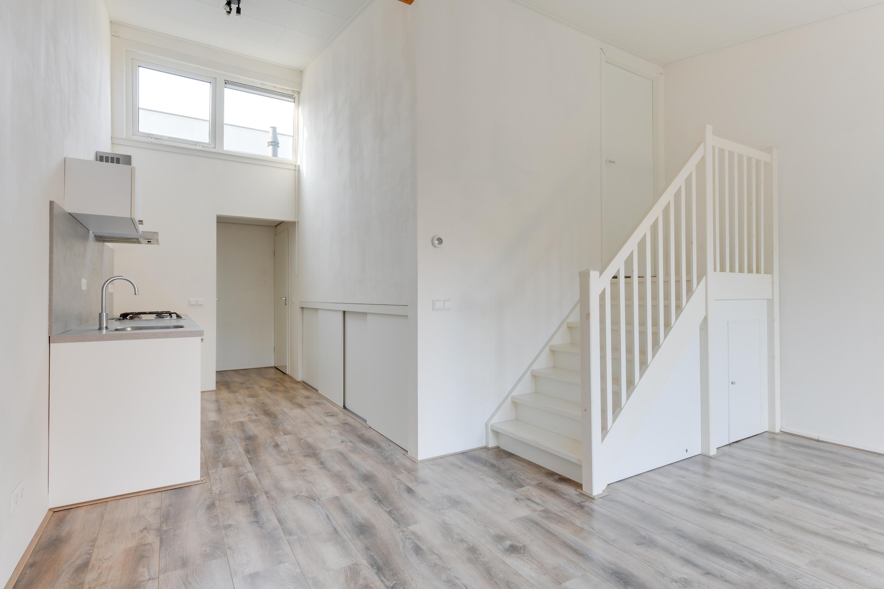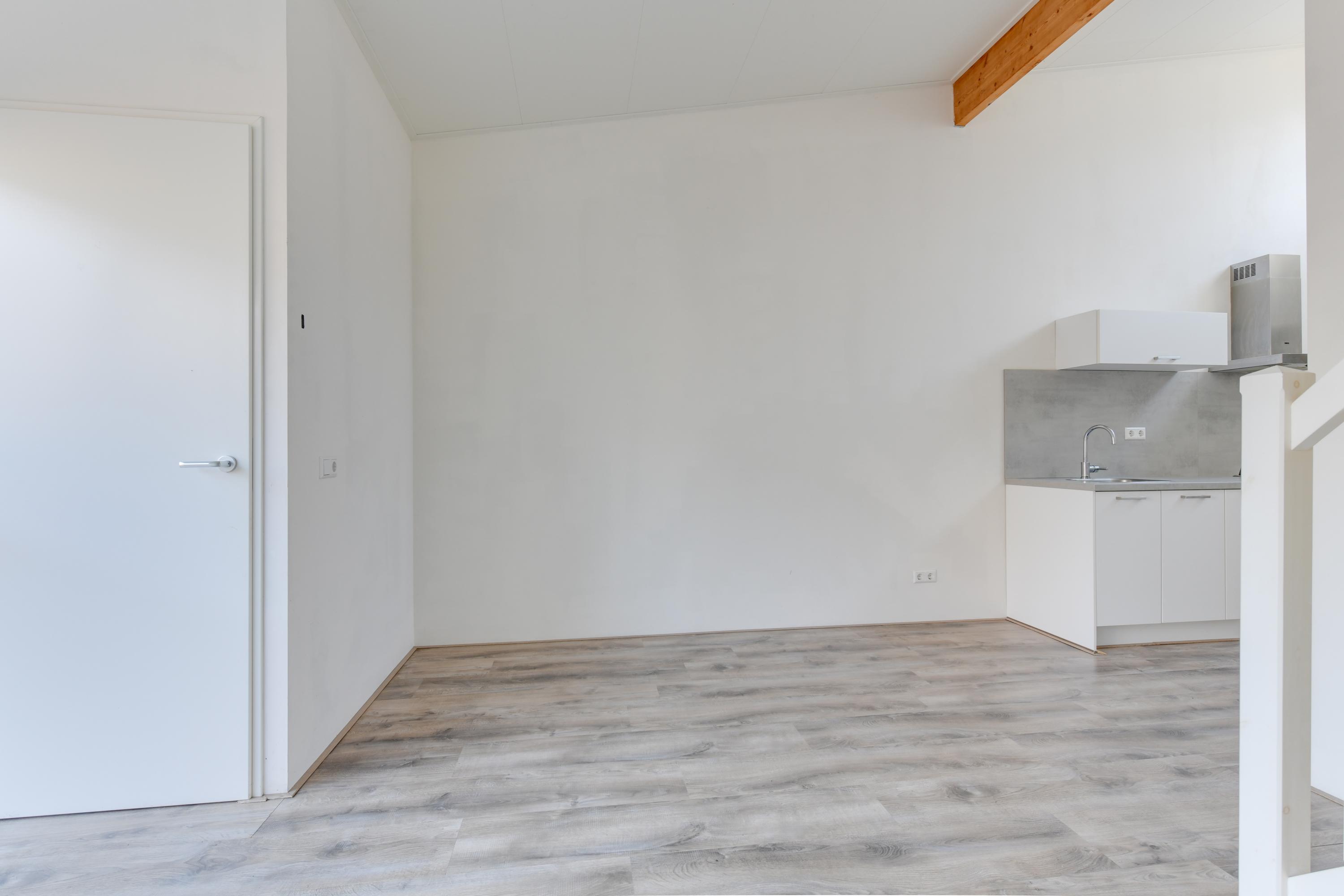Via de entree bereik je de hal met daarin de meterkast. Vervolgens kom je in de heerlijk lichte woonkamer met grote glazen pui naar de tuin. De keuken staat in open verbinding met de woonkamer en is voorzien van een moderne inrichting met ingebouwde koelkast met vriesvak, gaskookplaat en afzuigkap. Vervolgens tref je het separate toilet aan welke modern is betegeld en voorzien is van een zwevend toilet. De badkamer tref je aan de overzijde van de toiletruimte en deze is voorzien van een heerlijke inloopdouche, wastafel en een designradiator. Op een kleine verhoging ligt de slaapkamer. Deze is ruim bemeten en in 2024 voorzien van een nieuw kozijn. Doordat de slaapkamer op een verhoging ligt is er ruimte onder de kamer aanwezig. Deze wordt thans gebruikt voor de wasmachine, de opstelling van de CV ketel en opbergruimte. De tuin voor de woning ontvangt de gehele dag de zon doordat het gebouw laag is en de zon daardoor alle ruimte heeft om in de tuin te schijnen.