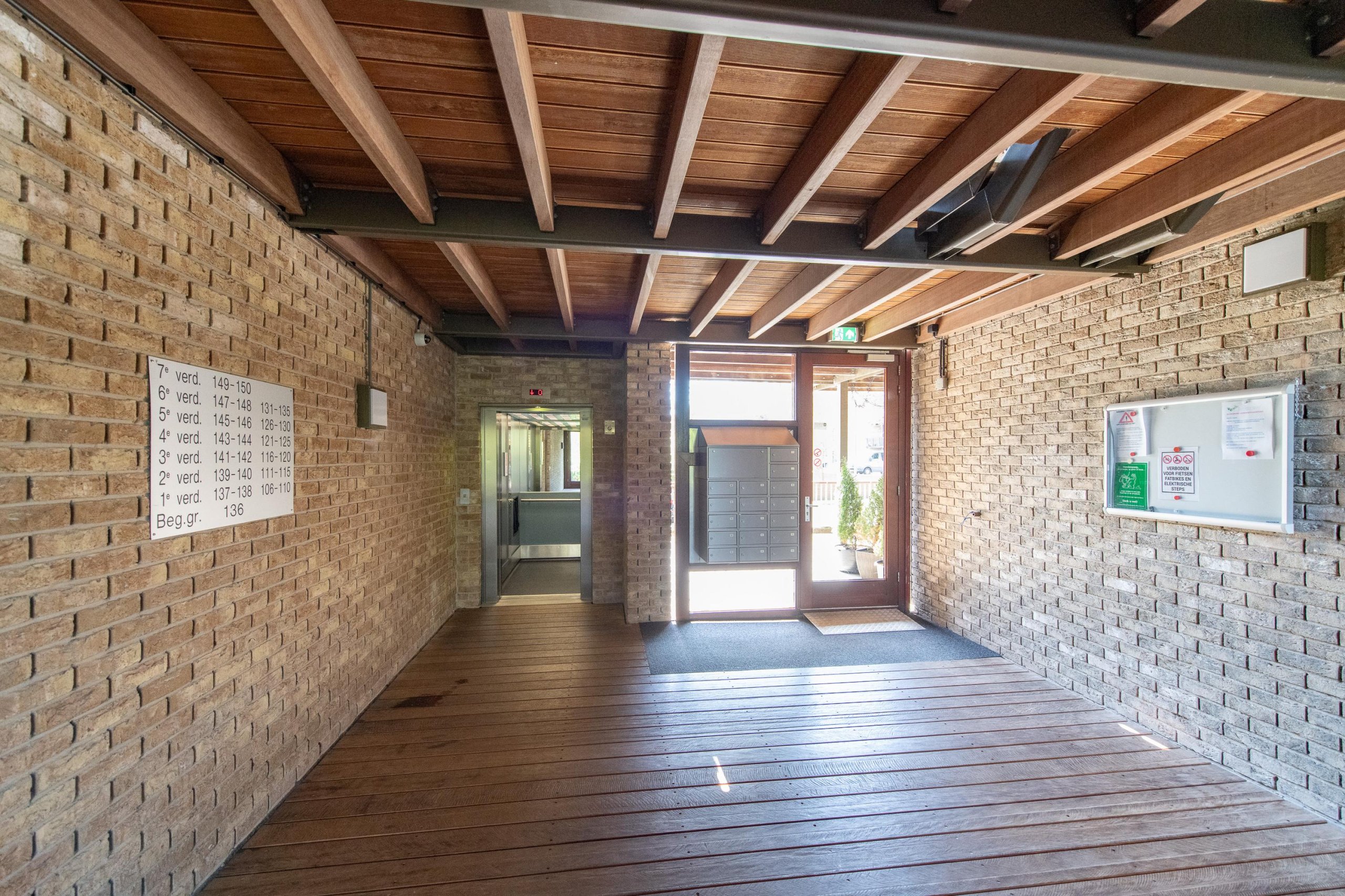 Gezamenlijke entree met intercominstallatie, brievenbussen, lift en trappenhuis. Daarnaast beschik je over een eigen parkeerplaats, voorzien van een eigen elektrapunt.