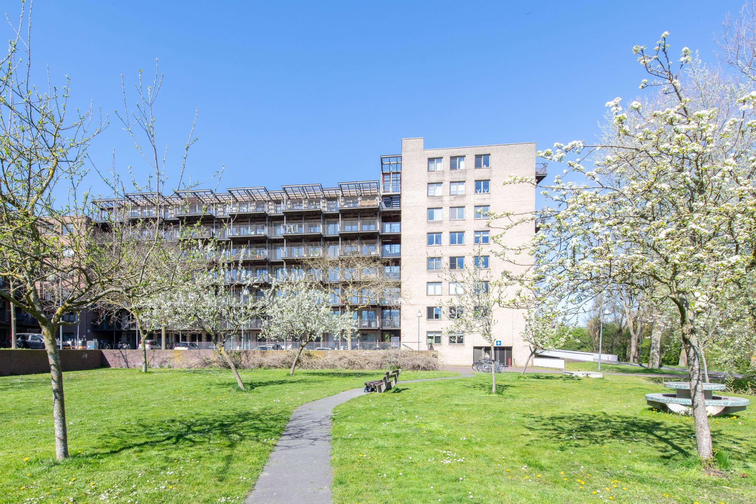 Het appartement ligt op een fijne locatie met uitzicht over het park en beschikt over een eigen zonneterras.