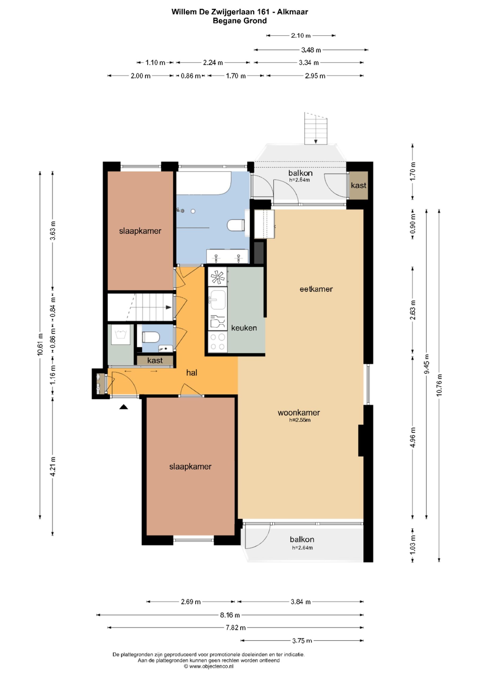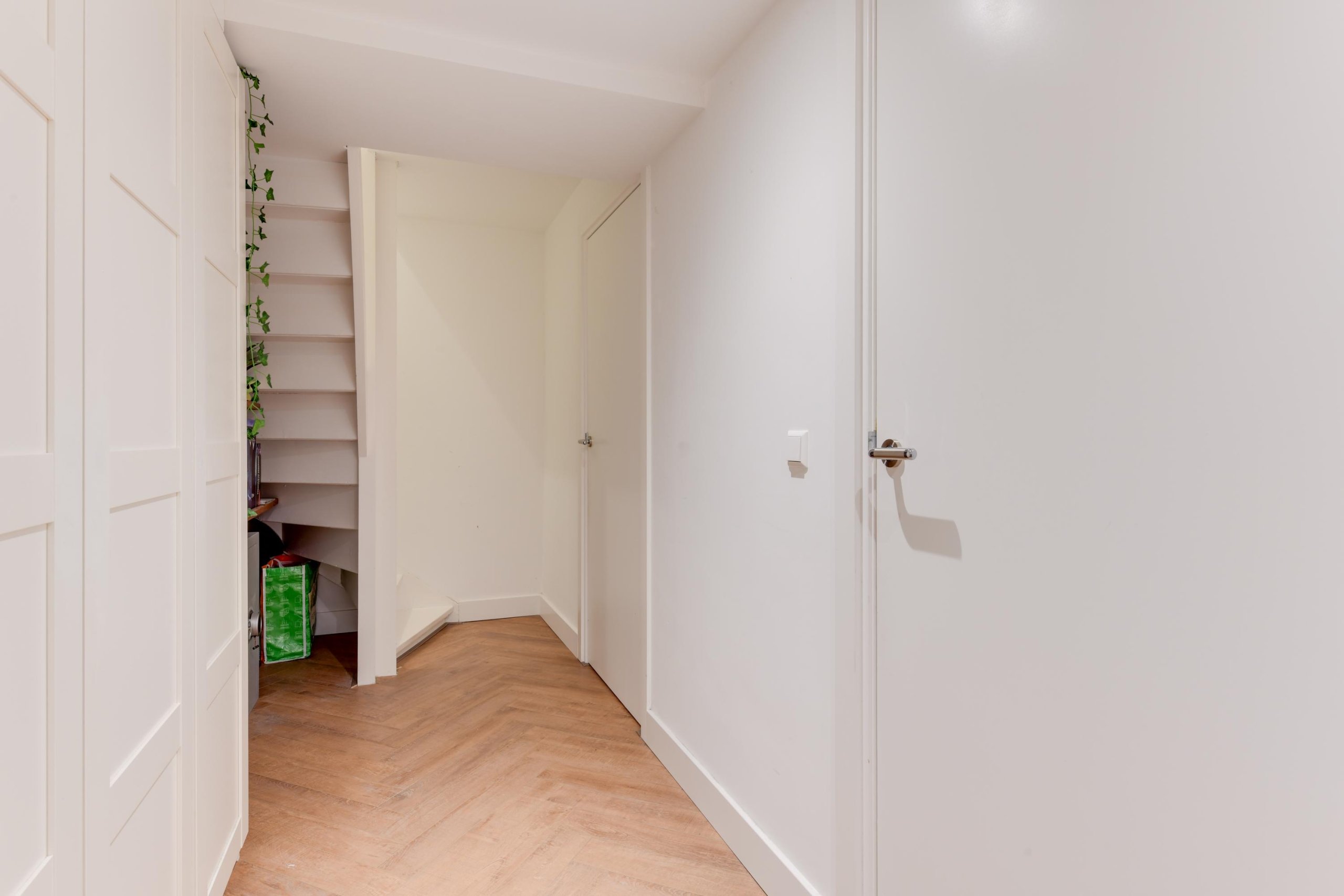Eerste verdieping: Je komt binnen via het gemeenschappelijke trappenhuis (er is geen lift aanwezig) op de eerste woonlaag. In de hal vind je de meterkast en een bergkast met witgoedaansluiting. Vanuit hier heb je toegang tot twee slaapkamers en een luxe badkamer met ligbad, ruime inloopdouche, wastafel en een tweede toilet. De ruime woon-eetkamer is dankzij de hoekligging heerlijk licht en biedt toegang tot zowel het balkon (voor en achter) als de achtertuin – ideaal voor wie graag binnen én buiten geniet. De moderne keuken is uitgerust met diverse inbouwapparatuur. De hele verdieping is afgewerkt met stijlvolle plavuizen en voorzien van vloerverwarming: comfortabel en onderhoudsvriendelijk.