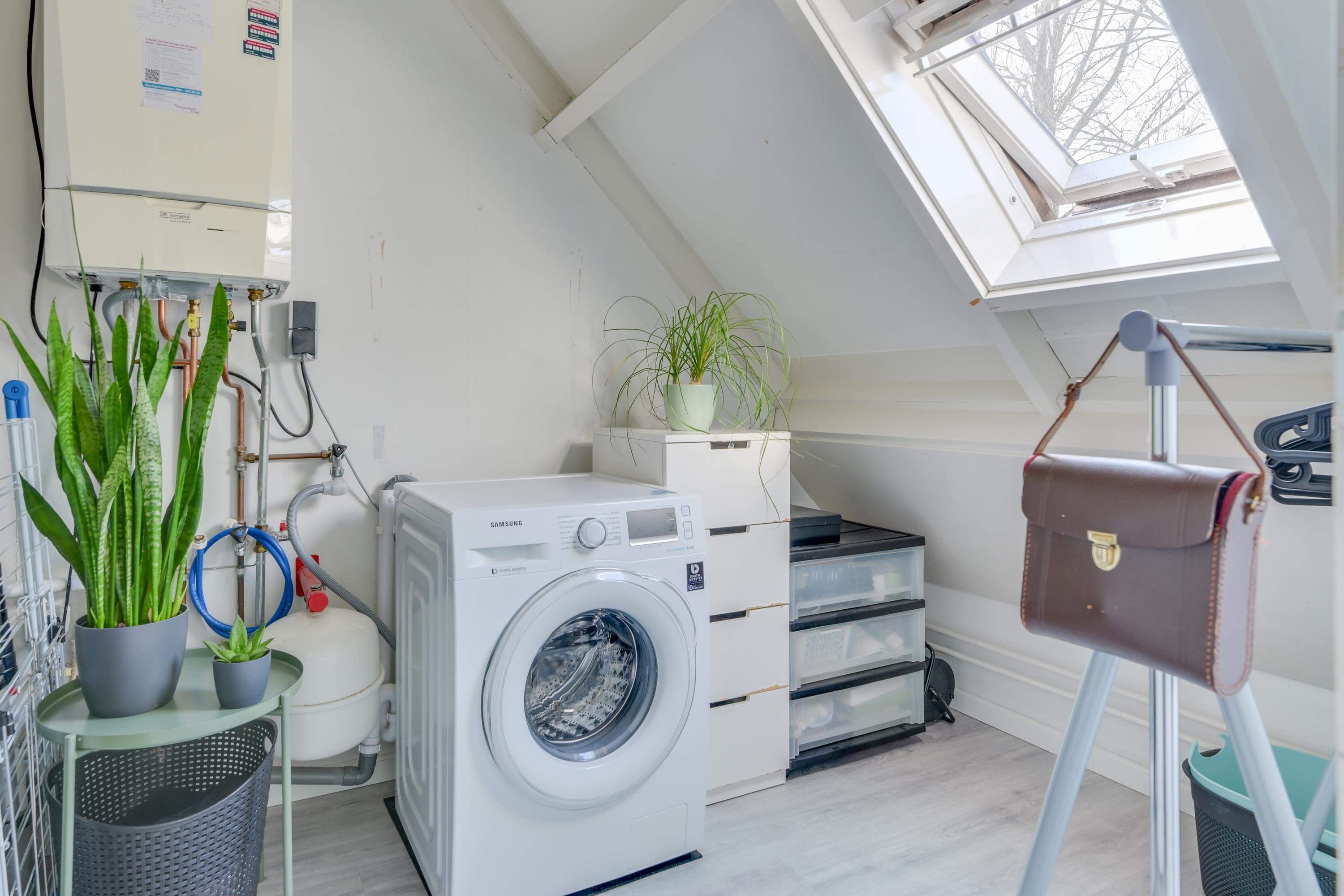 Via 1 van de slaapkamers is er toegang tot een praktische technische ruimte met wasmachineaansluiting en c.v. opstelling. Daarnaast is er een vide aanwezig met extra bergruimte.