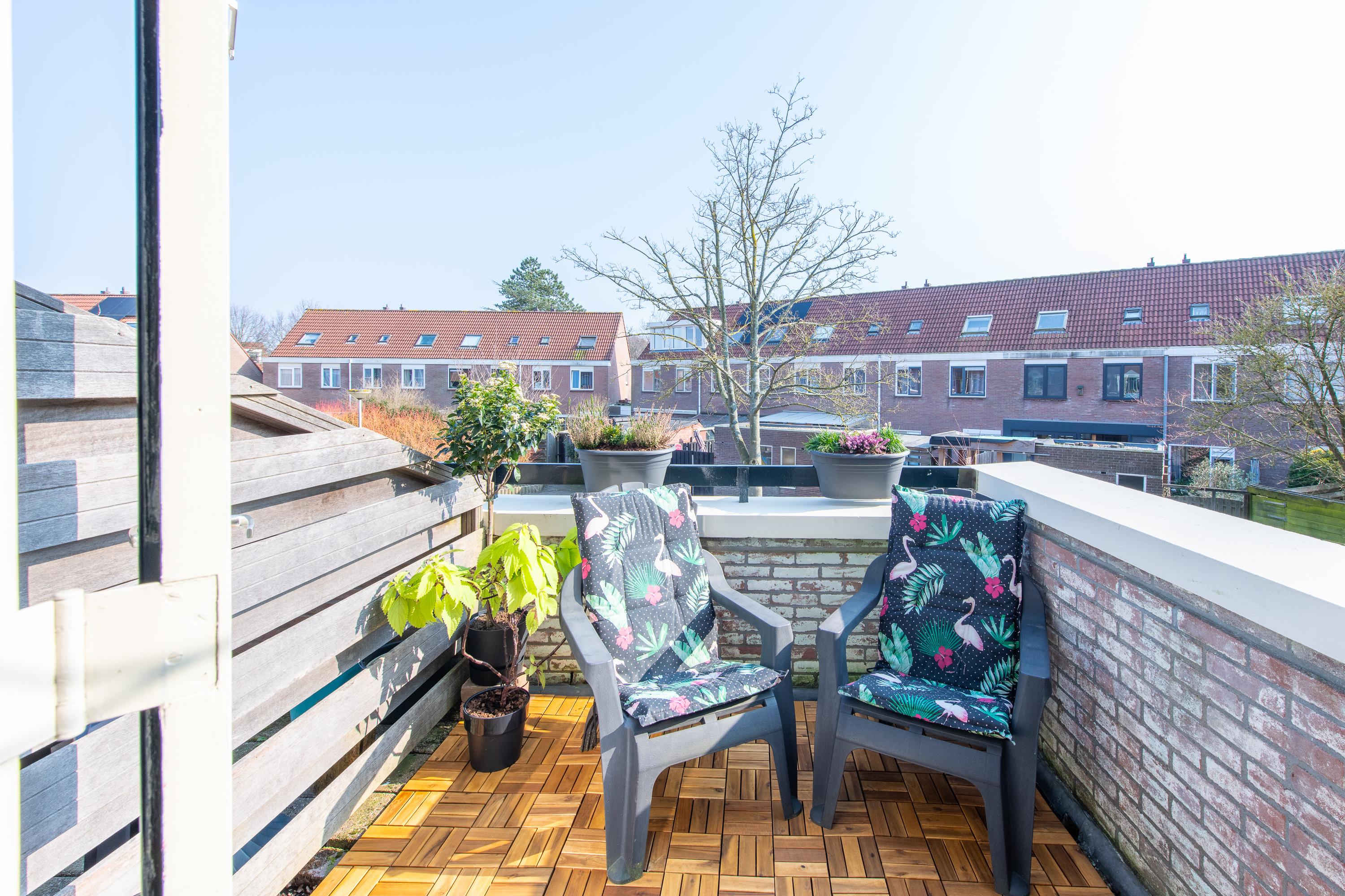 - Terras aan de voorzijde en balkon aan de achterzijde