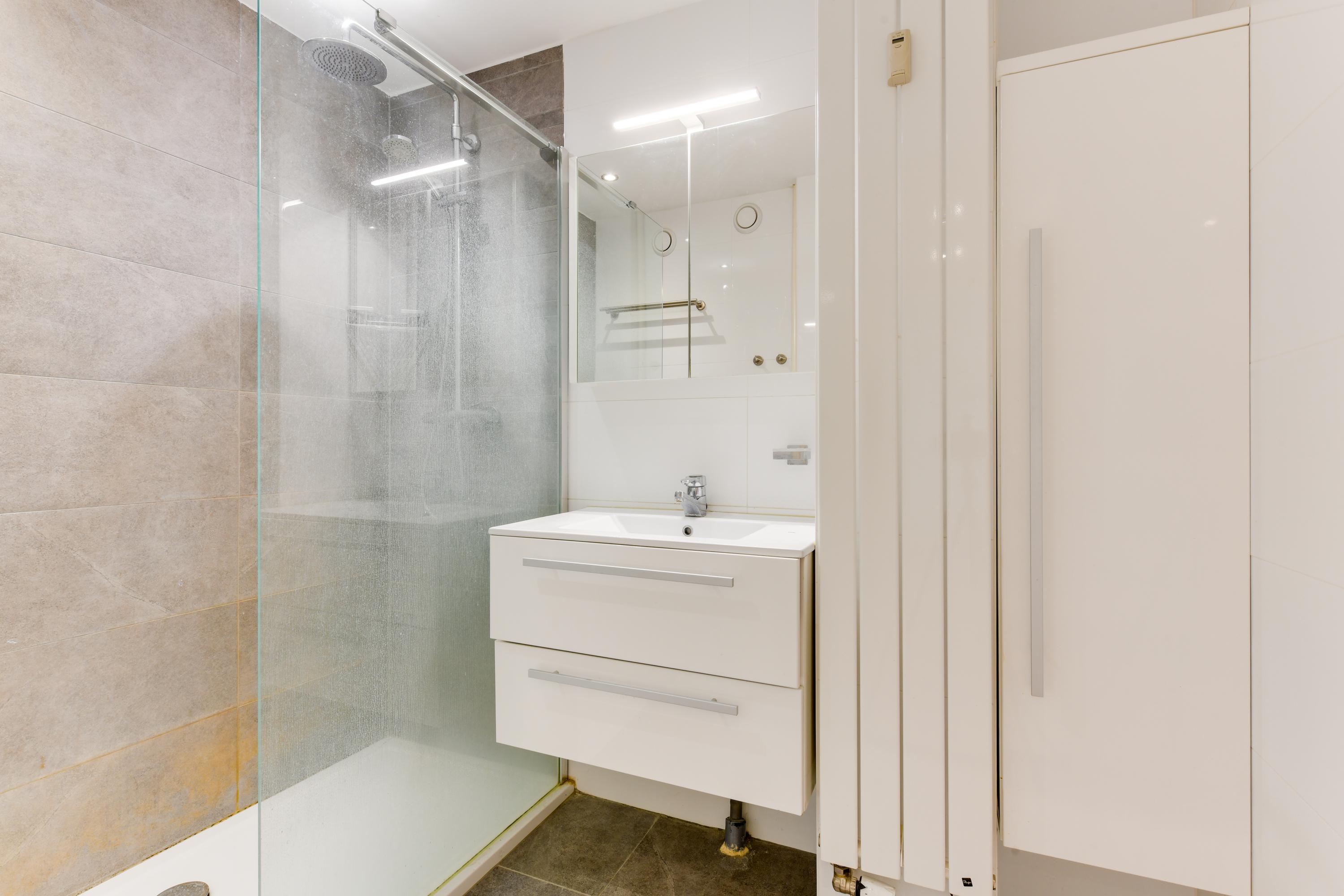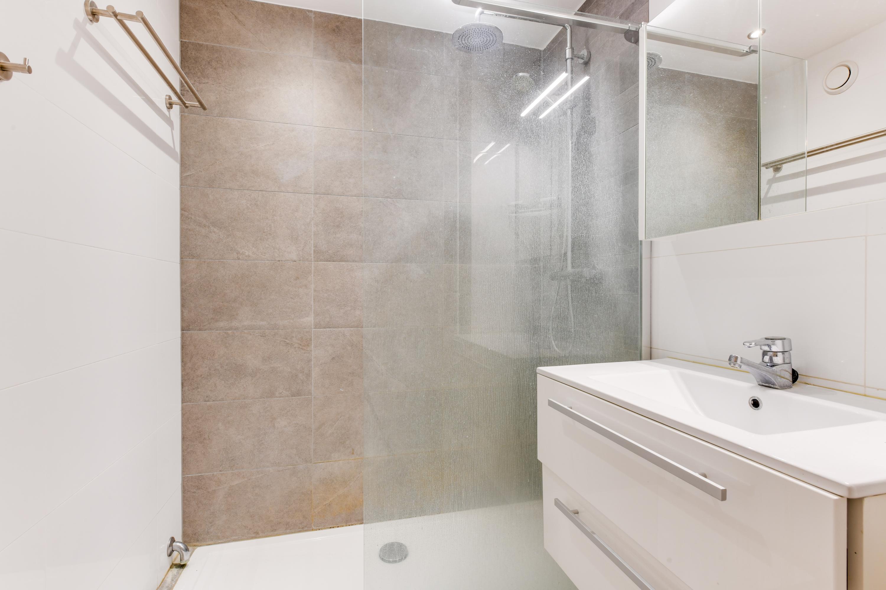 De twee slaapkamers zijn beiden van goed formaat, netjes afgewerkt en gelegen aan de rustige zijde van het complex. De badkamer is voorzien van een douche, wastafel, spiegel en wandkast. Het separaat toilet met fonteintje bevindt zich naast de badkamer.