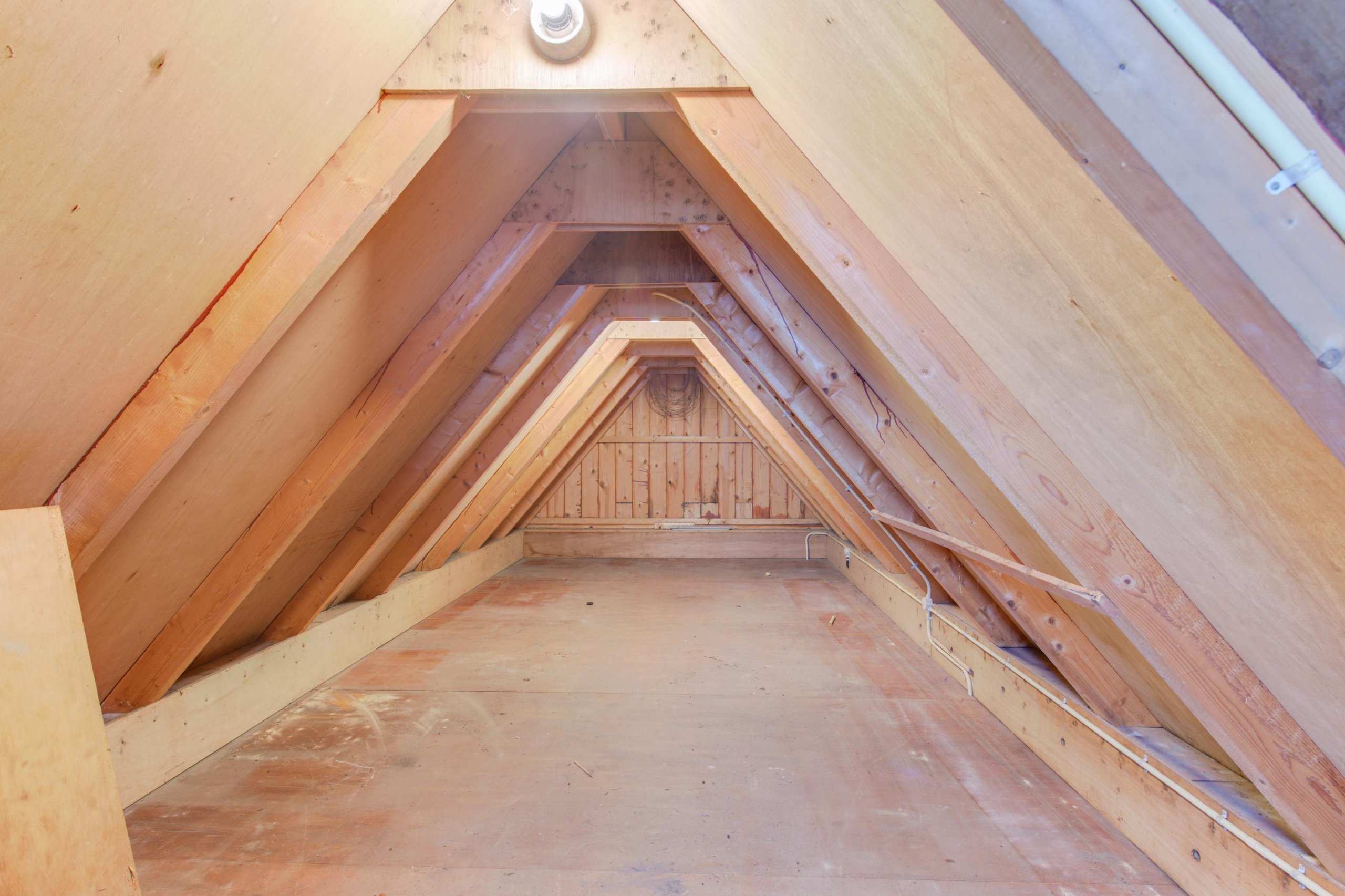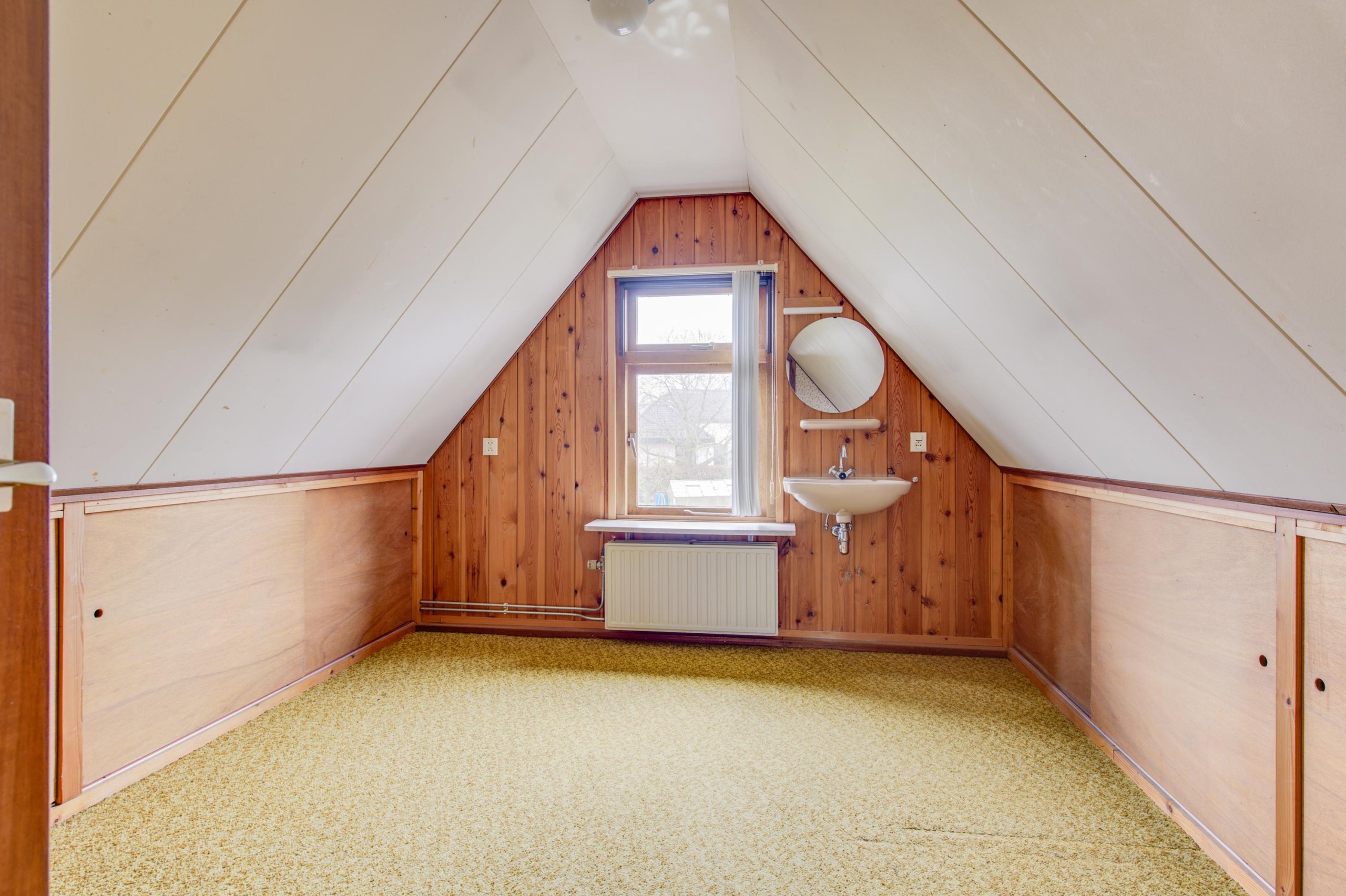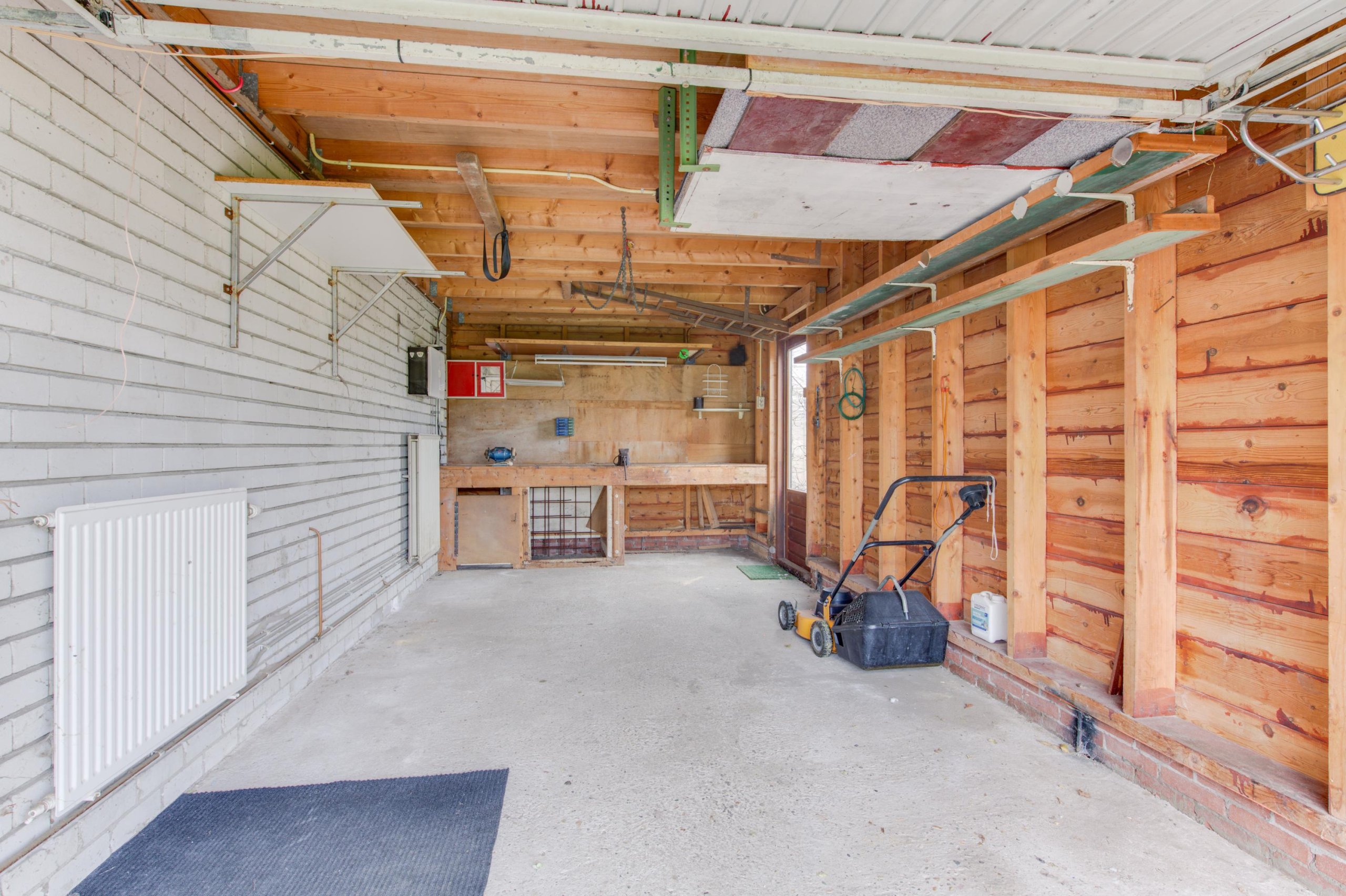 Naast de woning staat de garage. Deze meet 18m2 en kan prima gebruikt worden om de auto in te parkeren. Deze garage biedt echter ook heel veel mogelijkheden om anders gebruikt te worden. Zo zou het een prachtige woonkeuken kunnen worden, een extra slaapkamer of een kantoor. Tussen de foto’s bevindt zich een artist impression waarop de mogelijkheden zichtbaar zijn gemaakt. Boven de garage is een heerlijk ruime vliering voor opslag. De punt van de garage en de woning zijn van kunststof waardoor het onderhoud beperkt is.