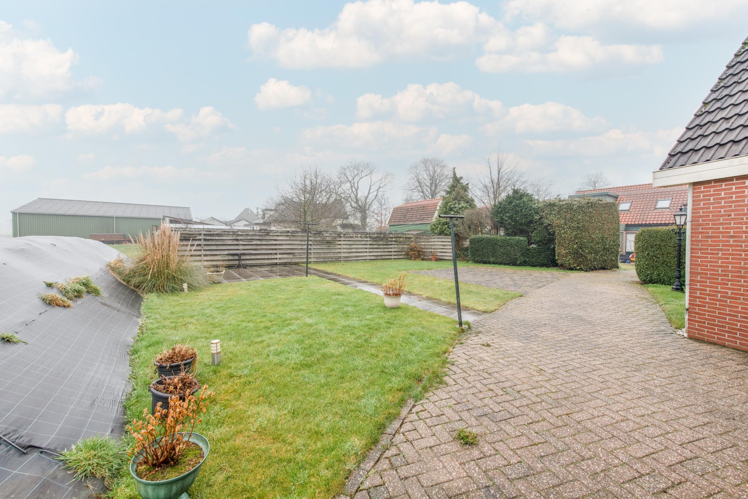 De tuin ligt in de luwte en de zon heeft hier de gehele dag alle ruimte om te schijnen. Je vindt hier meerdere terrassen, parkeerplekken en altijd een plekje om in de zon te zitten. Achter de woning ligt thans een aardewal. De eigenaar van deze wal is bereid om deze te verwijderen indien gewenst.