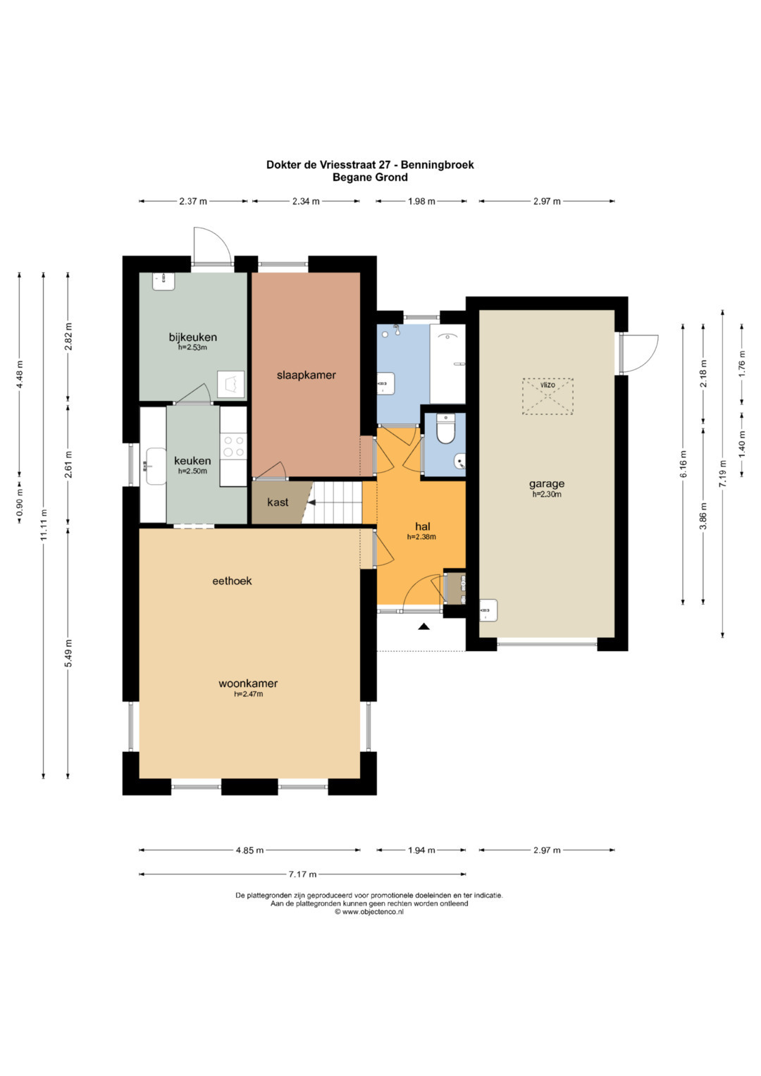 Via de voordeur bereik je de hal met de meterkast, het toilet, de badkamer met douche, ligbad en wastafel en de slaapkamer met vaste kast. Vervolgens kom je in de heerlijk lichte woonkamer. Deze ligt aan de voorzijde van de woning en de zon heeft hier door de vele ramen altijd ruimte om naar binnen te schijnen. Vanuit de woonkamer kijk je uit over je eigen tuin en door de ligging is privacy hier gewaarborgd. De half open keuken is voorzien van een rechte opstelling aan twee zijdes. Hier is alle ruimte om jouw droomkeuken te realiseren. Tot slot bereik je via de keuken de bijkeuken met daarin de ruimte voor de wasmachine, een wastafel, volop mogelijkheden voor opslag en een deur naar de achtertuin.