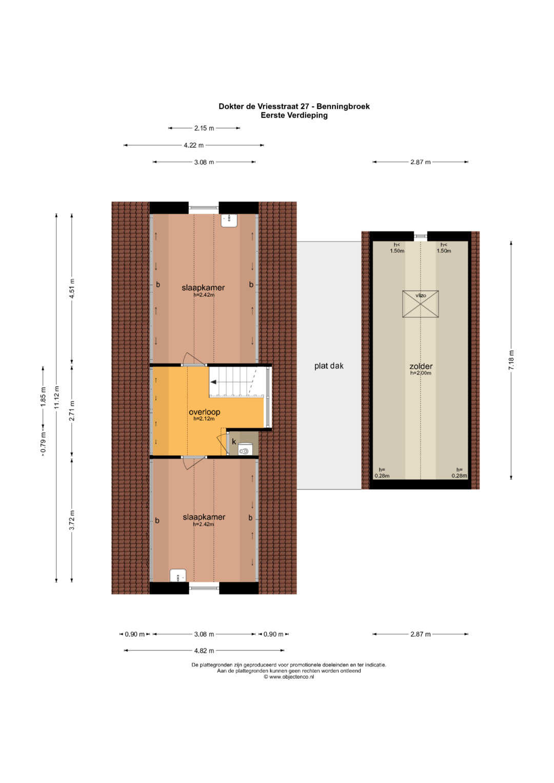 Op de eerste etage bevinden zich 2 grote slaapkamers. Beide kamers beschikken over veel opslagruimte in de knieschotten. De ruime overloop biedt ook ruimte aan kast waarin zich de CV ketel bevindt.