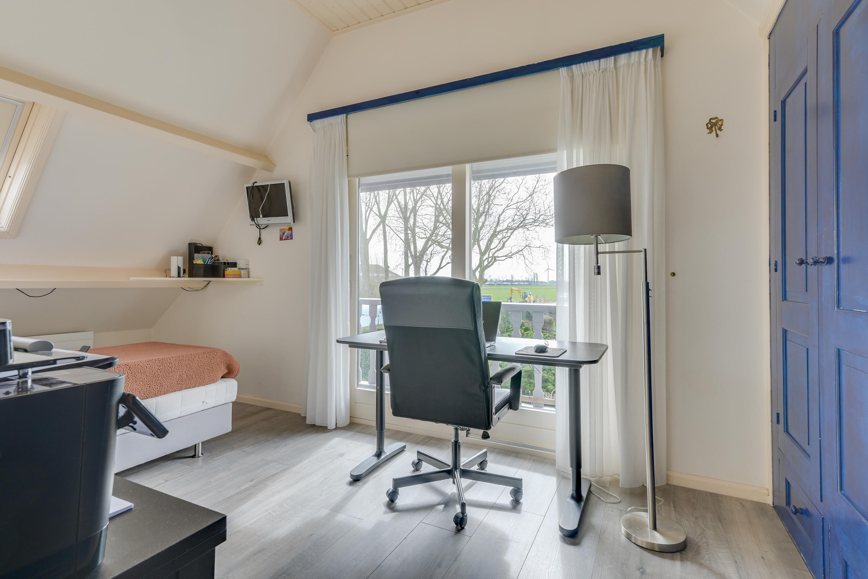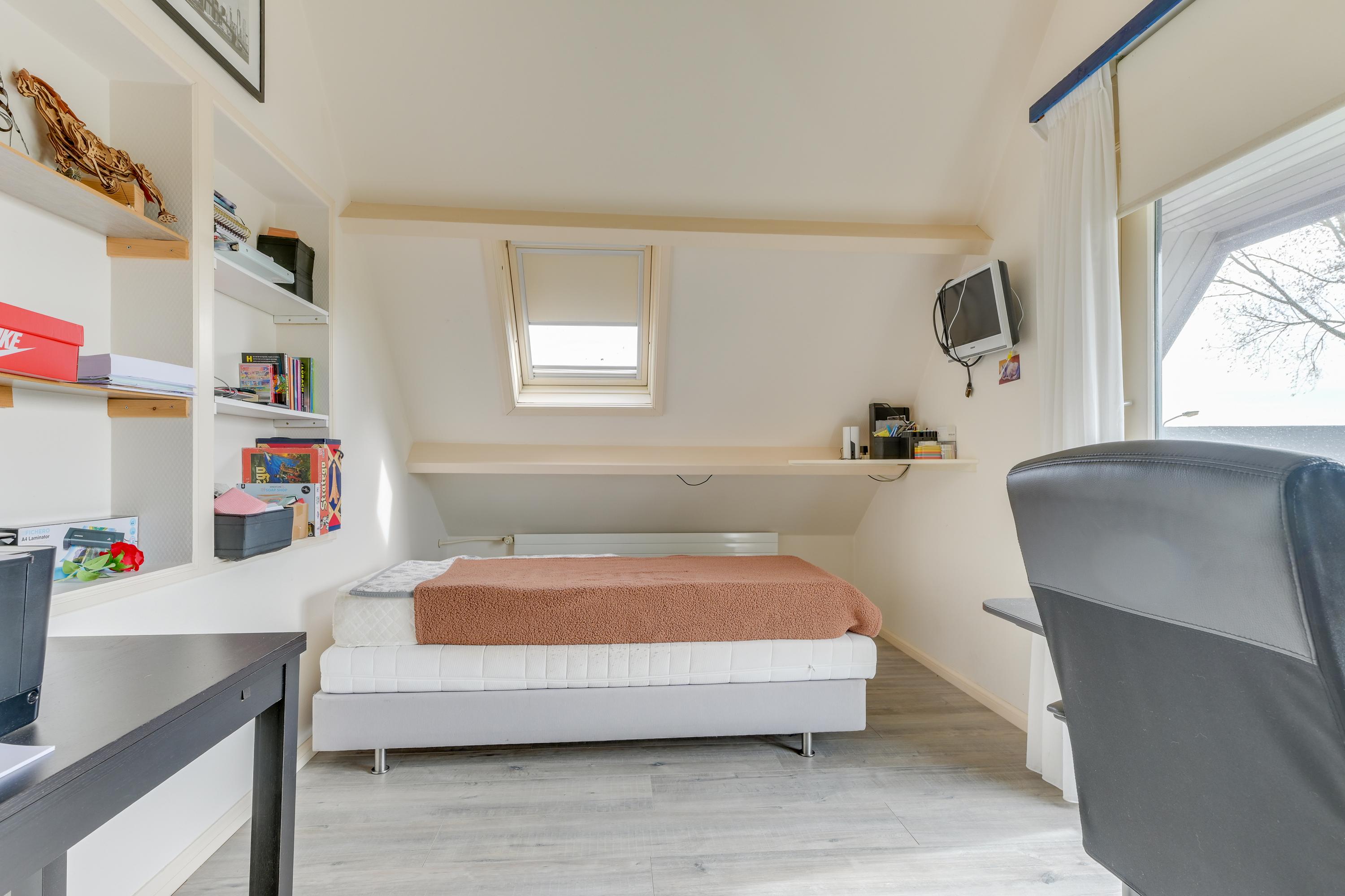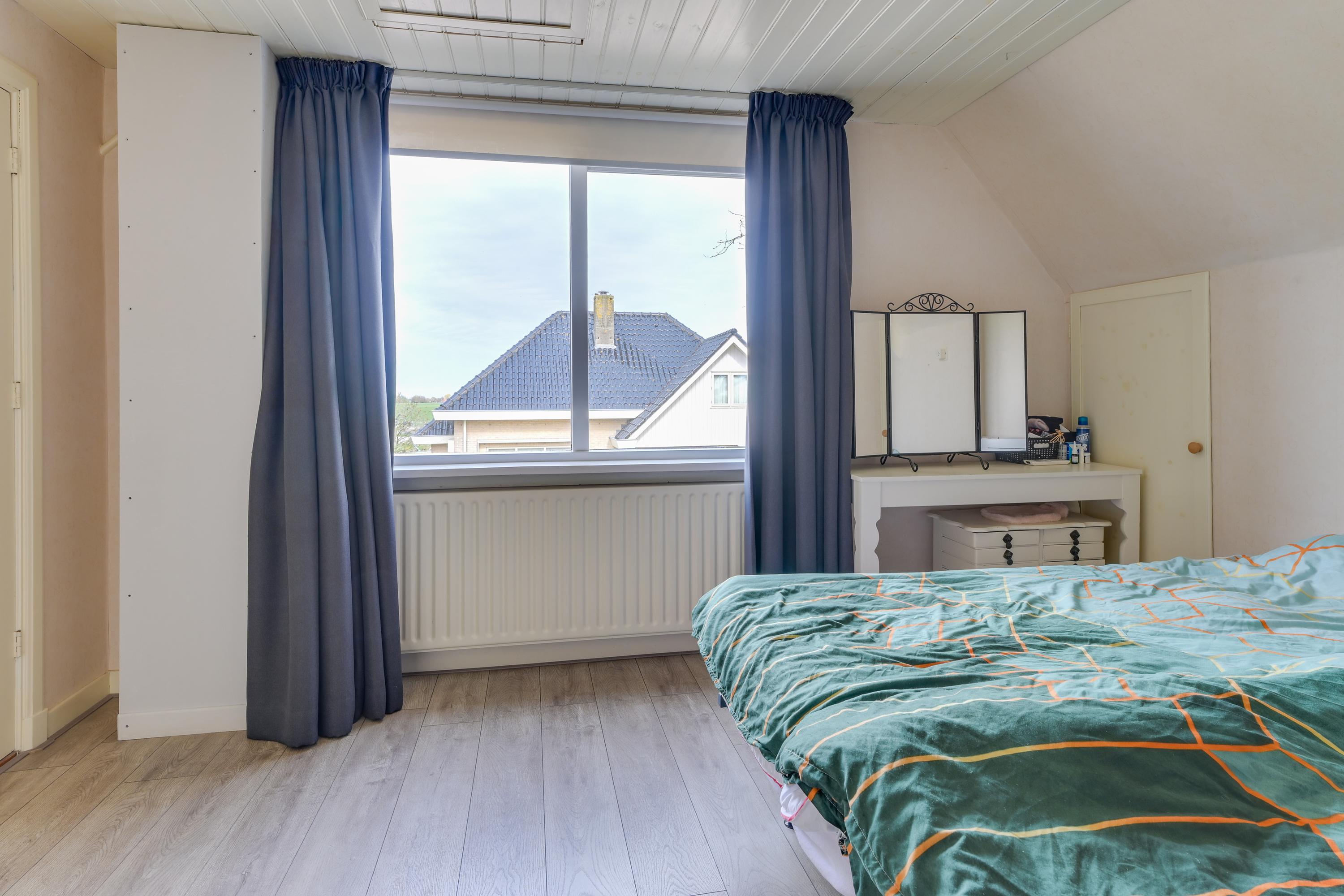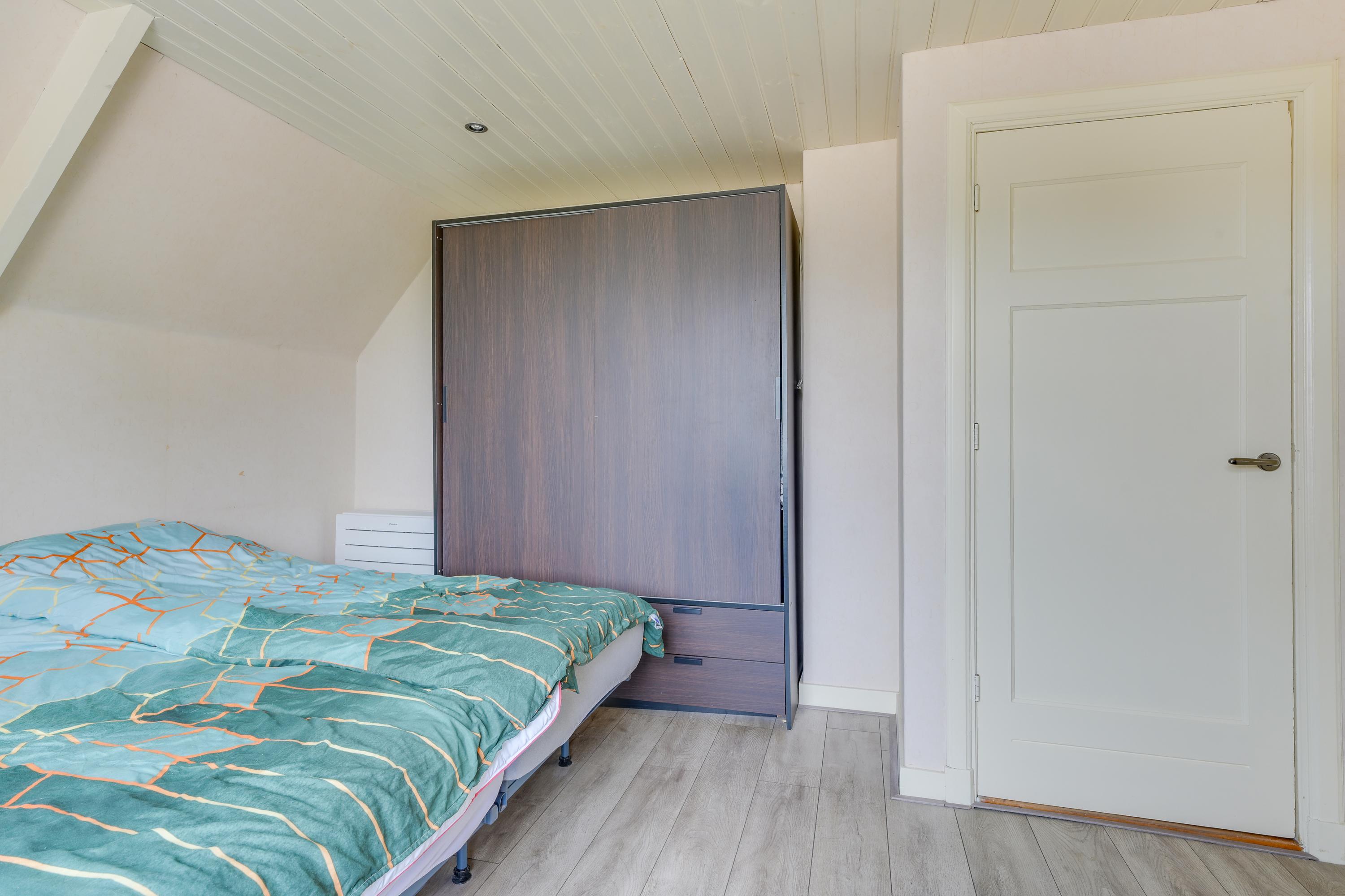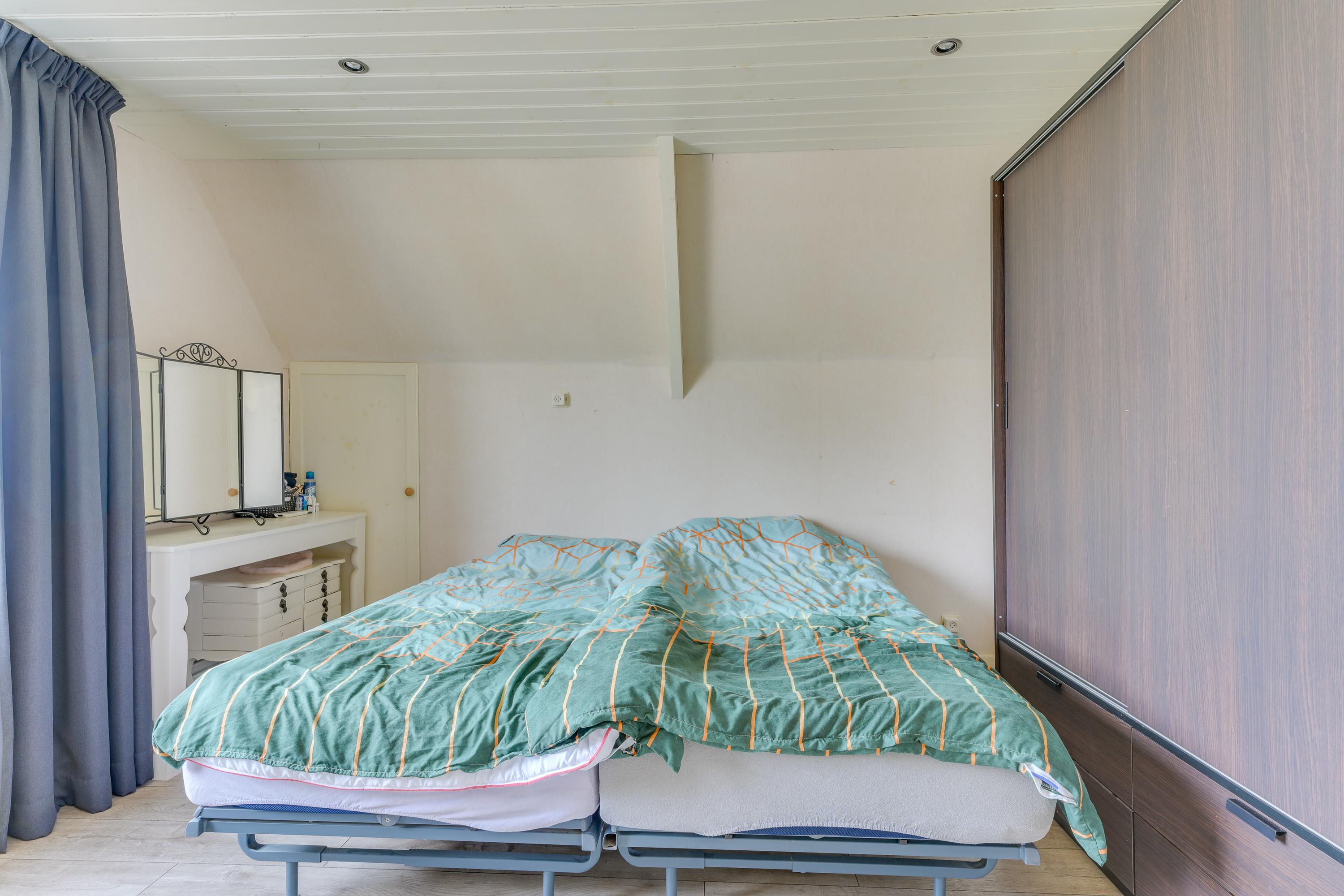 Er zijn twee slaapkamers aanwezig. De slaapkamer aan de achterzijde is ruim en voorzien van een schuifpui naar het balkon (gelegen op het zuiden) met fantastisch uitzicht over de landerijen, een dakraam en een inbouwkast. De tweede slaapkamer is eveneens praktisch in te delen en voorzien van veel bergruimte. De slaapkamer aan de voorzijde beschikt over een airco-unit.
