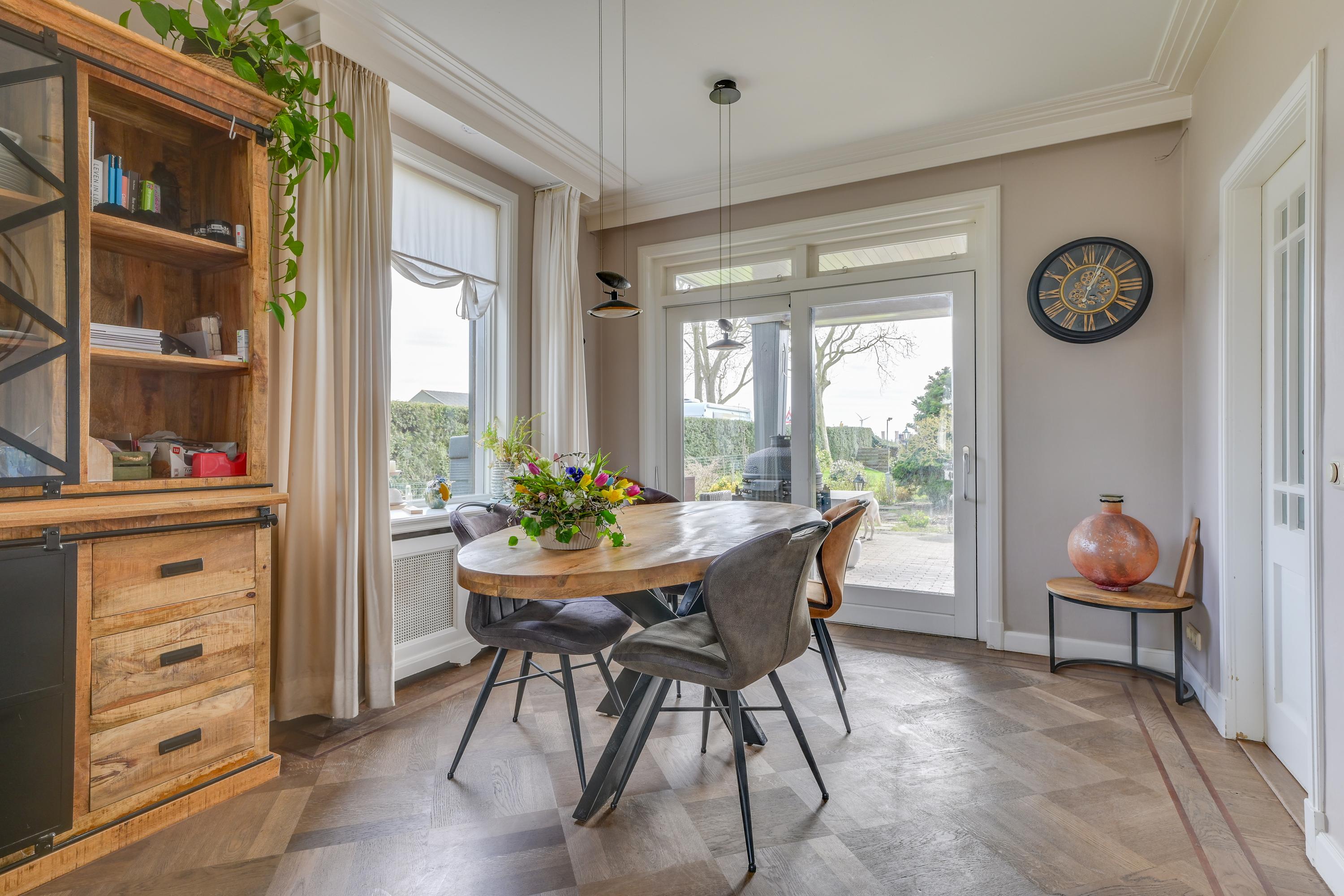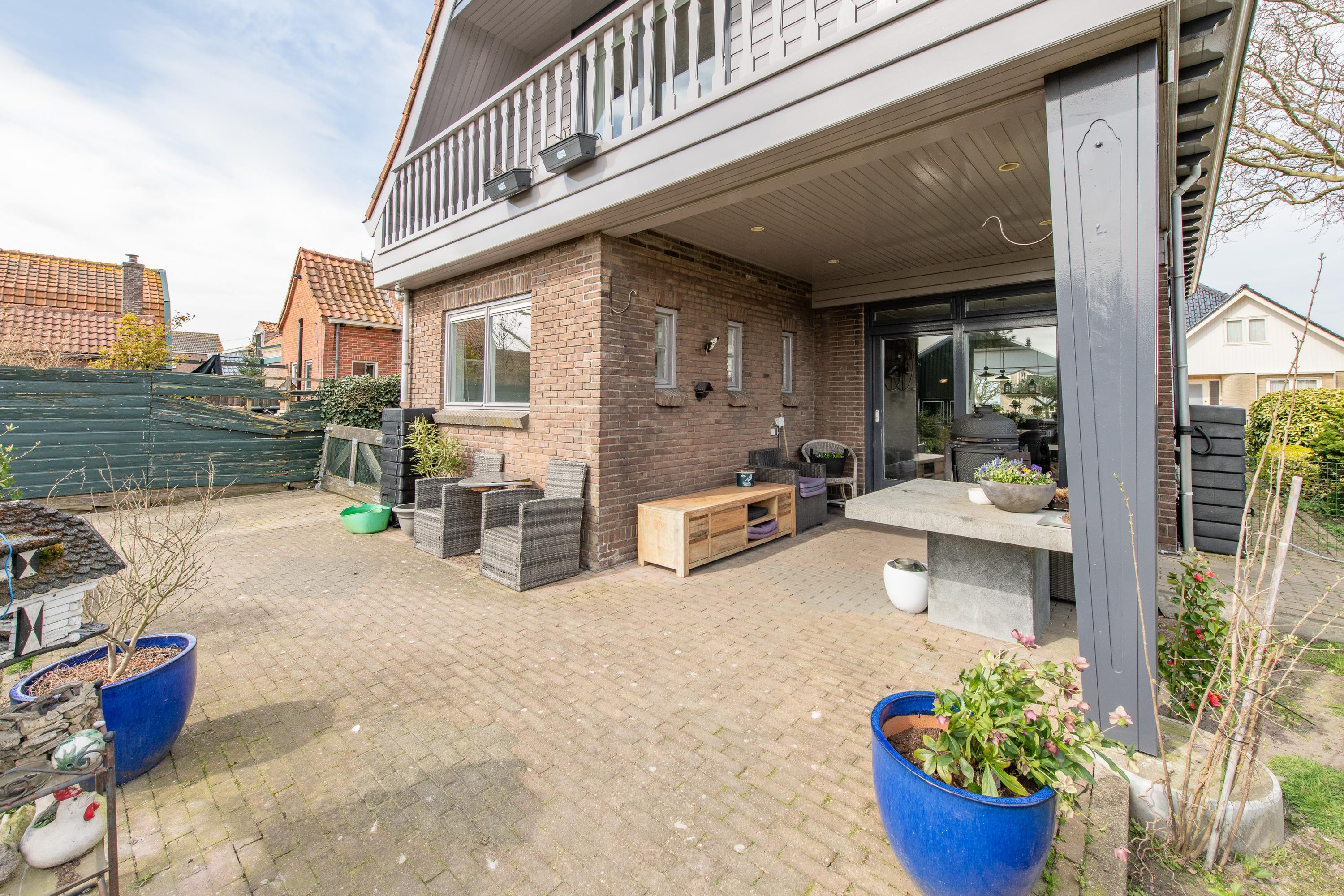 Het perceel is royaal en biedt volop mogelijkheden. De tuin grenst aan een sloot en biedt vrij uitzicht, wat zorgt voor een heerlijk gevoel van rust en ruimte.