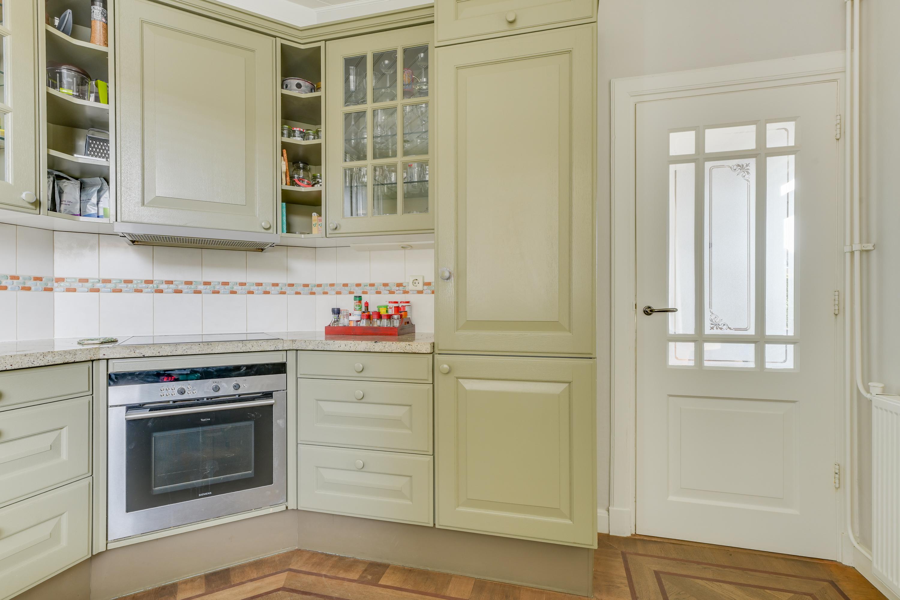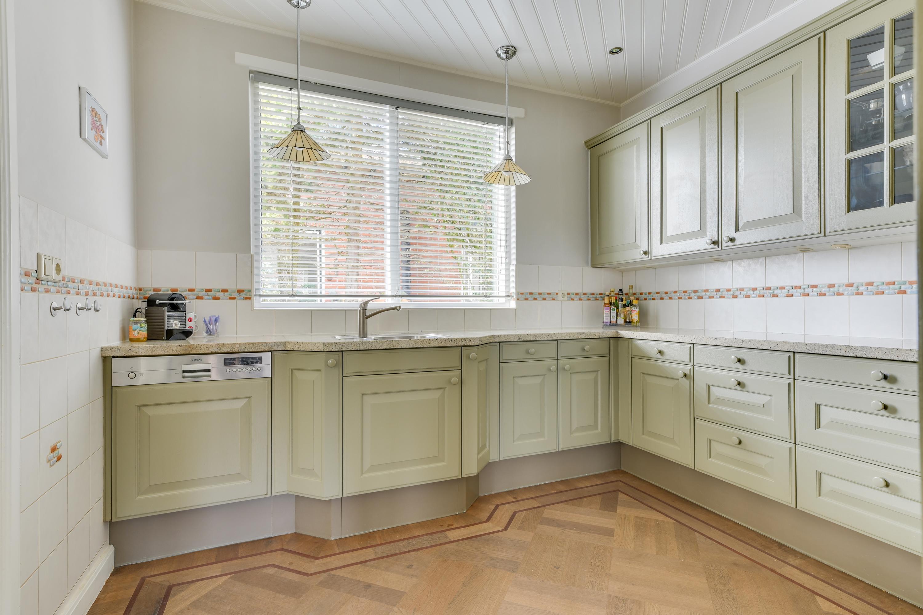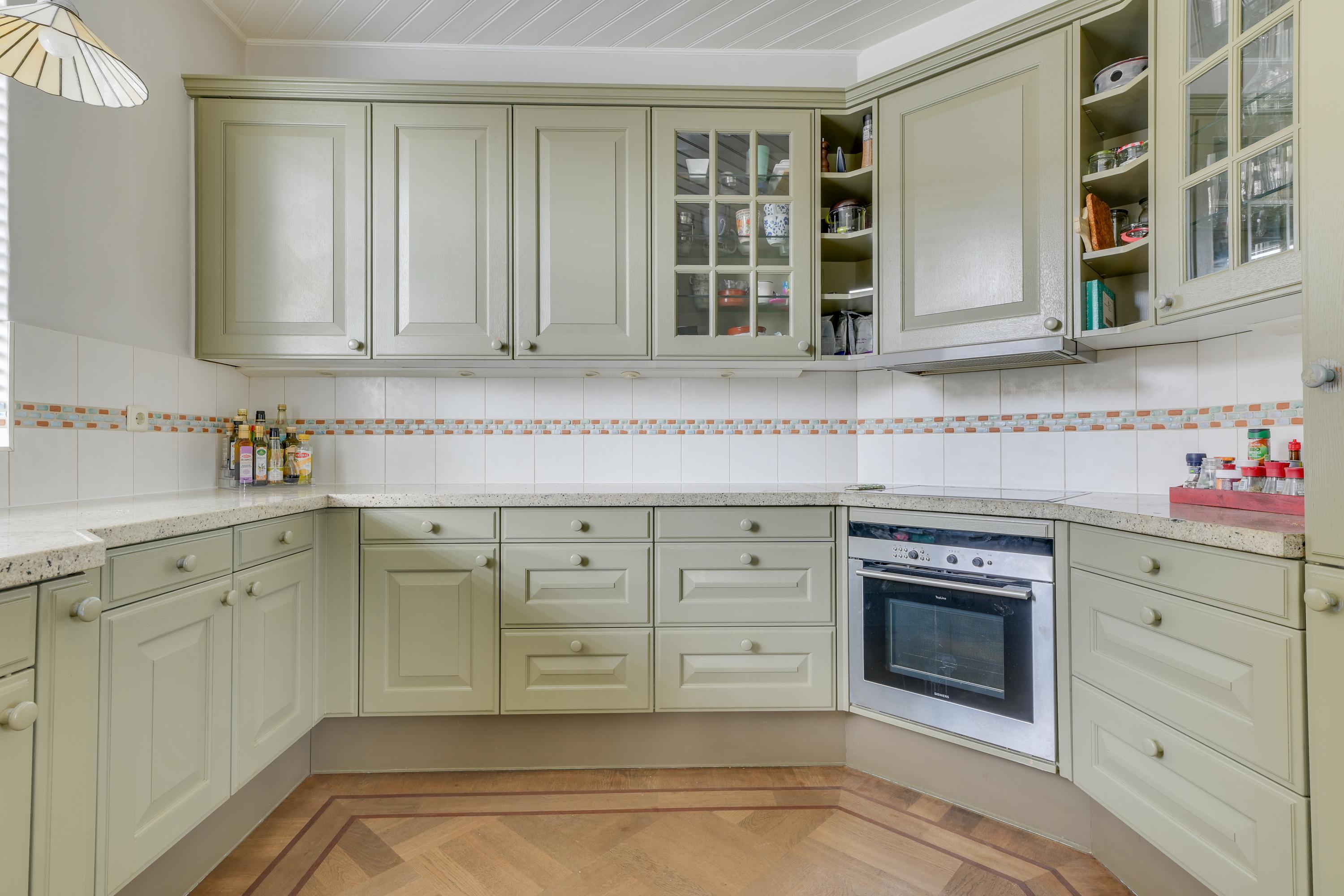 De gesloten keuken bevindt zich aan de achterzijde en is uitgevoerd in een houten opstelling. Deze is functioneel en voorzien van diverse apparatuur, waaronder een vaatwasser, koel-/vriescombinatie, combi-oven en een inductiekookplaat (met aandachtspunt).