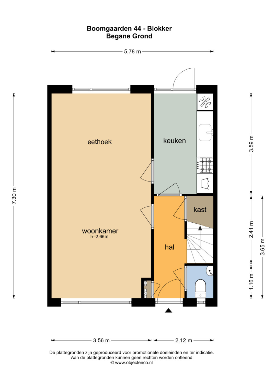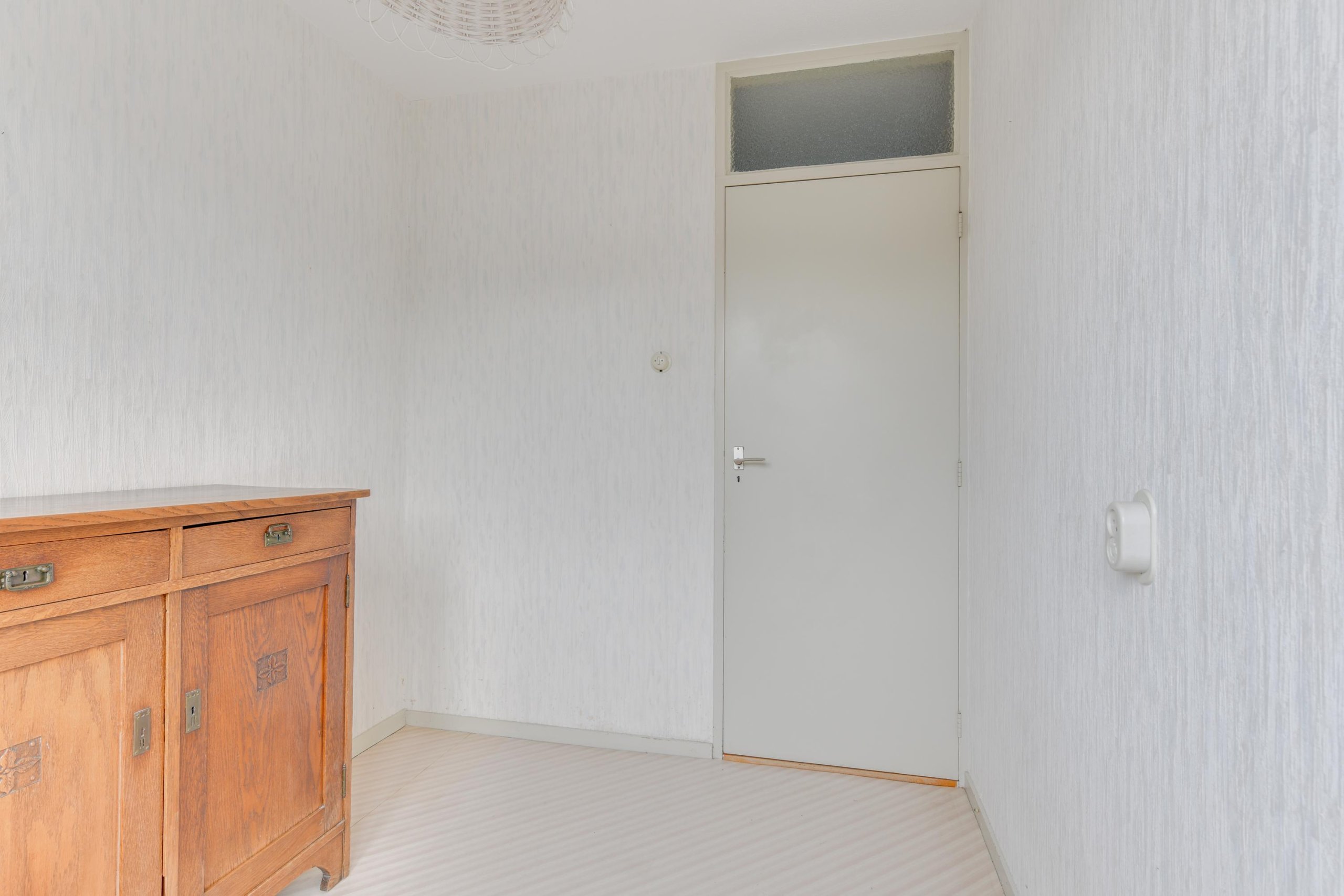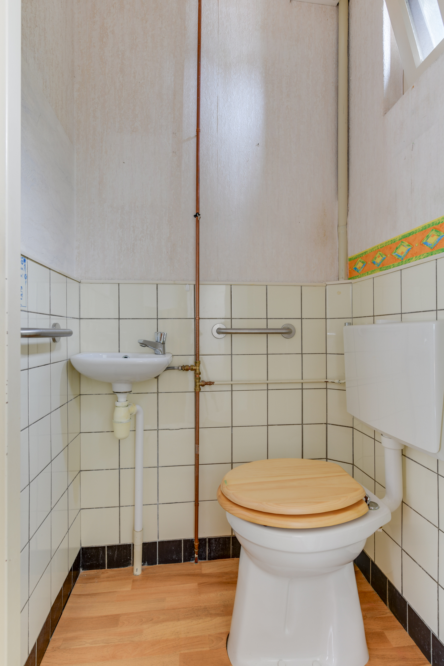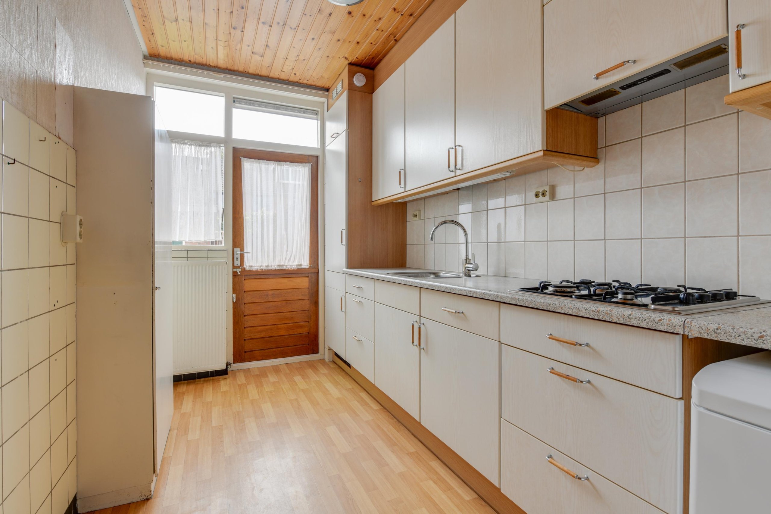 Indeling: Via de voordeur kom je in de hal met de meterkast, trapopgang, trapkast en het toilet. Vervolgens bereik je de heerlijk lichte doorzon woonkamer. Door de grote raampartijen heeft de zon alle ruimte om naar binnen te schijnen. De dichte keuken is voorzien van een eenvoudige inrichting. Bij een eventuele verbouwing van de keuken wordt vaak de muur tussen de woonkamer en de keuken verwijderd waardoor er ruimte ontstaat voor een L-vormige keukenopstelling.