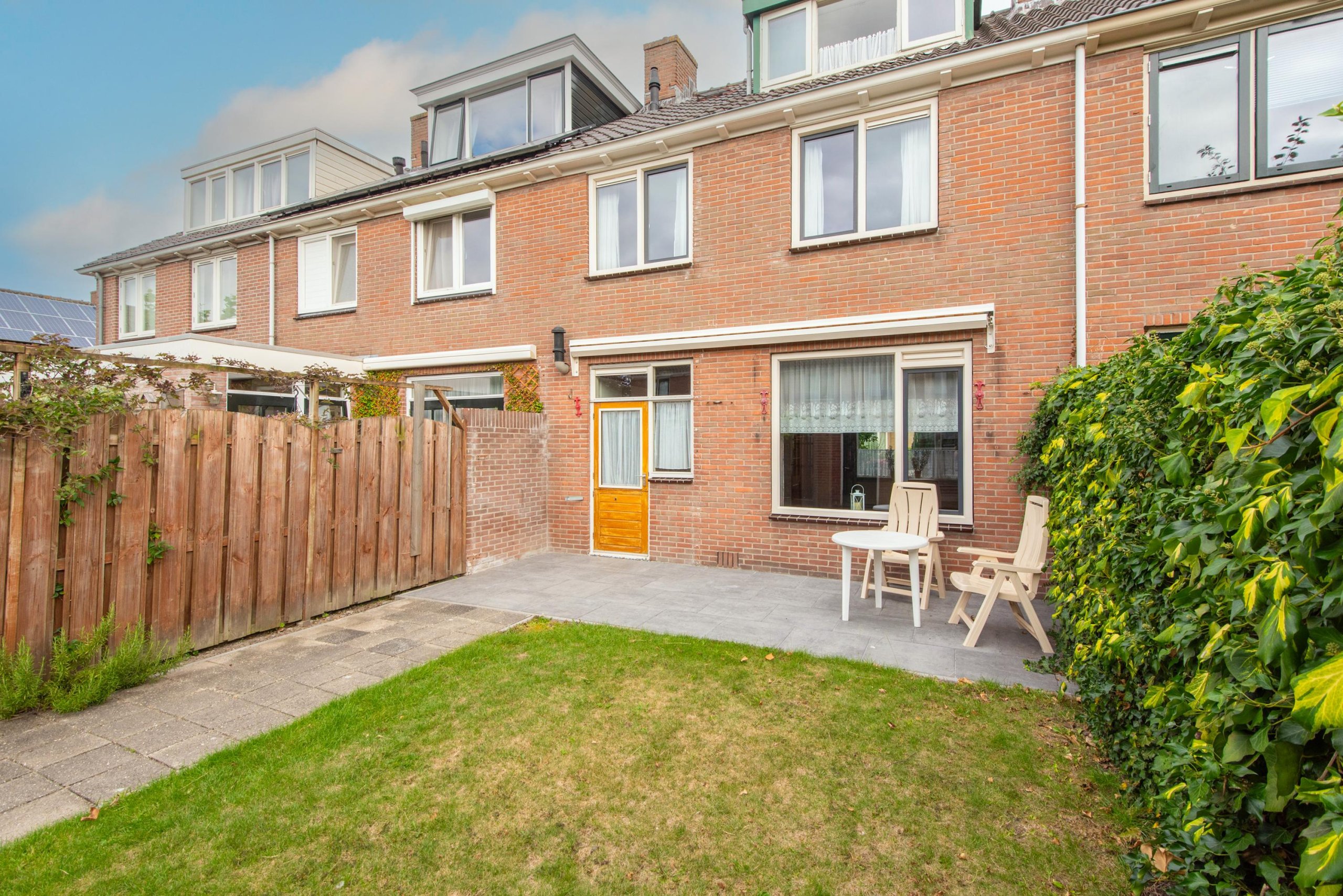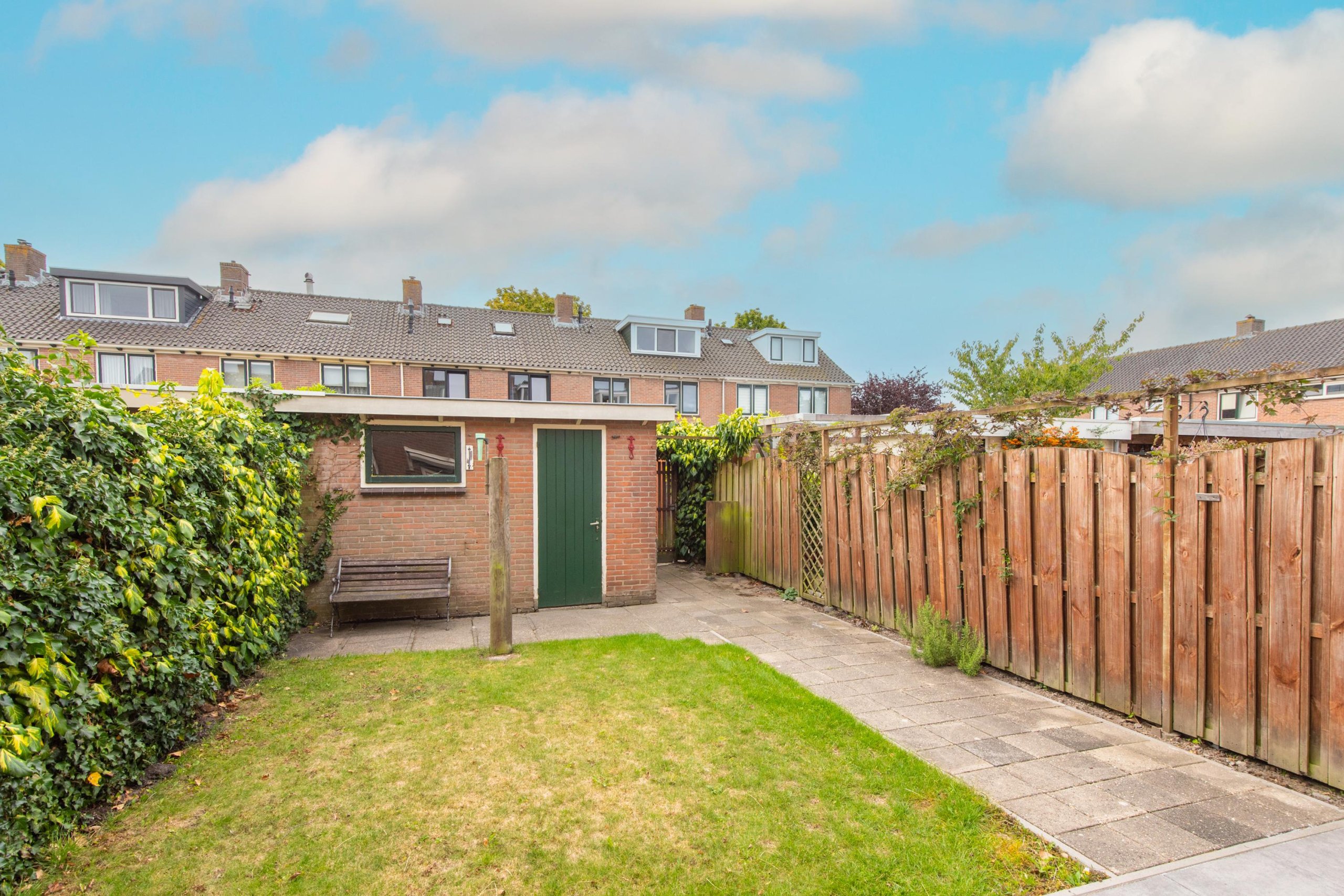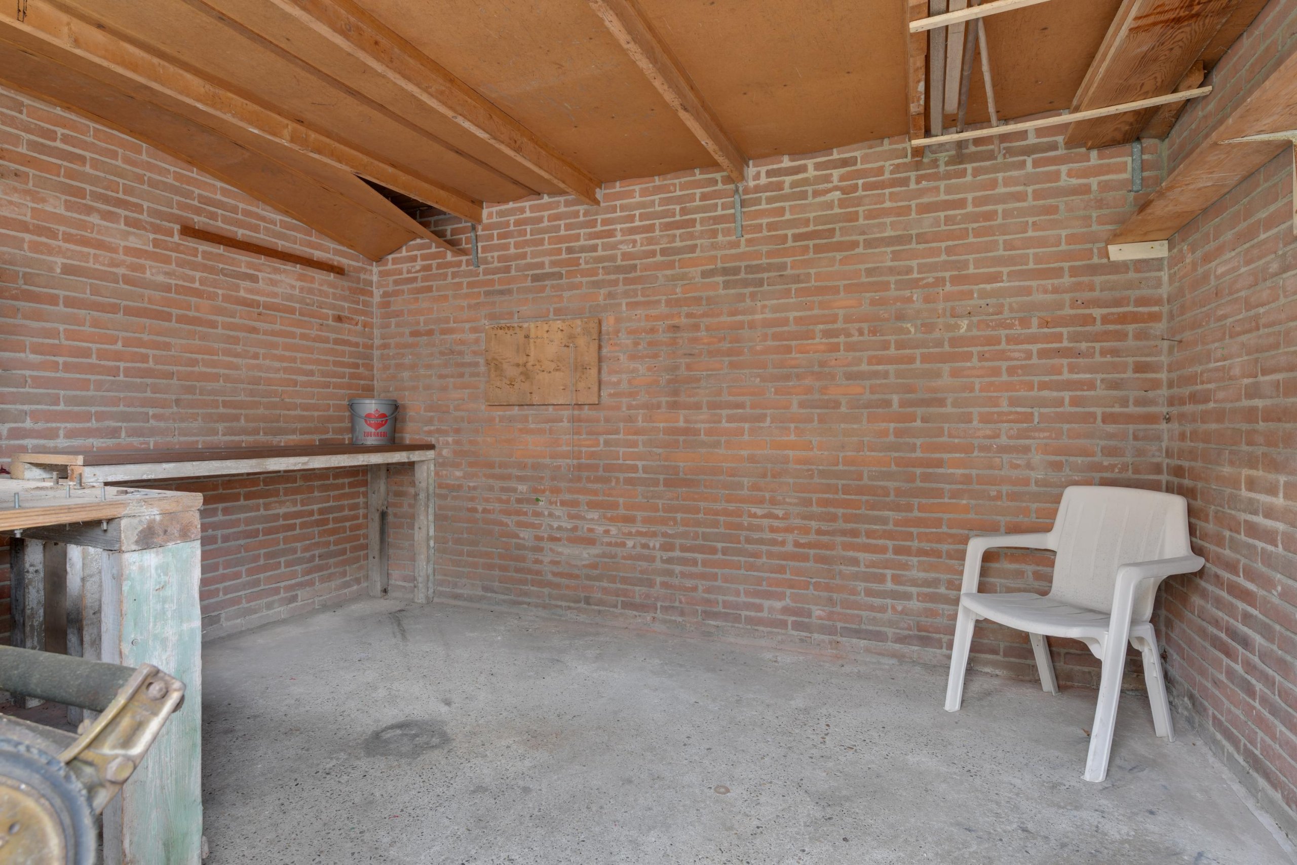 In de zonnige achtertuin op het zuiden is het al vroeg in het jaar aangenaam. Voor de hete dagen is er een nieuwe zonwering aanwezig. Achter in de tuin staat de ruime tuinberging (12m2).