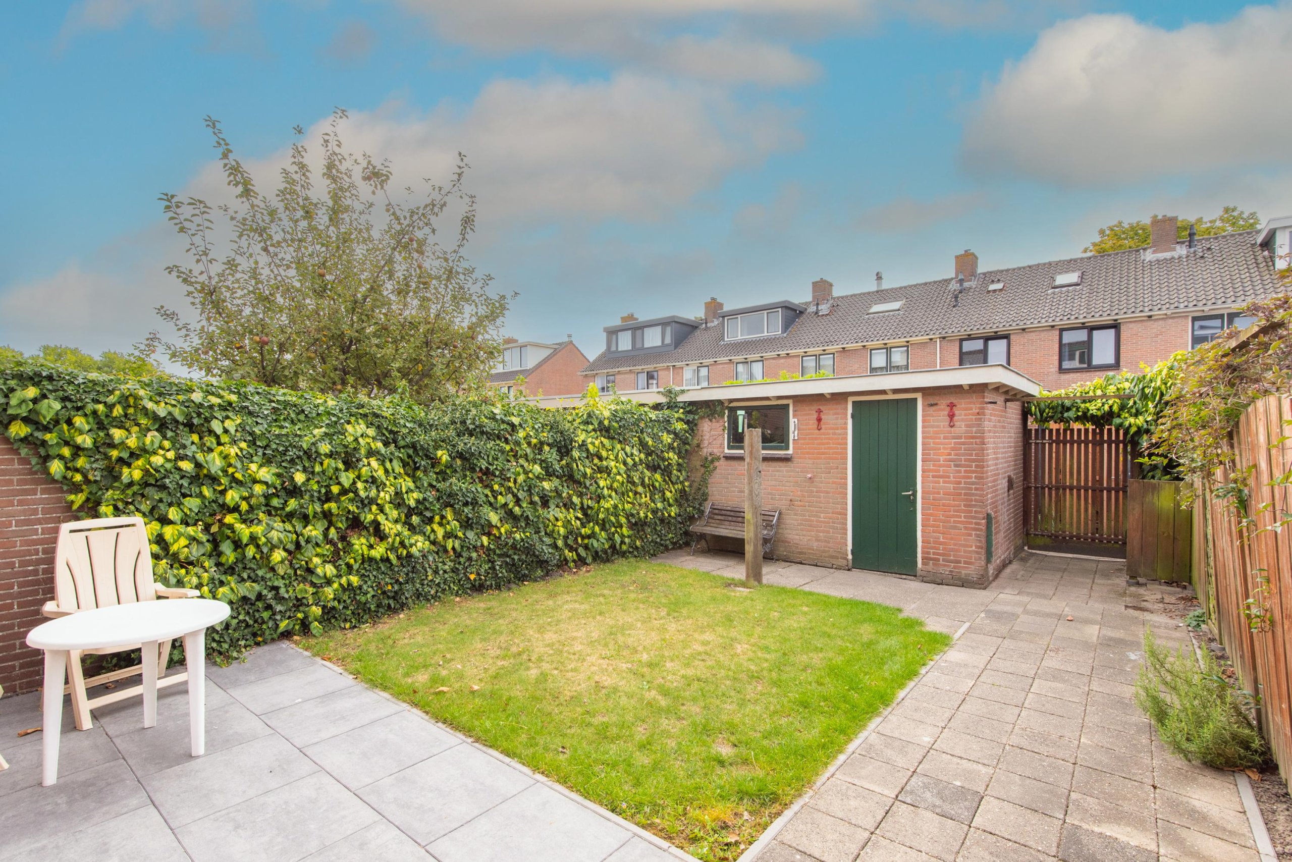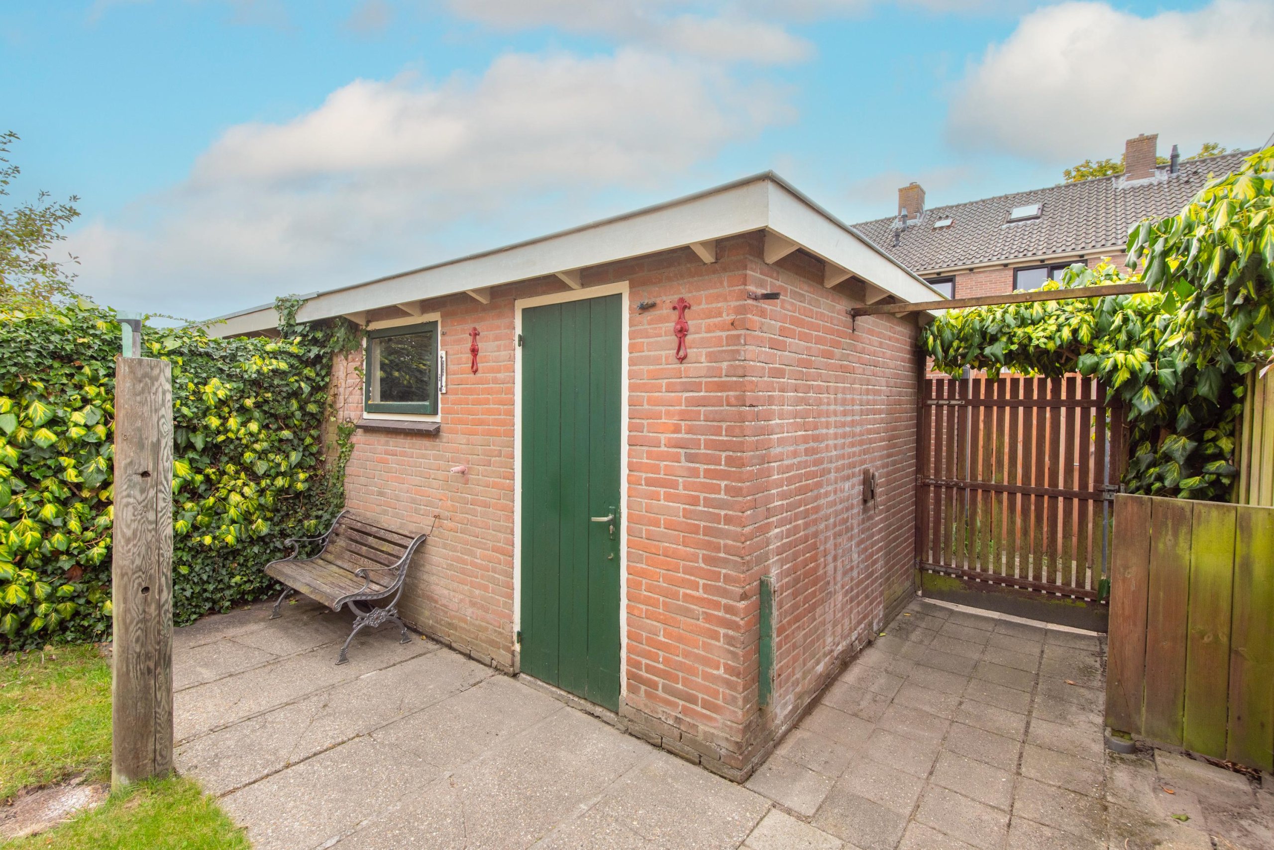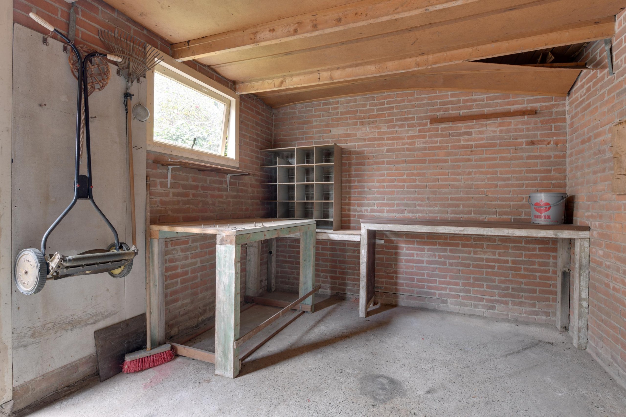 In de zonnige achtertuin op het zuiden is het al vroeg in het jaar aangenaam. Voor de hete dagen is er een nieuwe zonwering aanwezig. Achter in de tuin staat de ruime tuinberging (12m2).