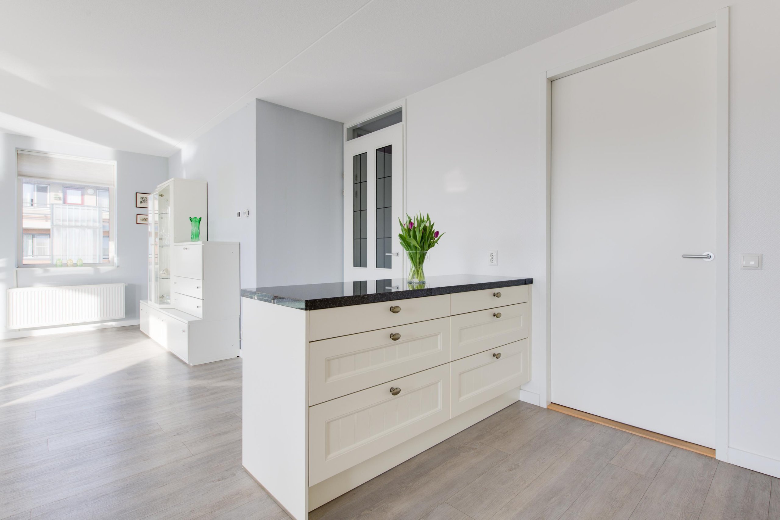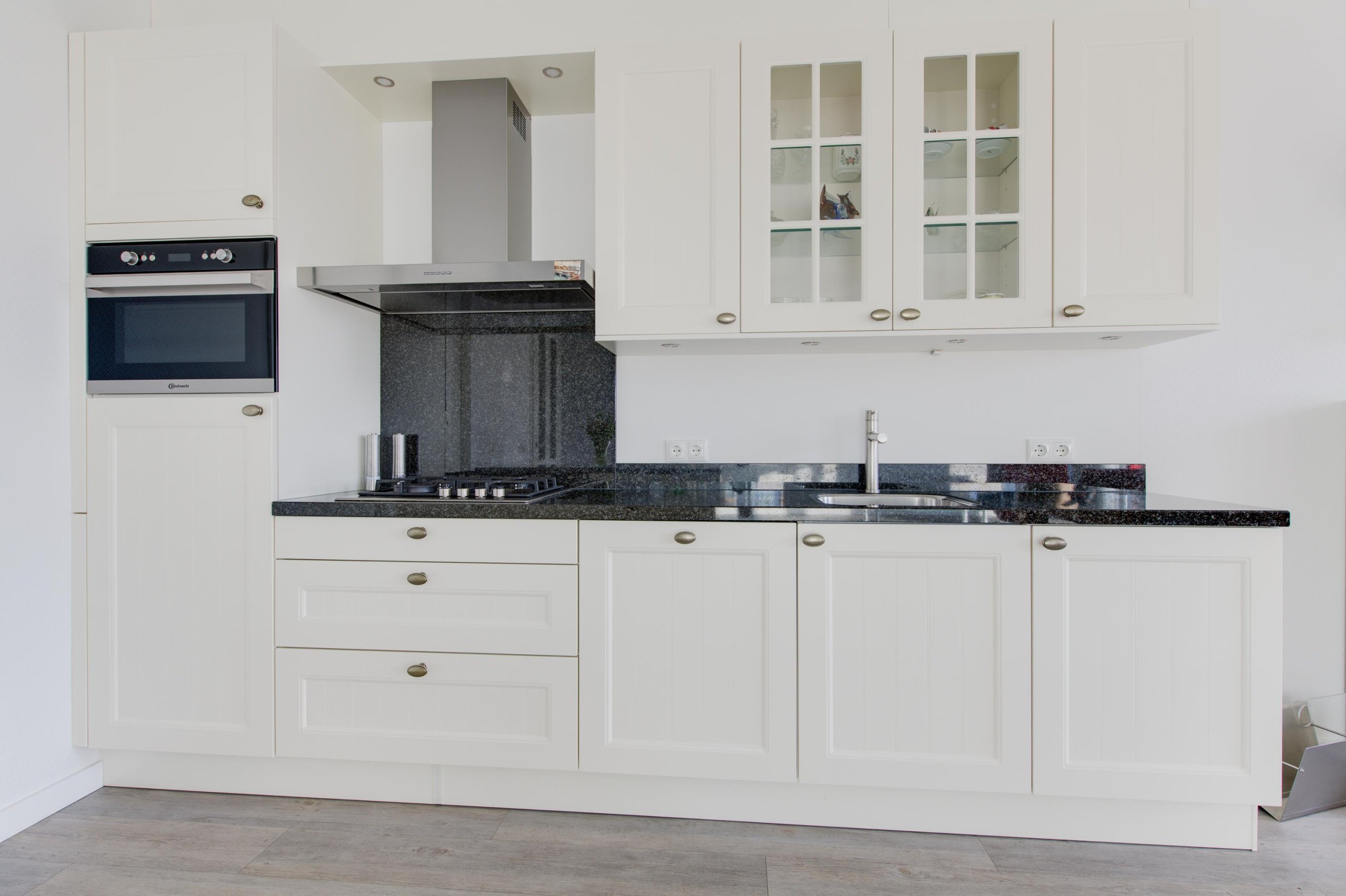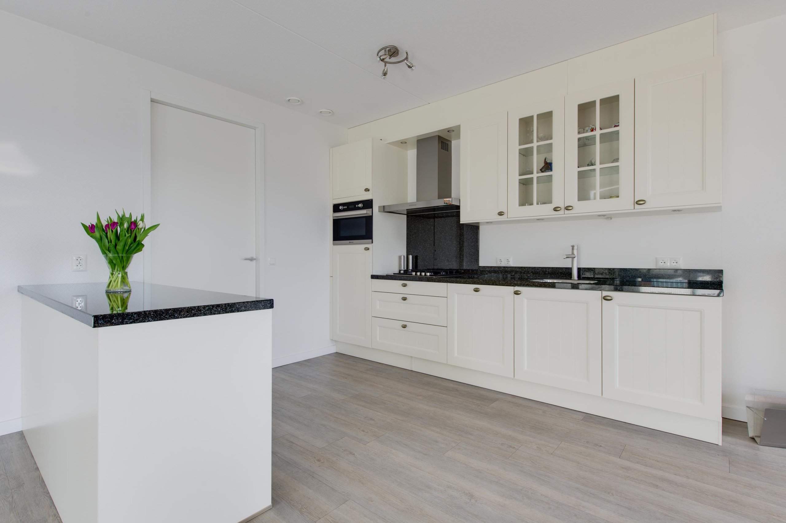 De lichte woonkamer vormt het hart van het appartement en profiteert van de gunstige ligging. De open keuken is voorzien van diverse inbouwapparatuur, waaronder een combi-oven/magnetron, vaatwasser en een 4-pits gasfornuis. Het geheel is afgewerkt met een stijlvolle PVC-vloer.