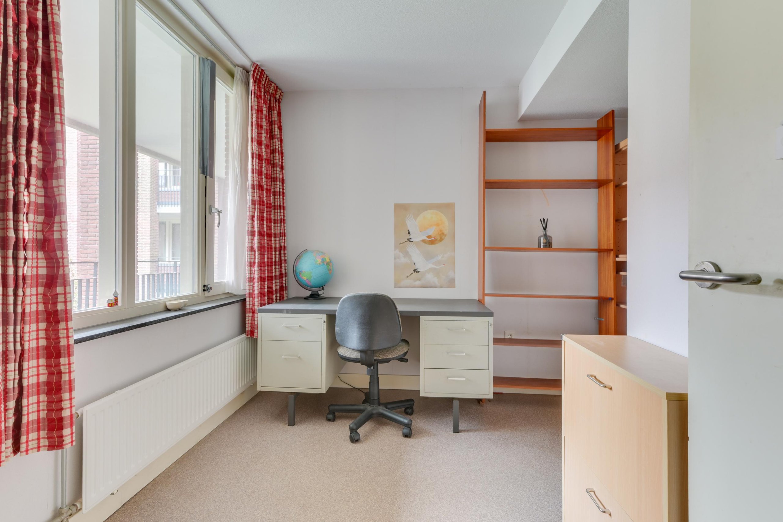 De woonkamer is licht en prettig van formaat, met grote raampartijen en een vrij uitzicht richting het groen en de omgeving. Vanuit de woonkamer is het balkon bereikbaar, gelegen op het westen.