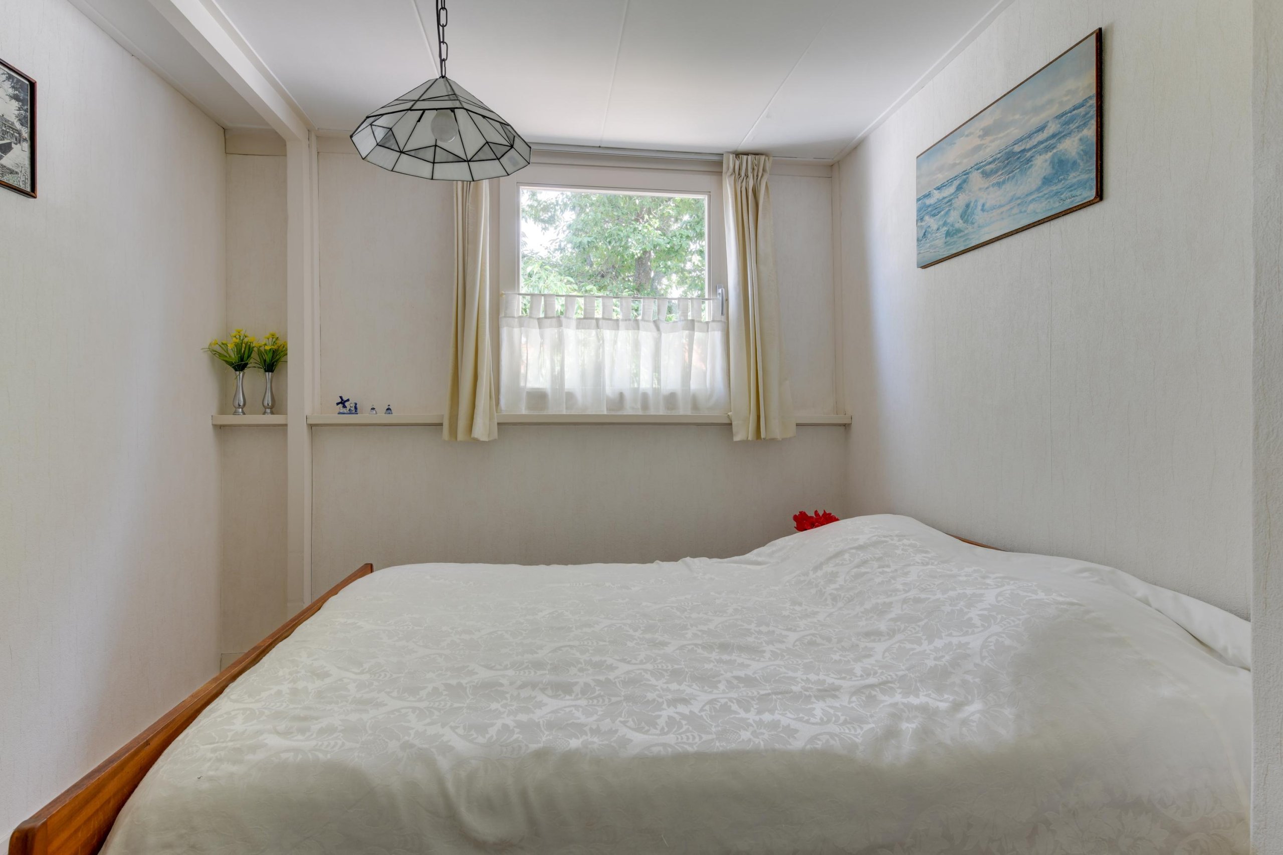 Begane grond: Via de entree kom je binnen, waar je direct toegang hebt tot de vaste trap naar boven. De lichte woon- en eetkamer biedt genoeg ruimte om een gezellige leefruimte te creëren. De dichte keuken grenst aan de bijkeuken, waar je ook een douche en toilet vindt. Vanuit de bijkeuken stap je de achtertuin in, die heerlijk op het zuiden ligt.
