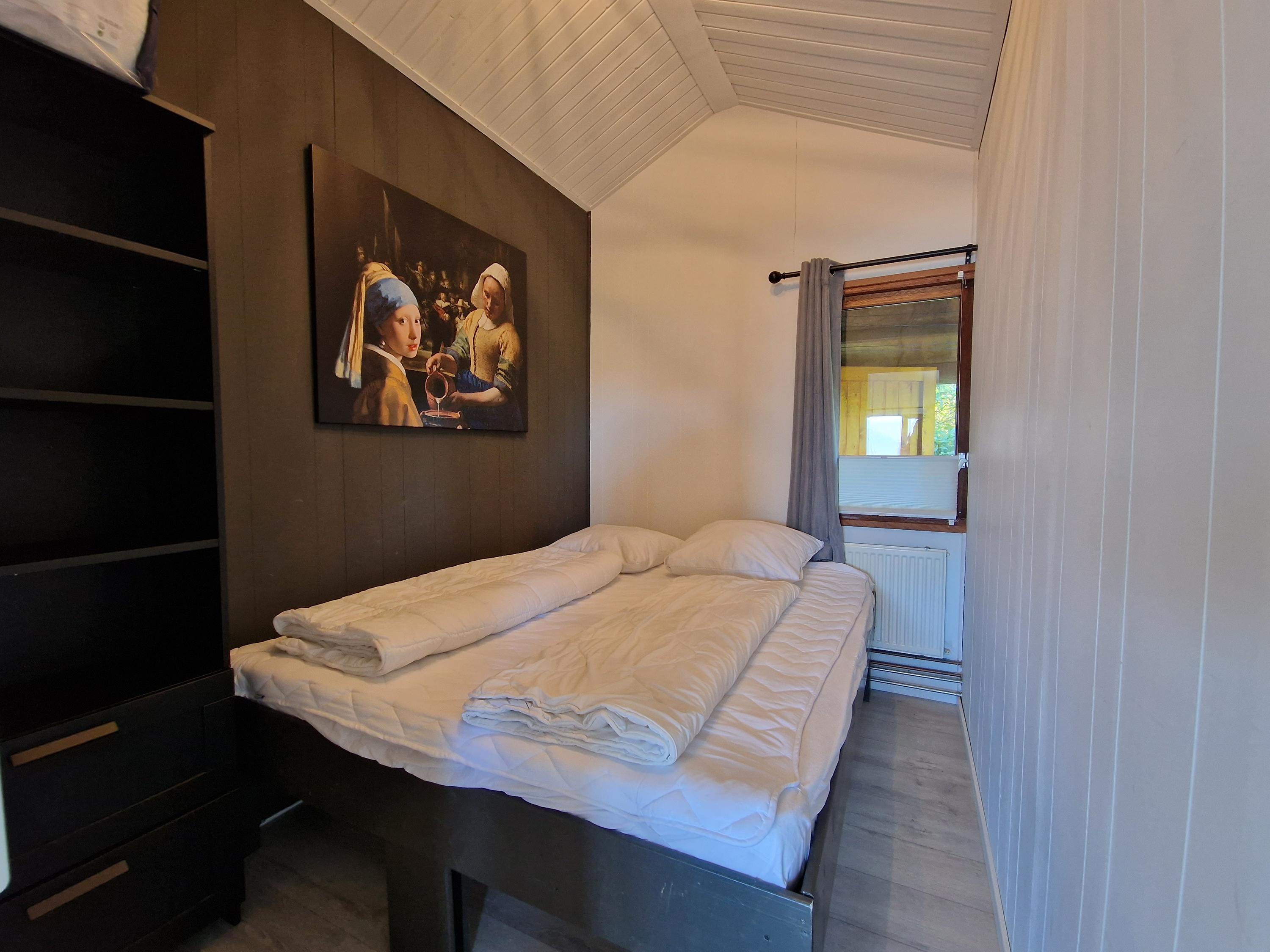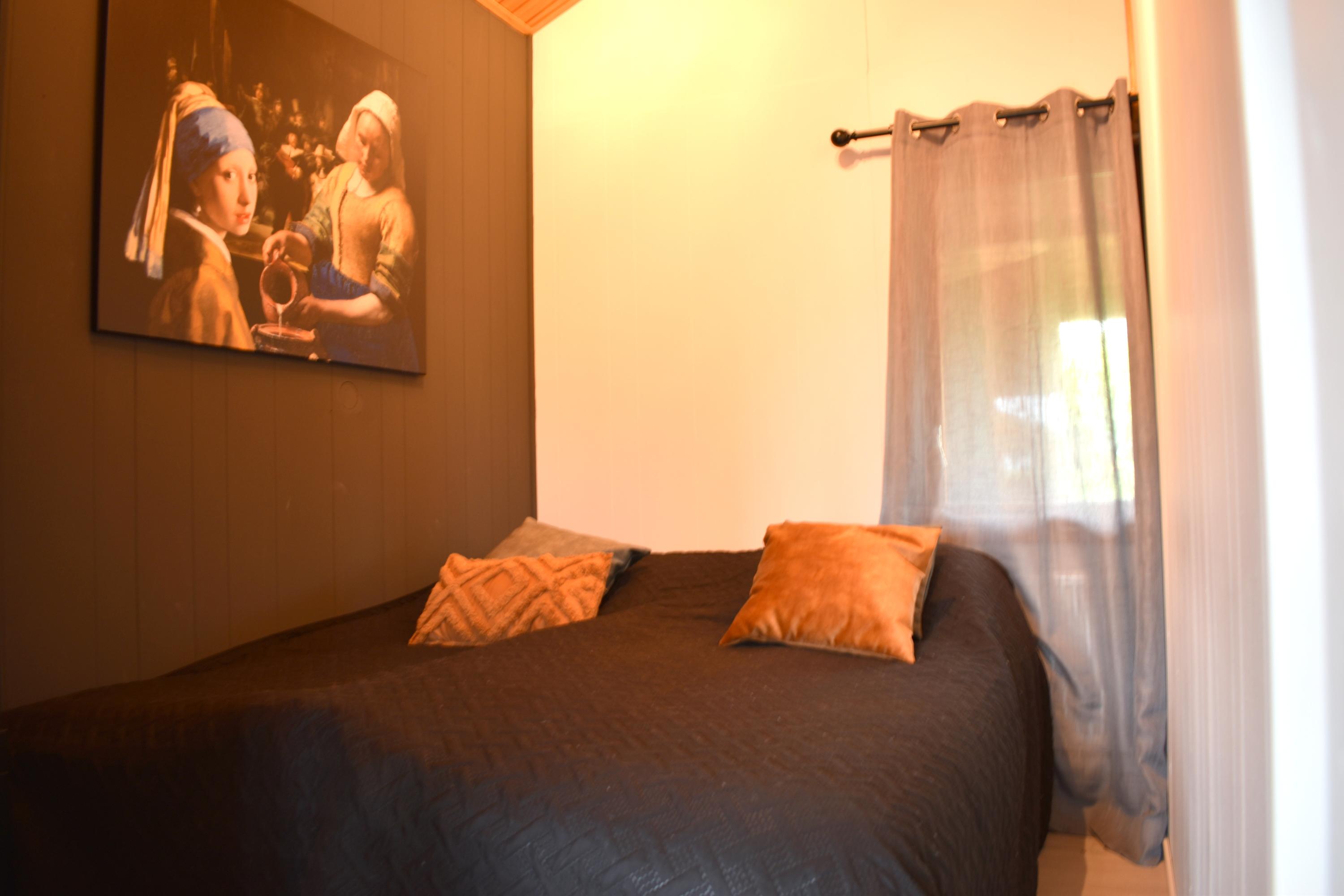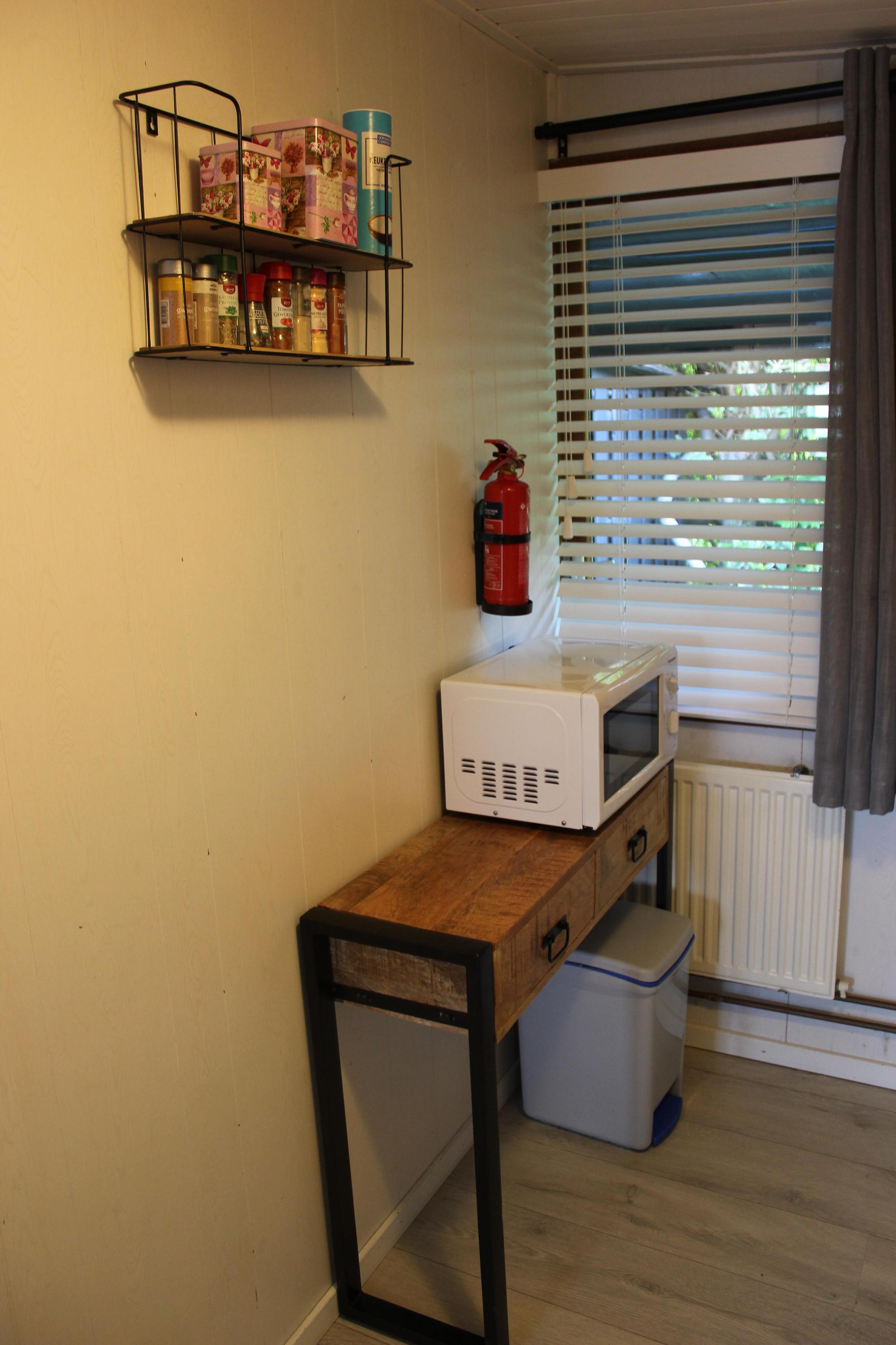 Via de entree kom je binnen in de bungalow met toegang tot de woonkamer. Vanuit de hal bereik je de badkamer, die is voorzien van een douche, wastafel en toilet. Daarnaast heb je toegang tot een slaapkamer en de keuken.