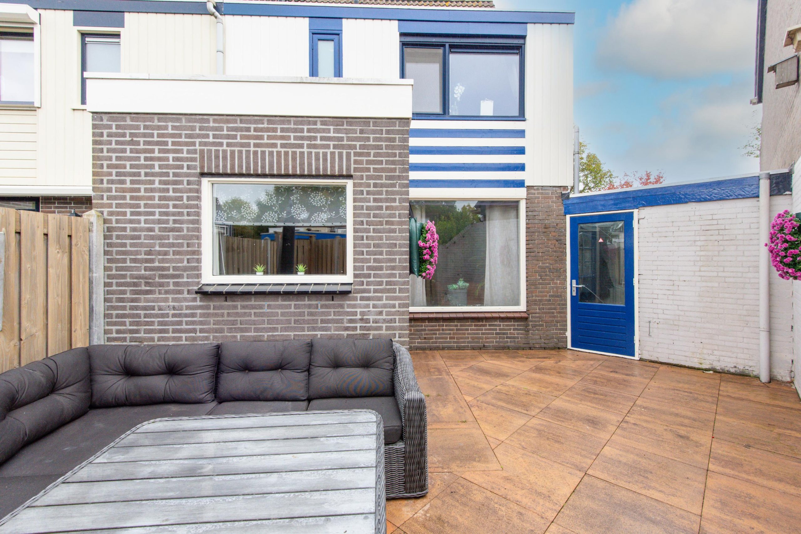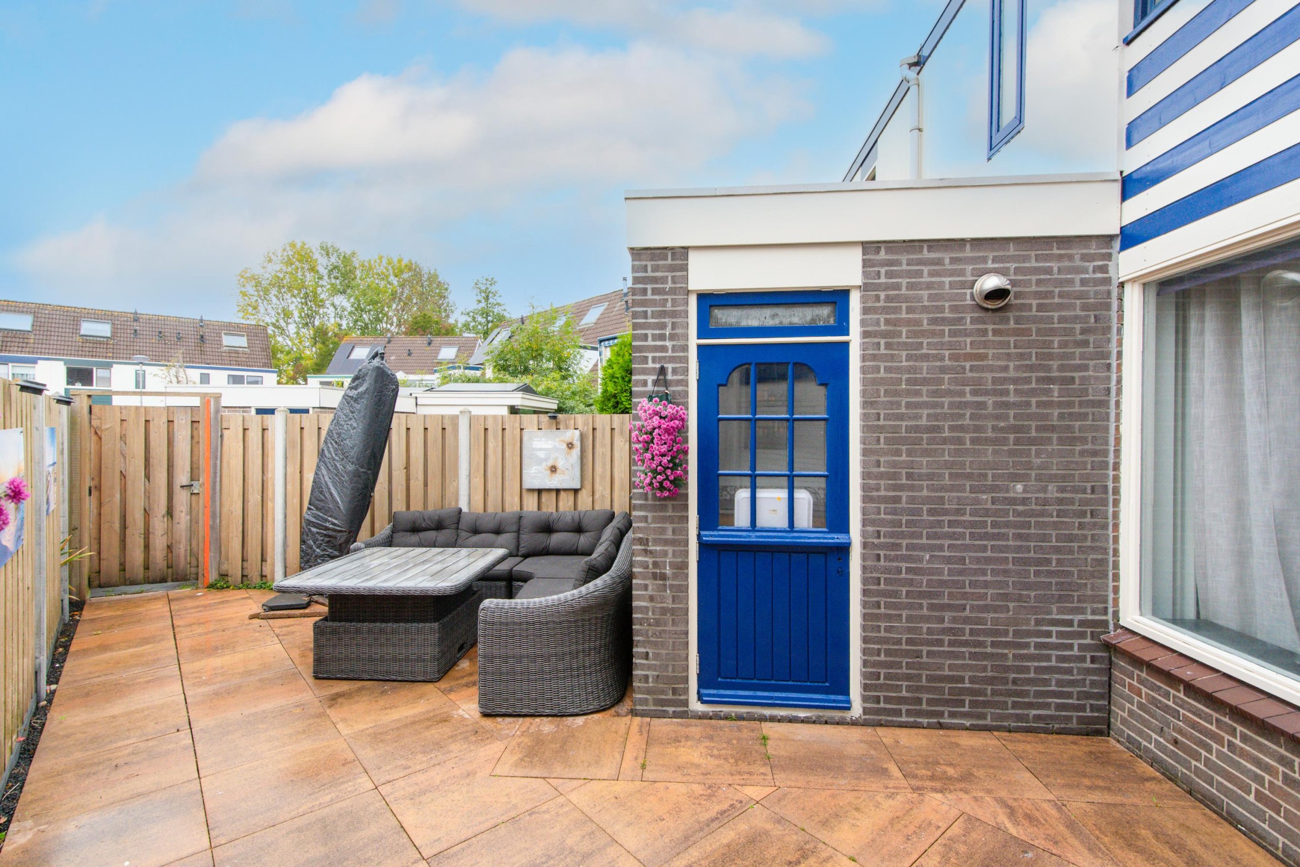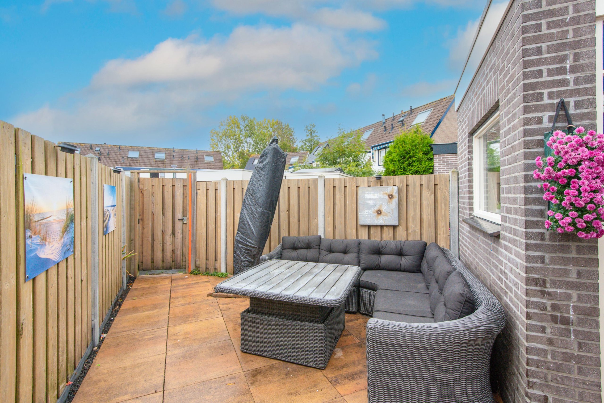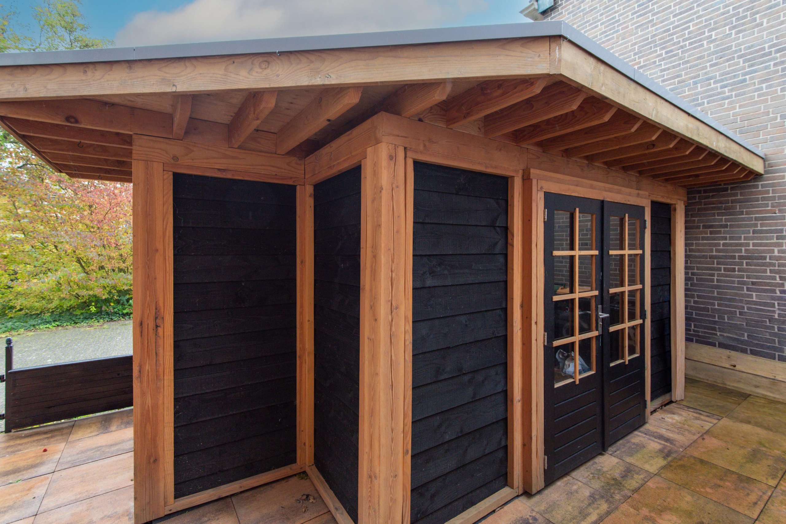 De achtertuin is gelegen op het westen en biedt volop zon. Aan de voorzijde beschikt de woning over een royale houten berging (2021) met elektra.