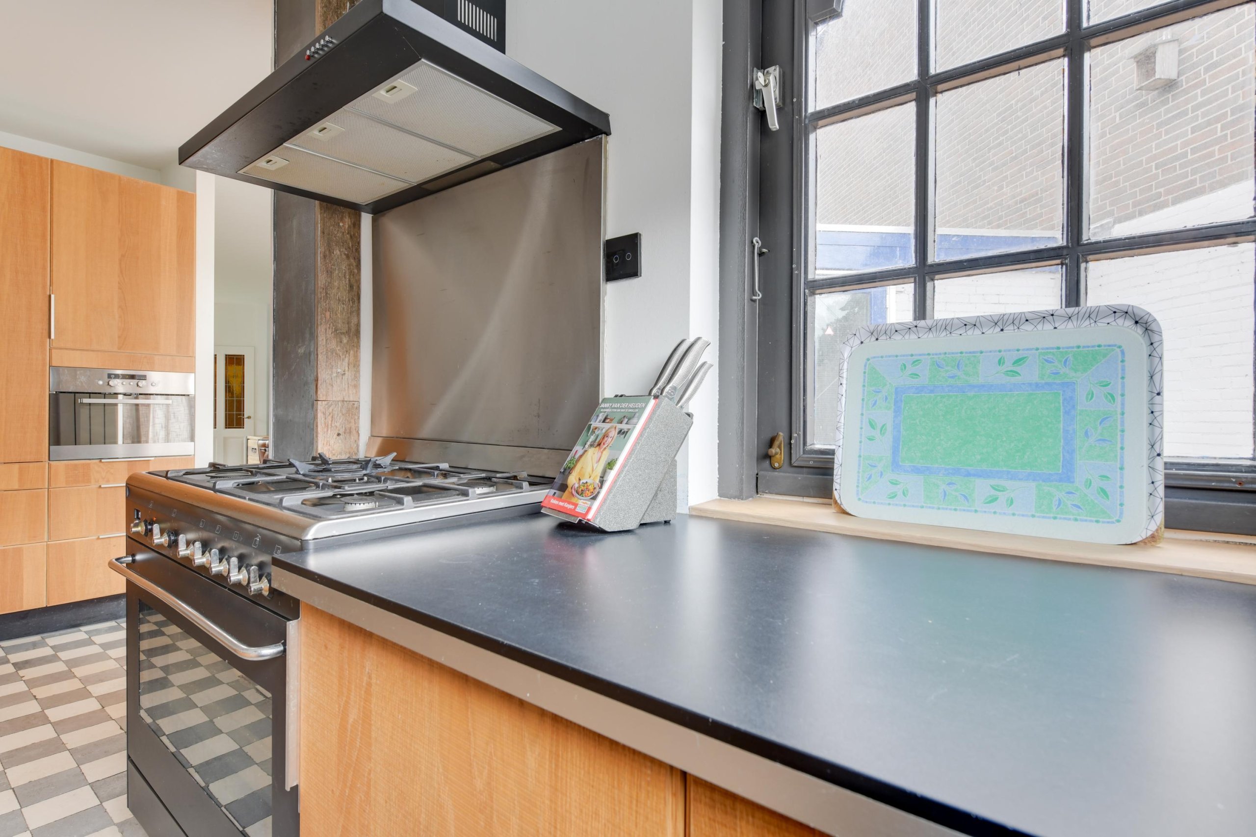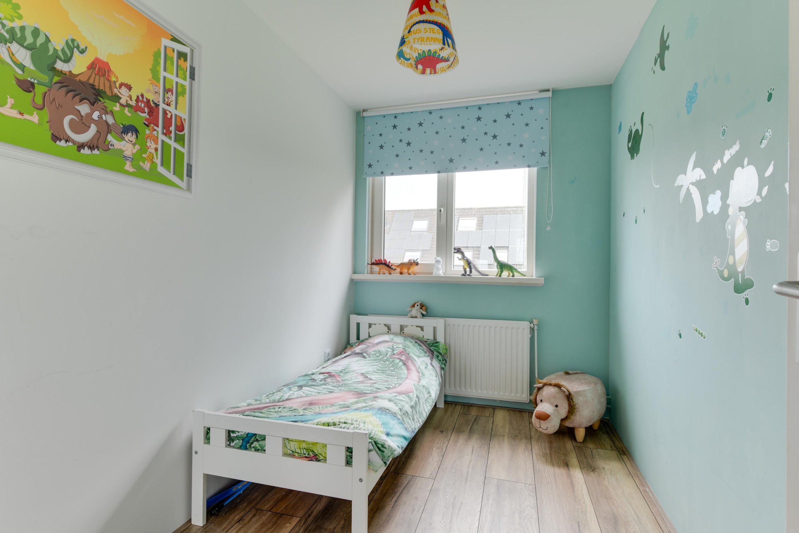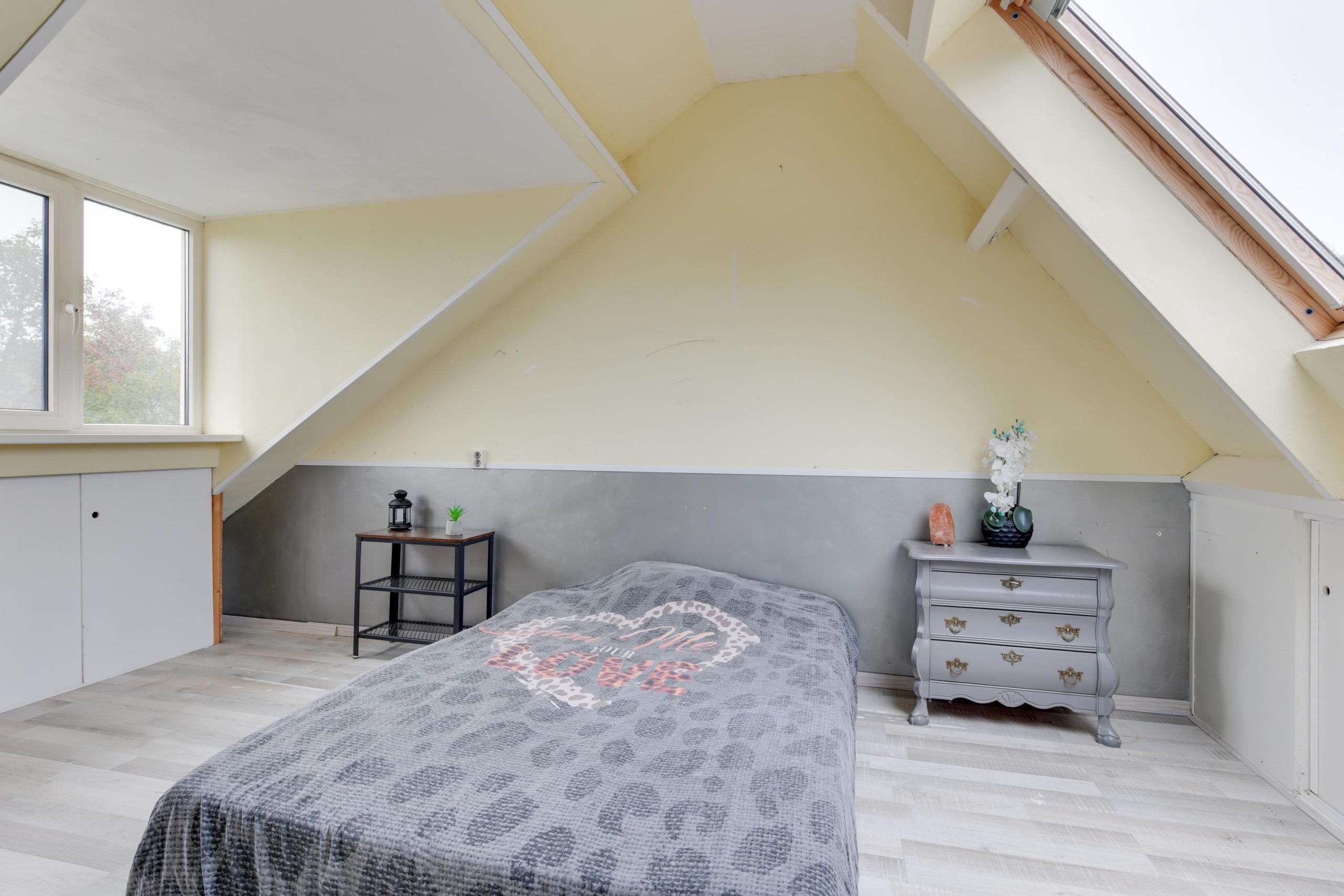 Vaste trap naar de voorzolder met cv-opstelling en aansluiting voor de wasmachine. Hier bevindt zich ook een ruime vierde slaapkamer met dakkapel aan de voorzijde en een groot dakraam aan de achterzijde.