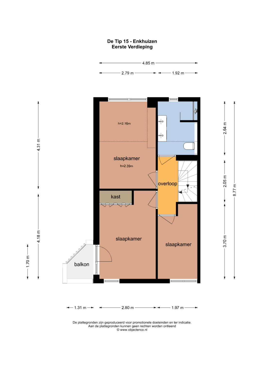 Overloop met toegang tot drie slaapkamers en de badkamer. De grootste slaapkamer heeft vaste kasten en een deur naar het balkon. Alle slaapkamers zijn voorzien van laminaatvloeren (2020). De badkamer (2017) is modern en compleet uitgevoerd met inloopdouche, dubbele wastafel met meubel, toilet, designradiator, vloerverwarming en een groot raam.