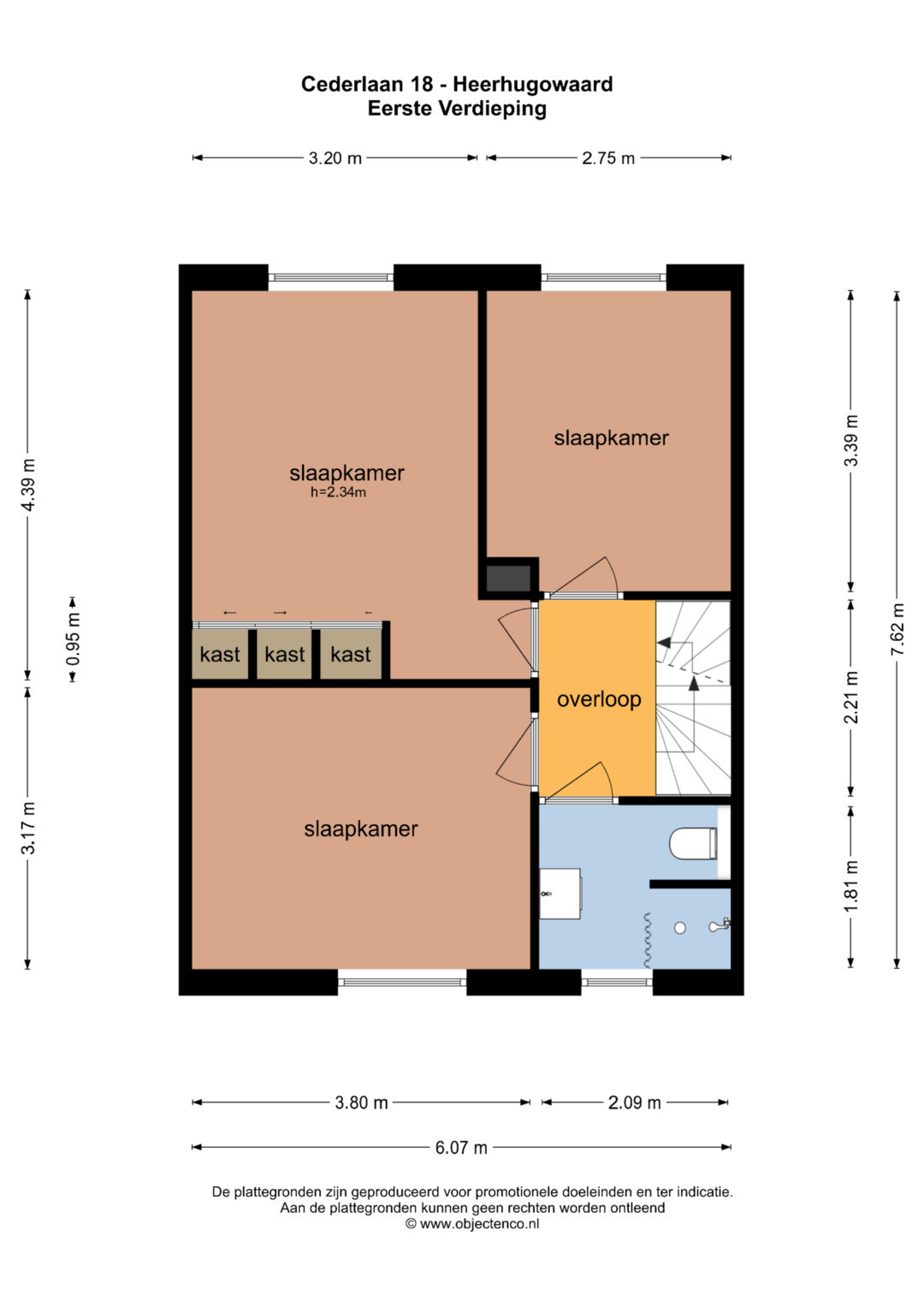 Eerste verdieping: De overloop geeft toegang tot drie ruime slaapkamers. De badkamer is compleet uitgevoerd met een tweede toilet met douche en wastafel praktisch en comfortabel voor het hele gezin.