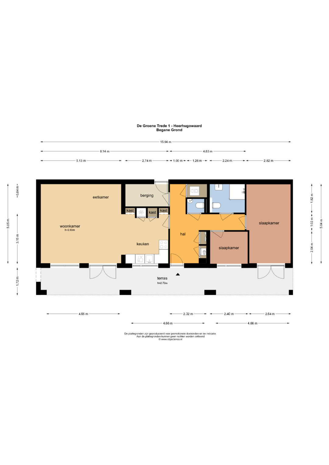 Bij binnenkomst kom je in de entree met hal/gang, waar zich de meterkast en een handige bergkast bevinden. Vanuit deze hal heb je toegang tot twee ruime slaapkamers, een separate toiletruimte en de badkamer met een comfortabele inloopdouche en een wastafel. Ook vind je hier een praktische bergruimte met witgoedaansluiting én een inpandige berging. Vanuit de hal loop je door naar de lichte, ruime woonkamer met een luxe open keuken. De dubbele openslaande deuren verbinden de leefruimte mooi met de voortuin van circa 56 m², gelegen op het zuidwesten, een heerlijke plek om van de middag- en avondzon te genieten!