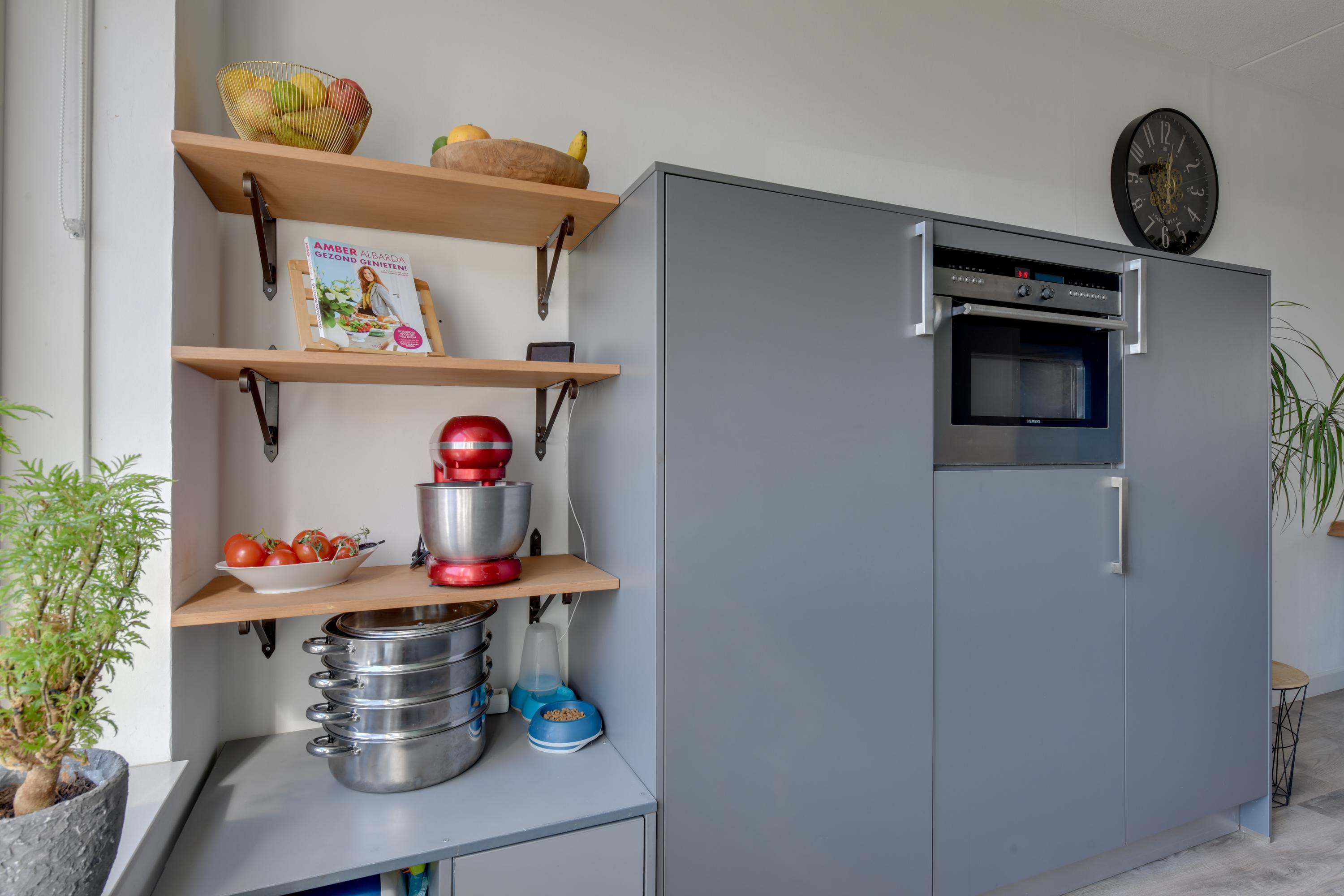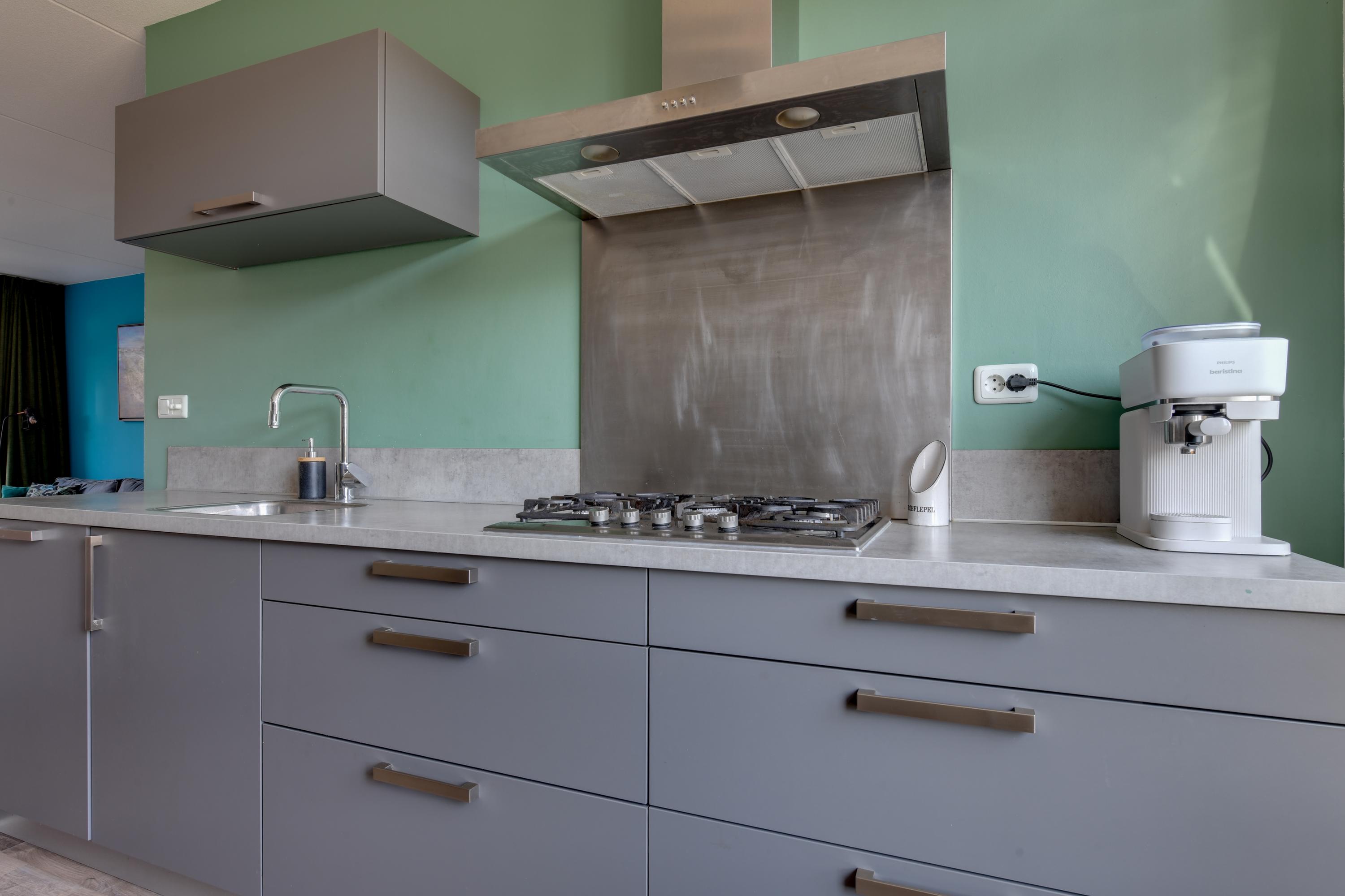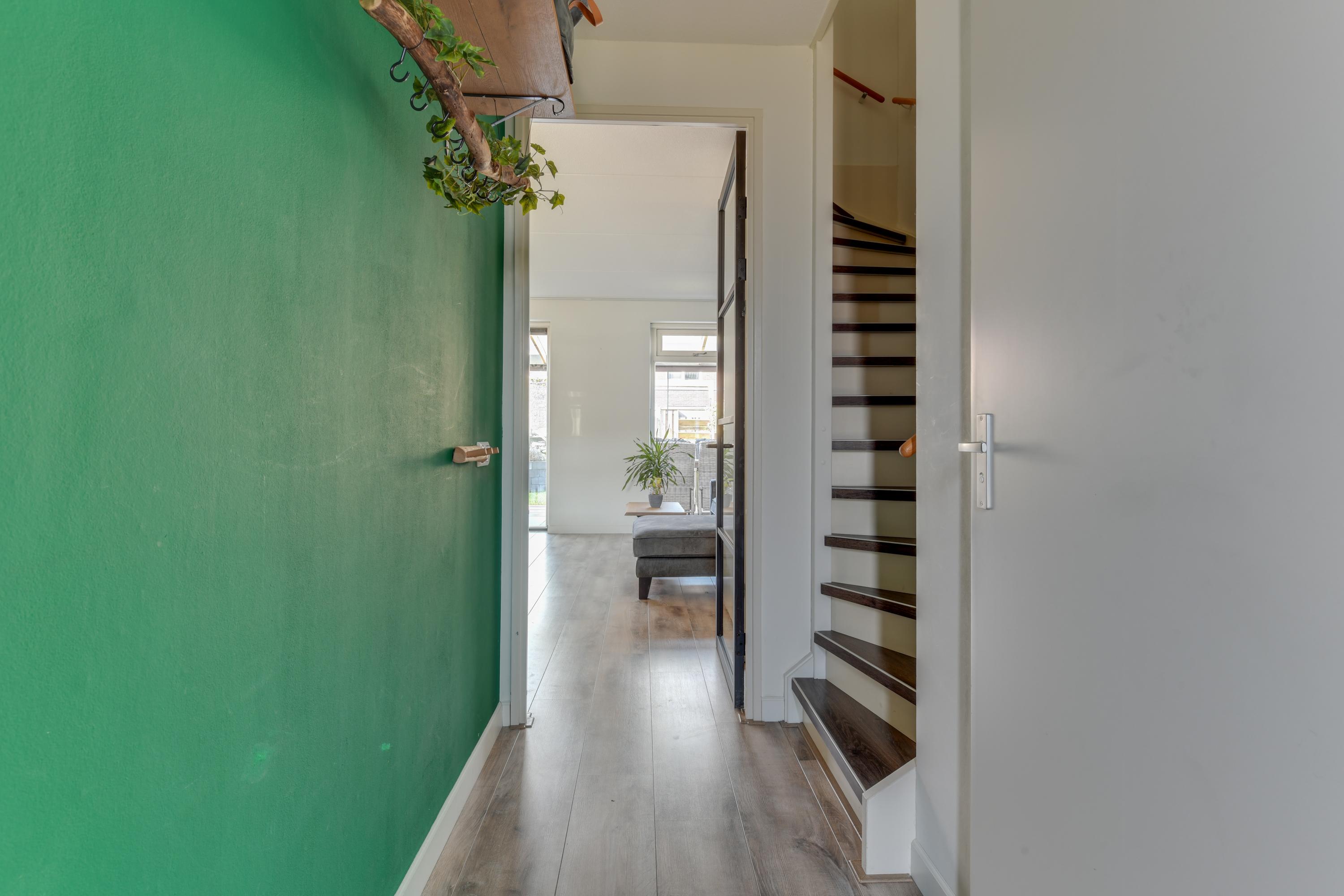 Begane grond: Ruime entree, hal, toiletruimte, meterkast. Vanuit de hal heb je toegang tot de lichte woonkamer met in het verlengde een veranda aan de achtergevel. De keuken is voorzien van onder andere een combi-oven, koel- en vrieskast, gaskookplaat en een vaatwasser.