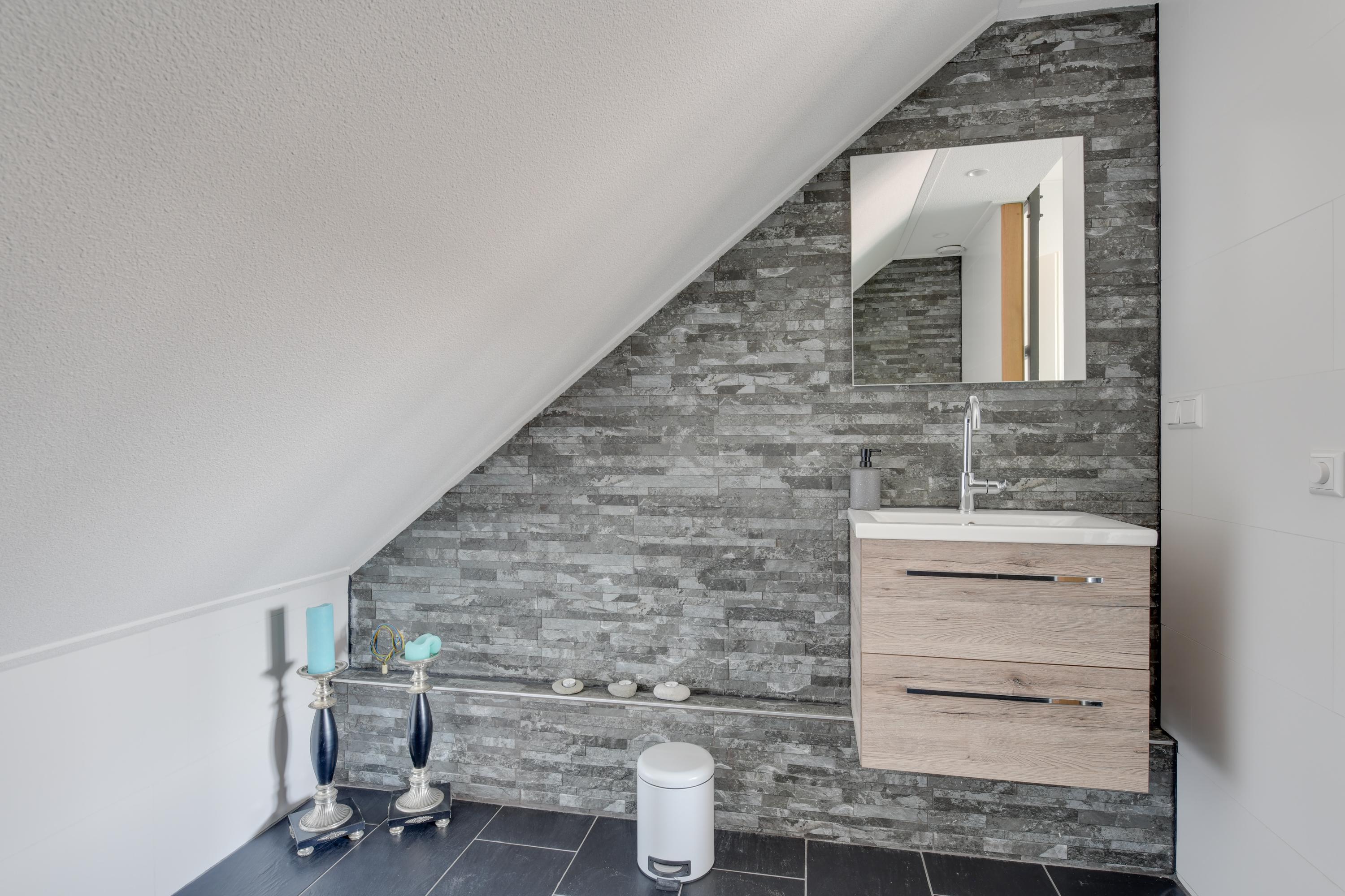 Eerste verdieping: Via een vaste trap bereik je de eerste verdieping. Hier bevinden zich de overloop, drie ruime slaapkamers en een luxe badkamer met een inloopdouche, dubbele wastafel en een tweede toilet.