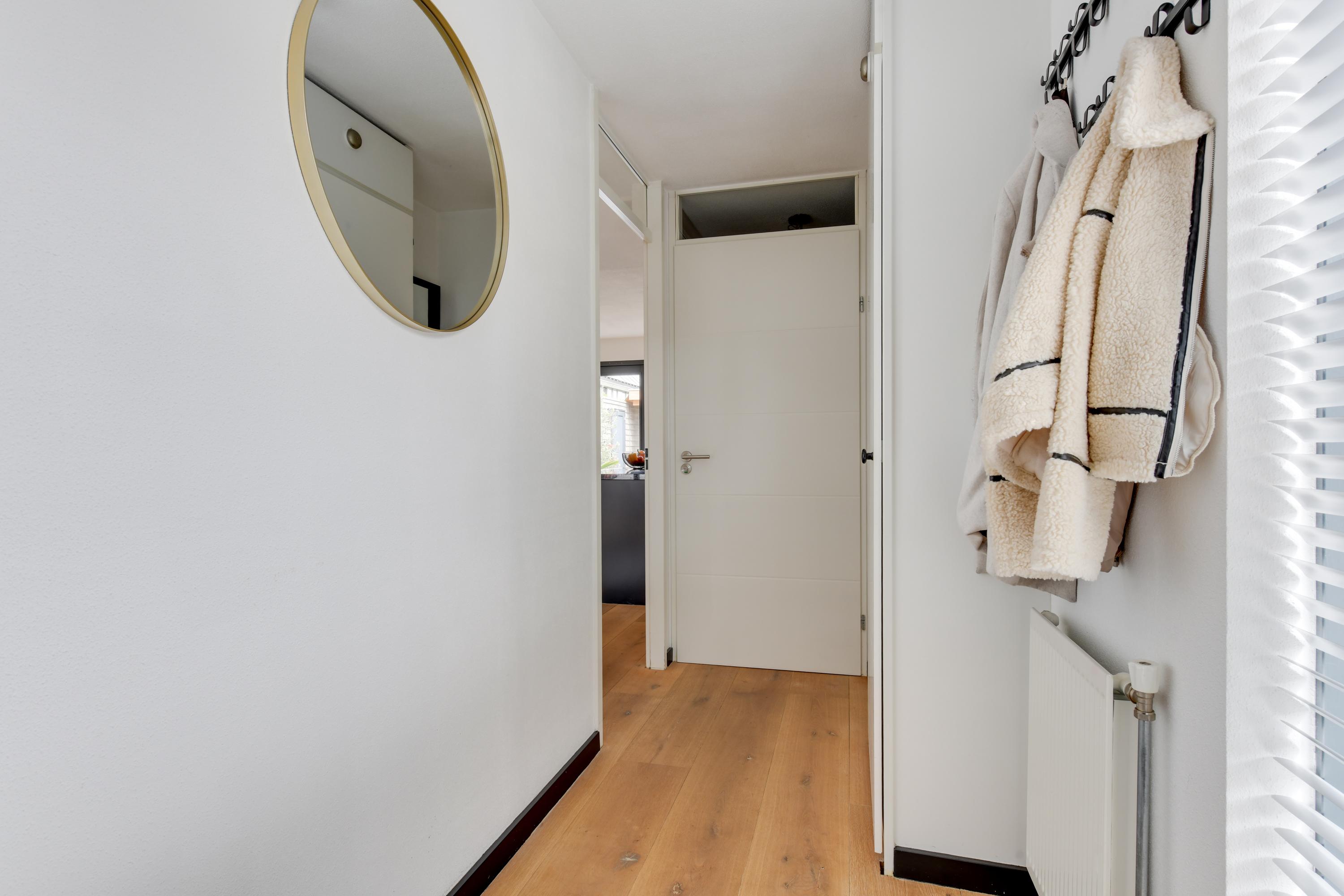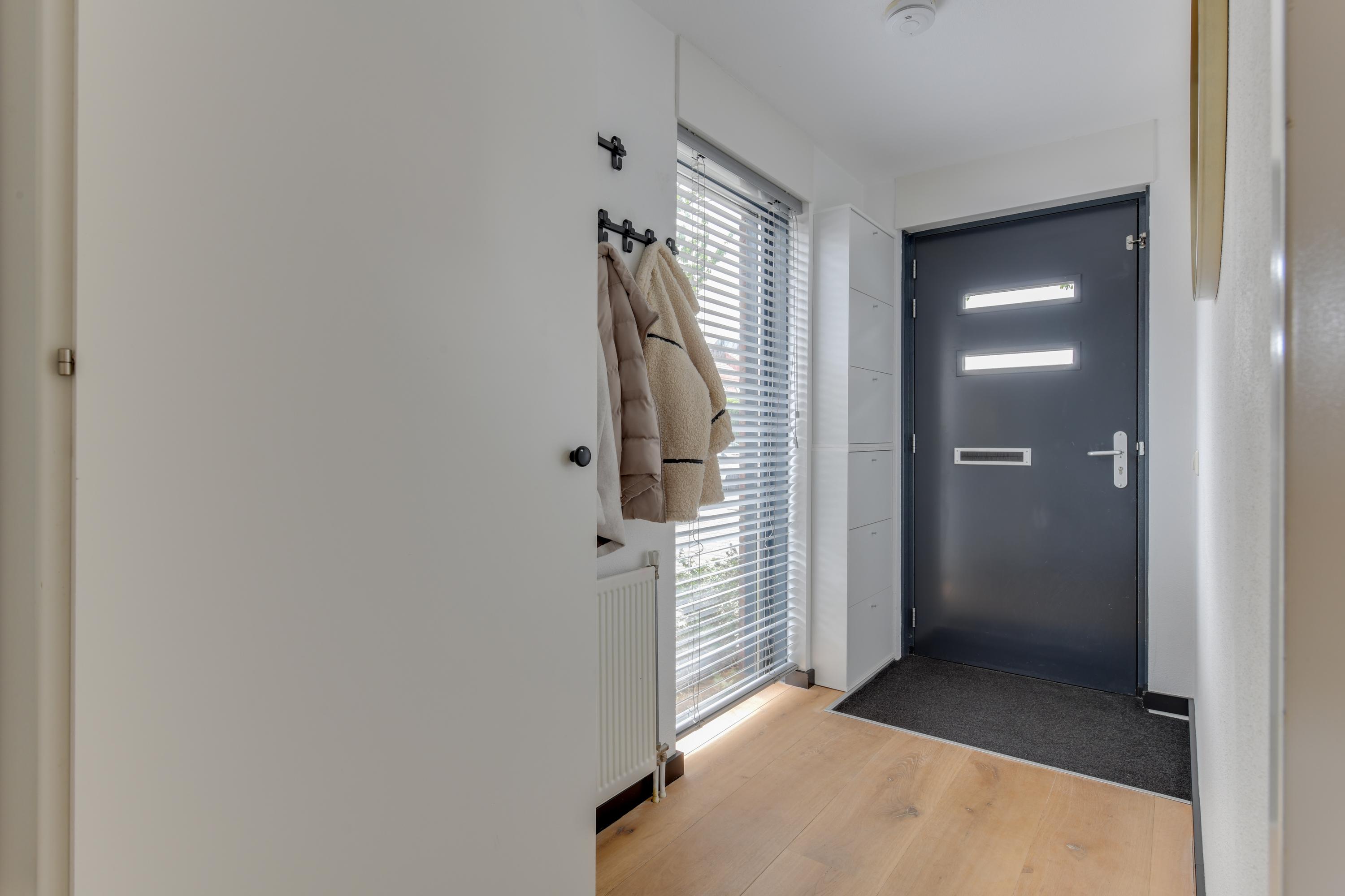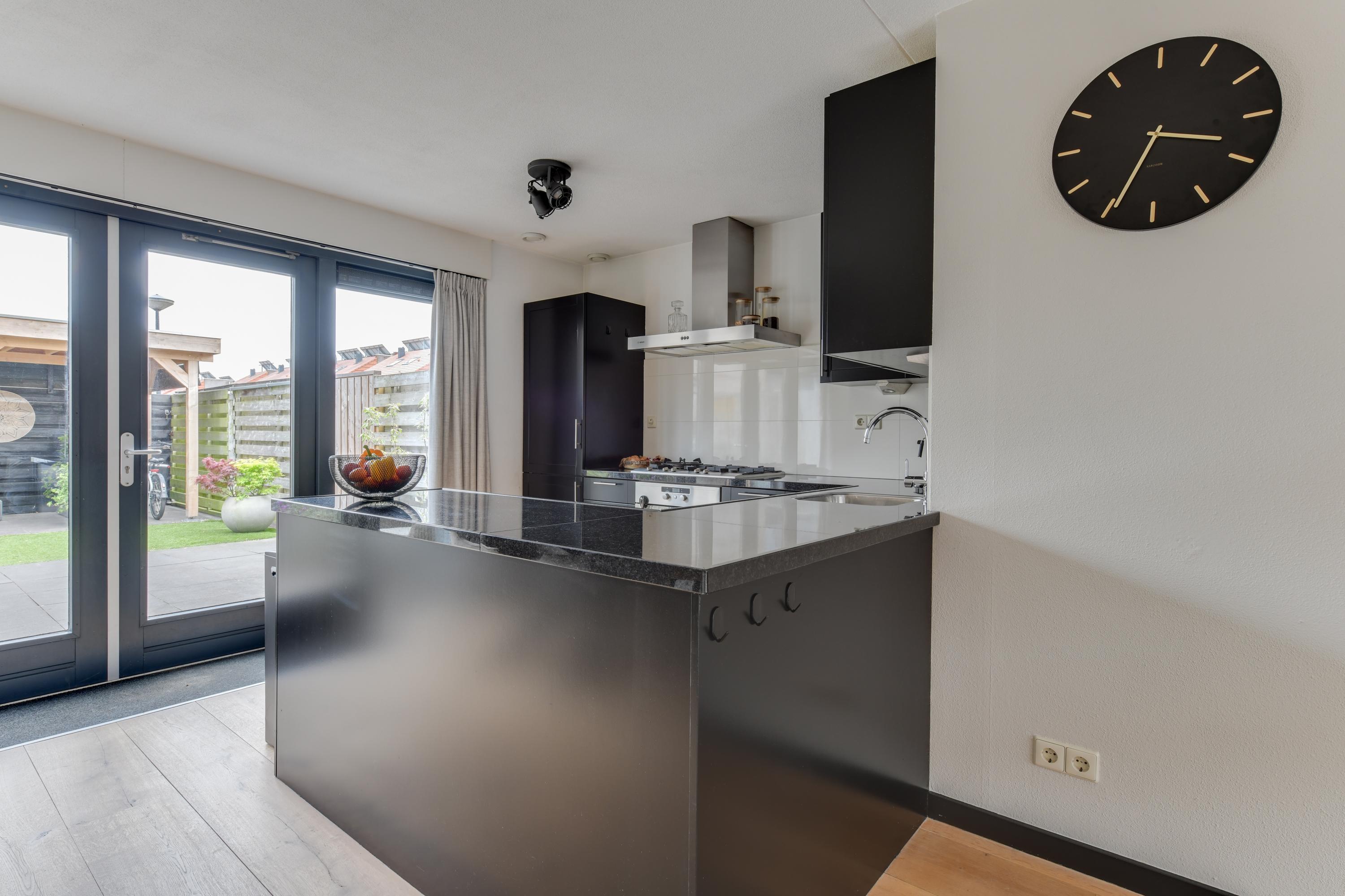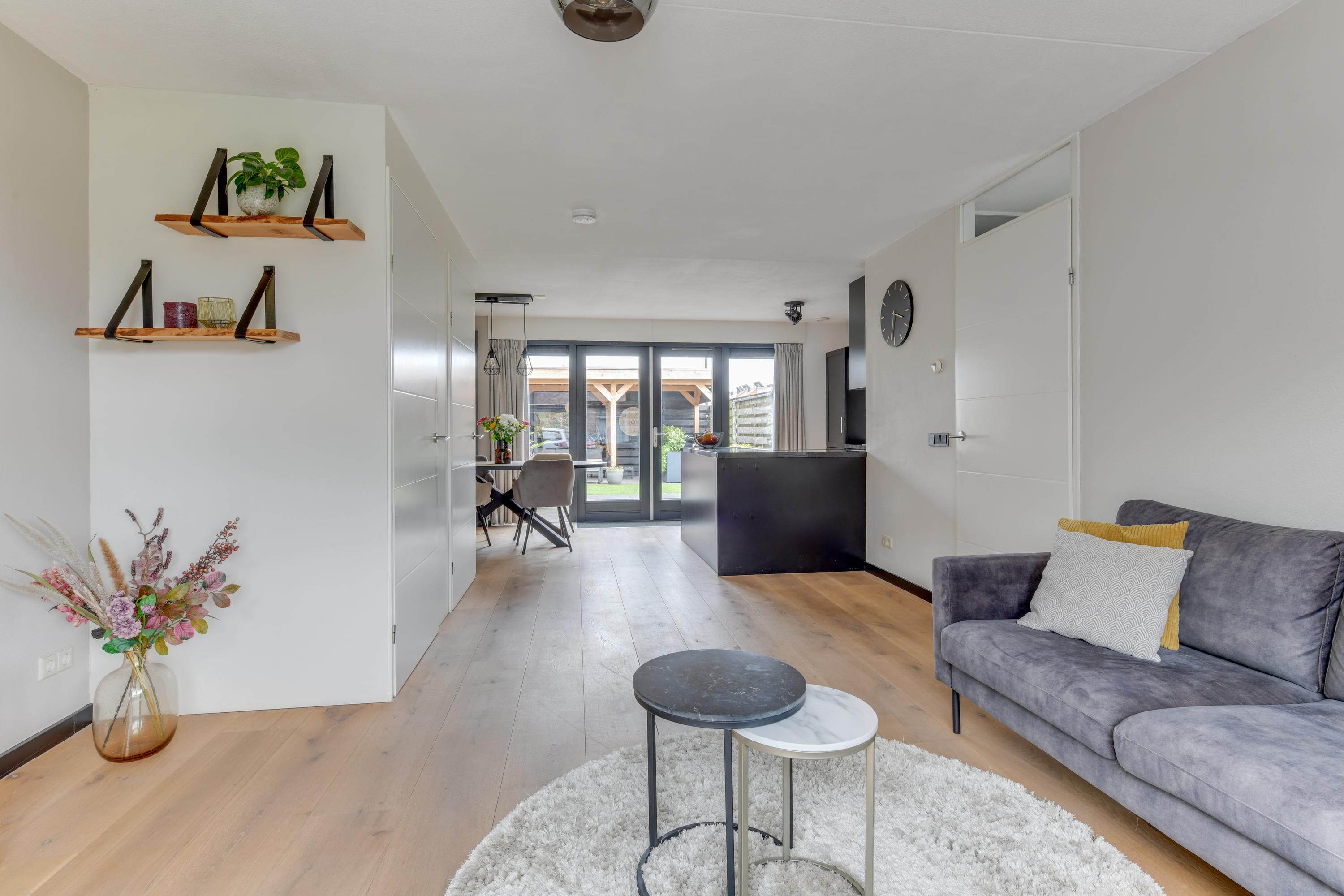 Je betreedt de woning via de ruime entree met hal, meterkast en een moderne toiletruimte. Vanuit de hal kom je in de lichte woonkamer aan de voorzijde, met een aangrenzende eetkamer en een open keuken in U-opstelling. Deze keuken is voorzien van diverse inbouwapparatuur zoals een gaskookplaat, vaatwasser, oven en koel-/vriescombinatie. Via de openslaande deuren heb je toegang tot de fraai aangelegde achtertuin, voorzien van een veranda en een aparte berging. De tuin biedt veel privacy en is een heerlijke plek om te ontspannen.