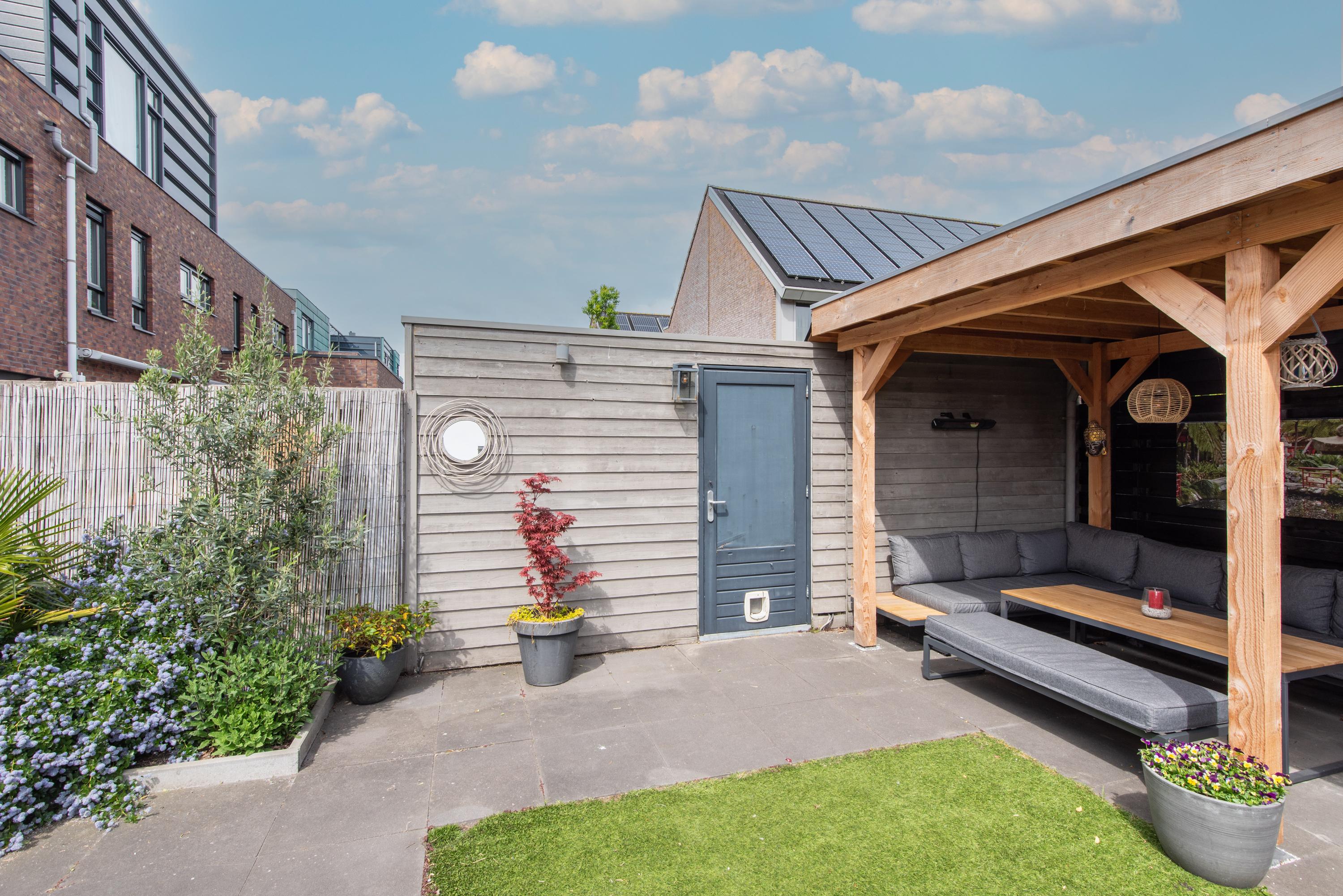 De diepe achtertuin is keurig aangelegd, beschikt over een achterom, een aparte berging en een ruime veranda aan de achterzijde. Perfect om het hele jaar door van buiten te genieten.