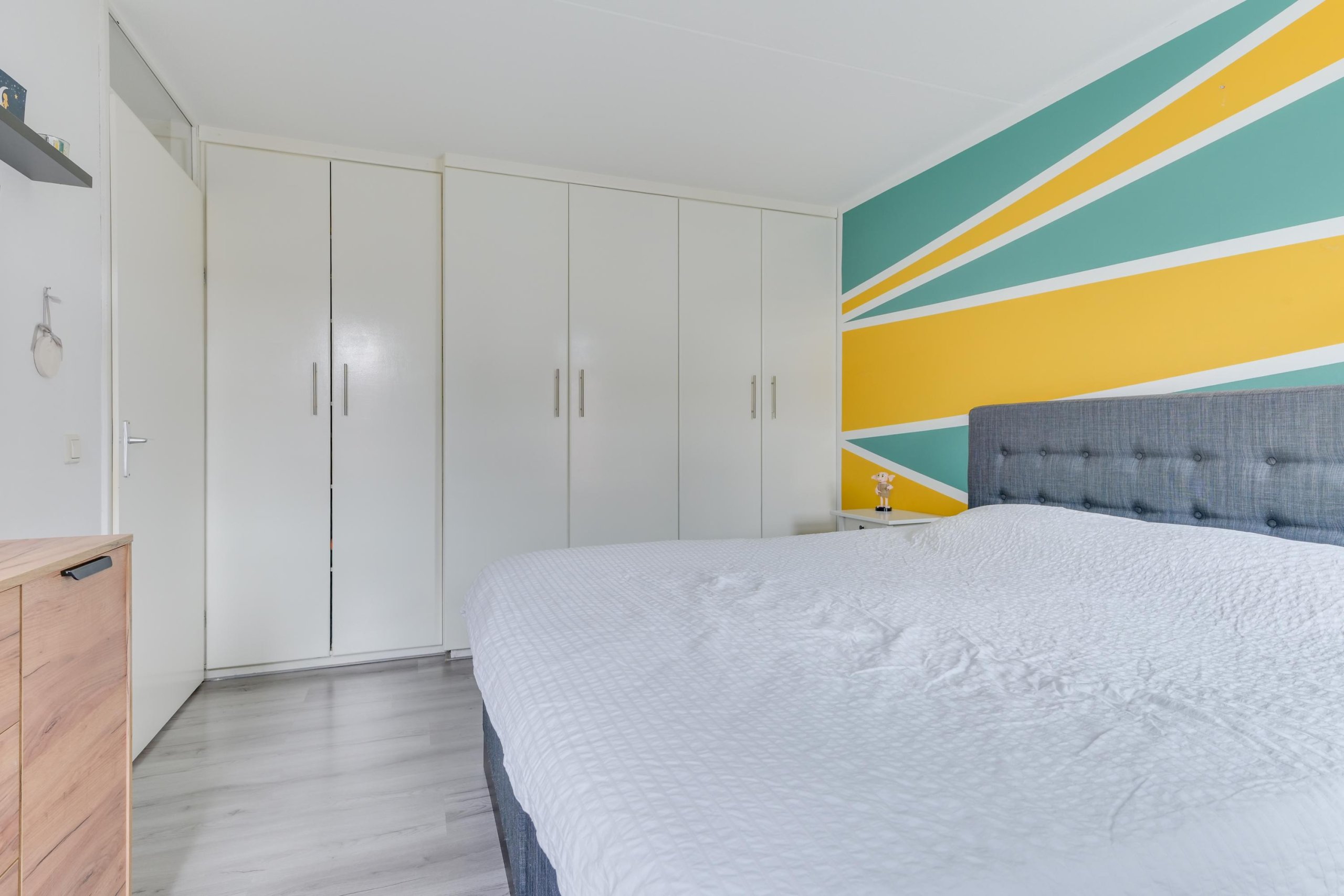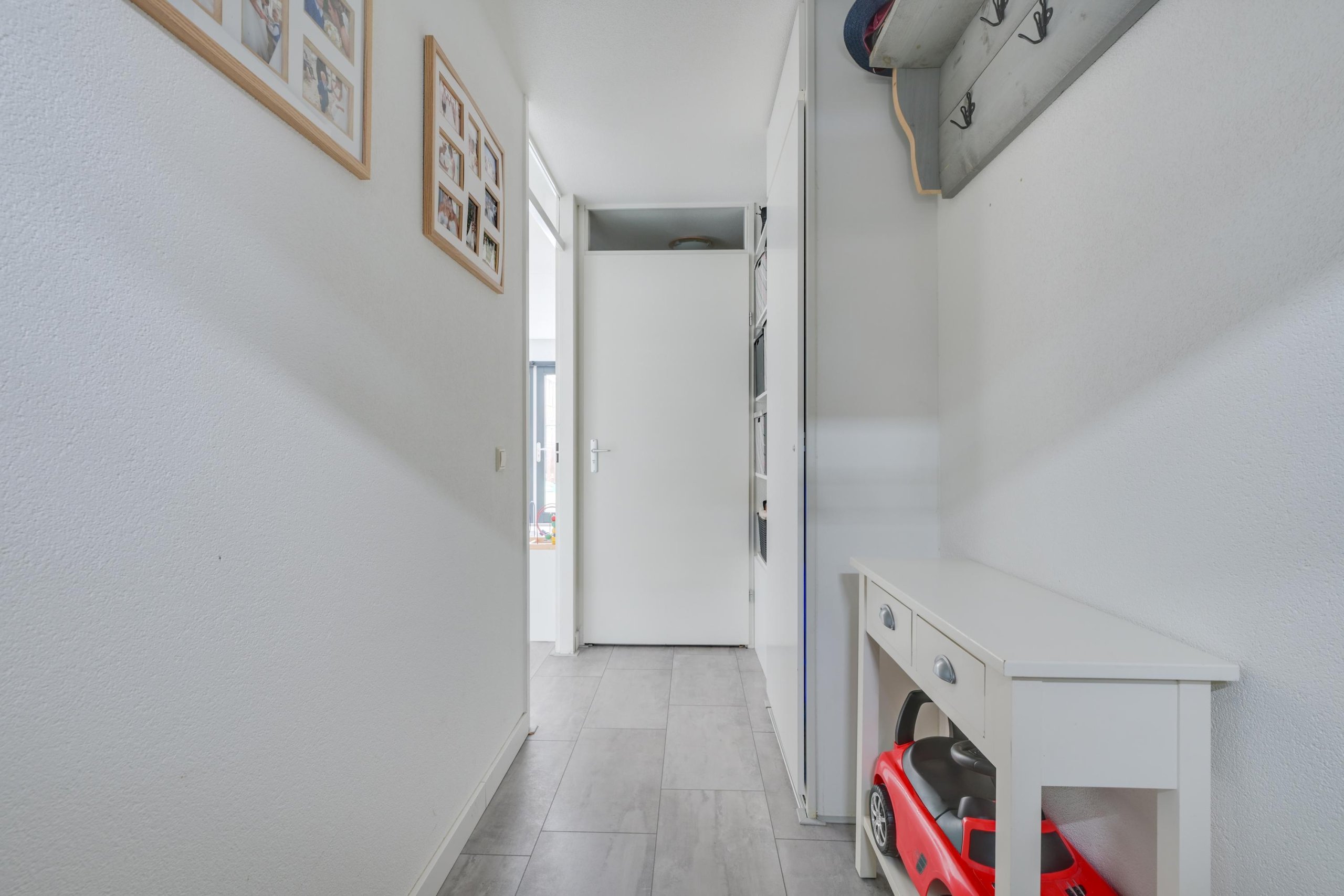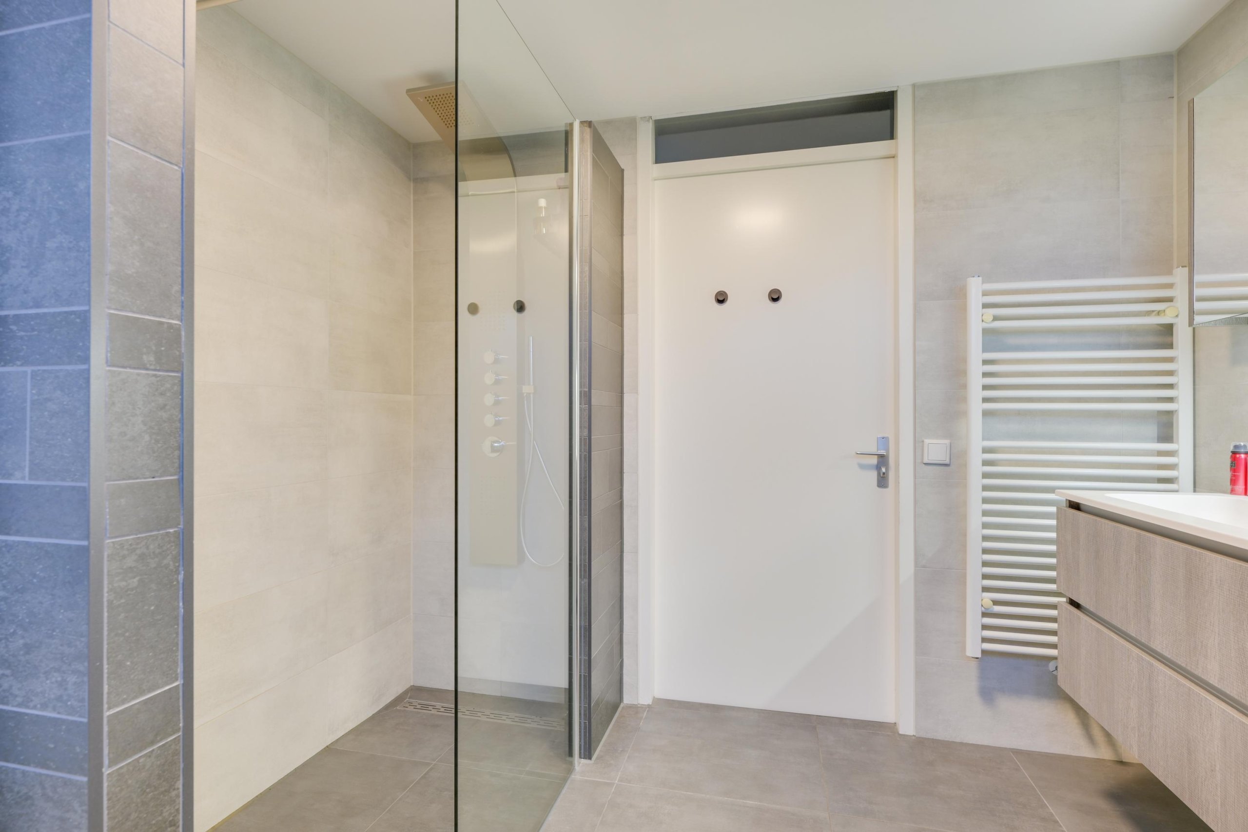 Overloop met toegang tot 3 slaapkamers, allen netjes afgewerkt en voorzien van een moderne vloerafwerking. De badkamer is vernieuwd in 2021 en uitgevoerd met een inloopdouche, wastafelmeubel, toilet en daglichttoetreding. Een comfortabele en eigentijdse ruimte.