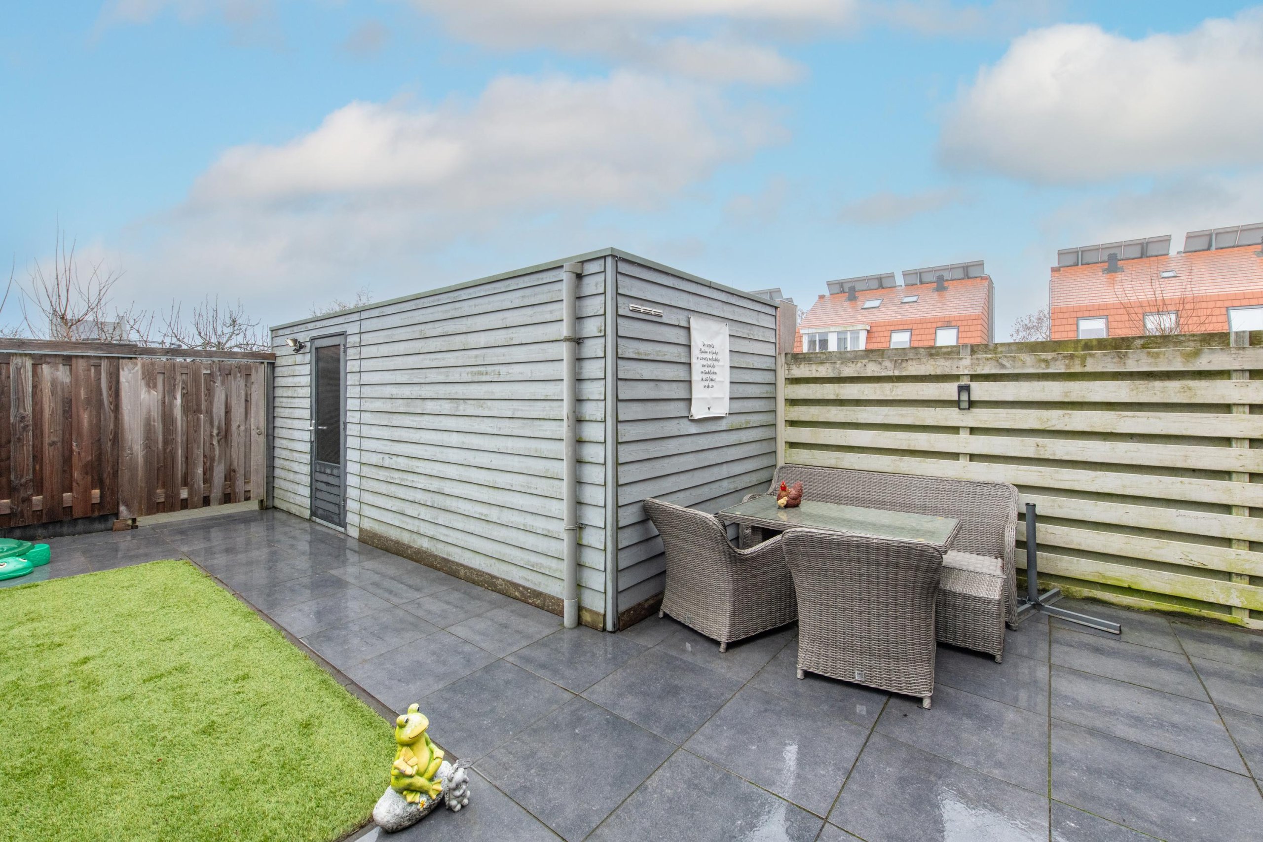 De achtertuin is in 2020 opnieuw aangelegd en verzorgd ingericht. Een fijne buitenruimte met meerdere zitplekken, berging en een achterom. Hier kun je optimaal genieten van het buitenleven.