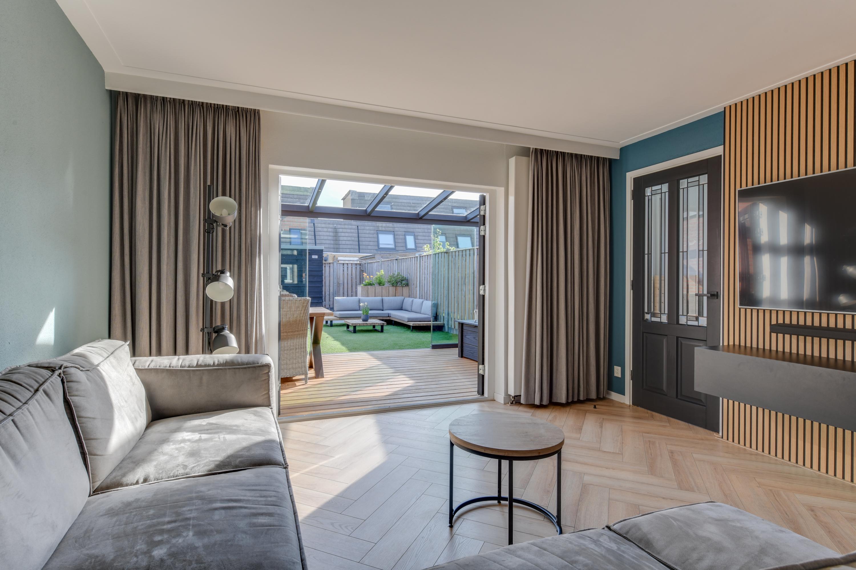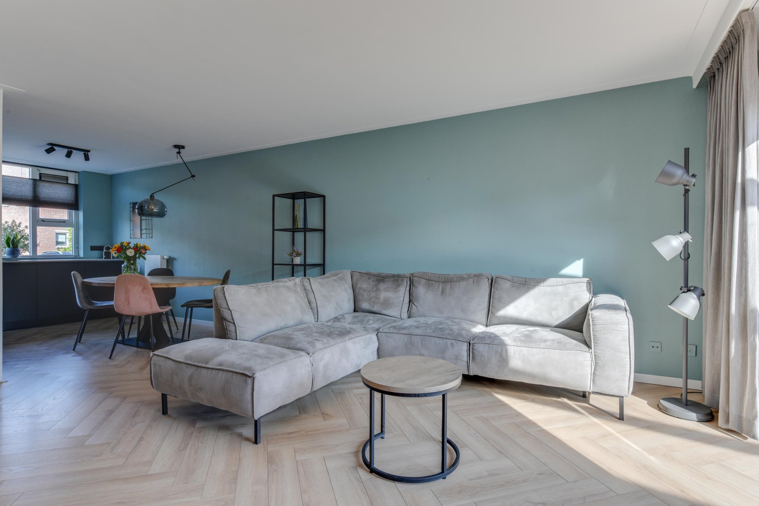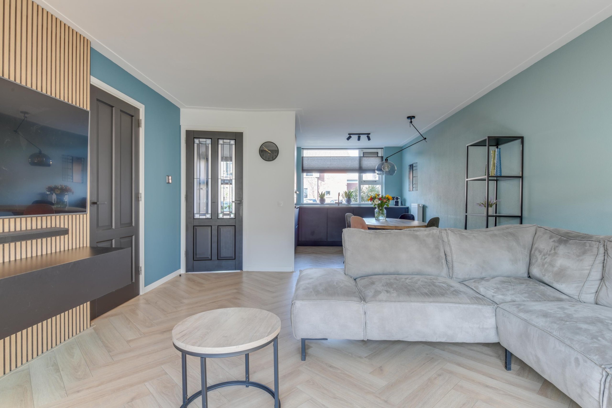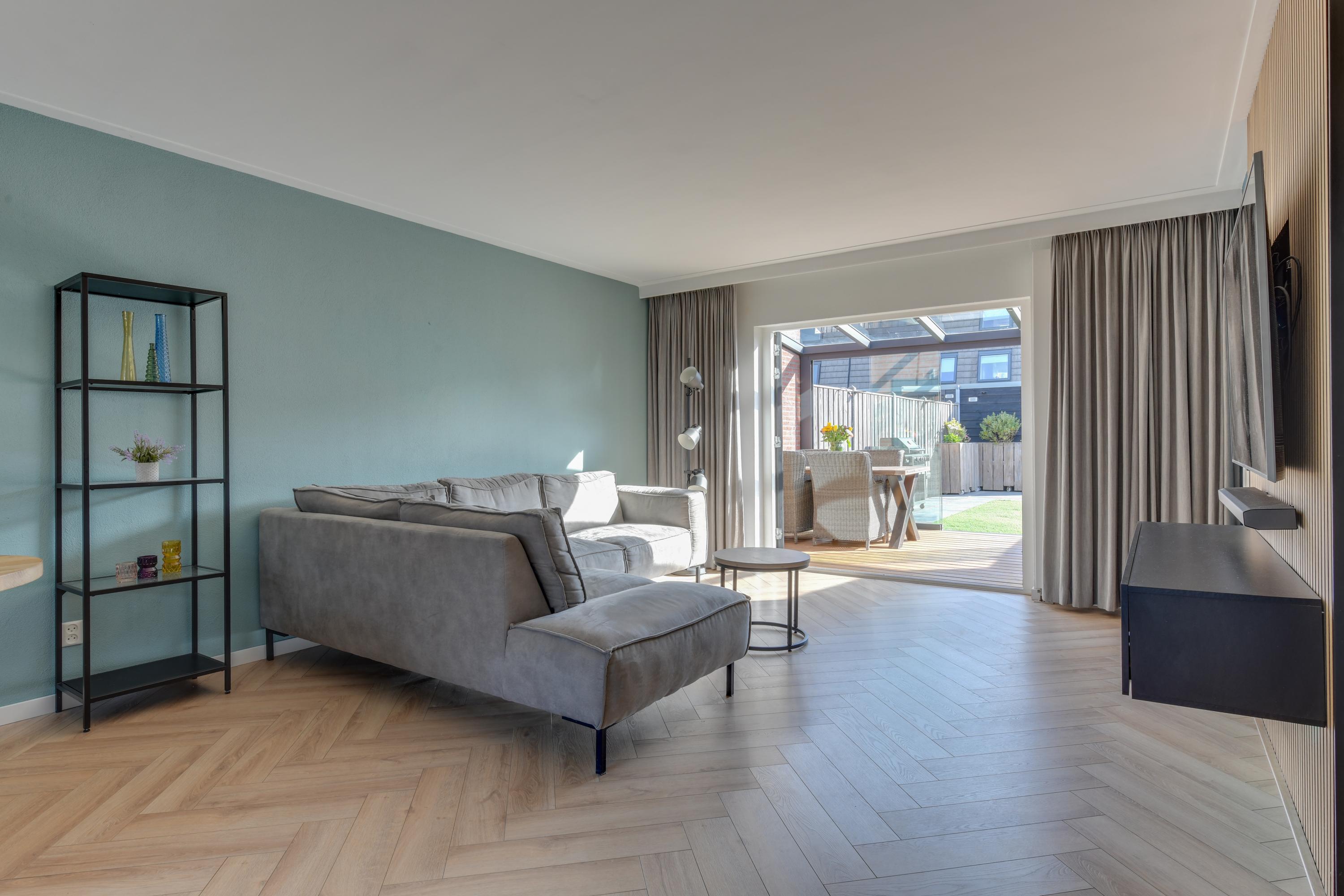 - Woonkamer met visgraatvloer;